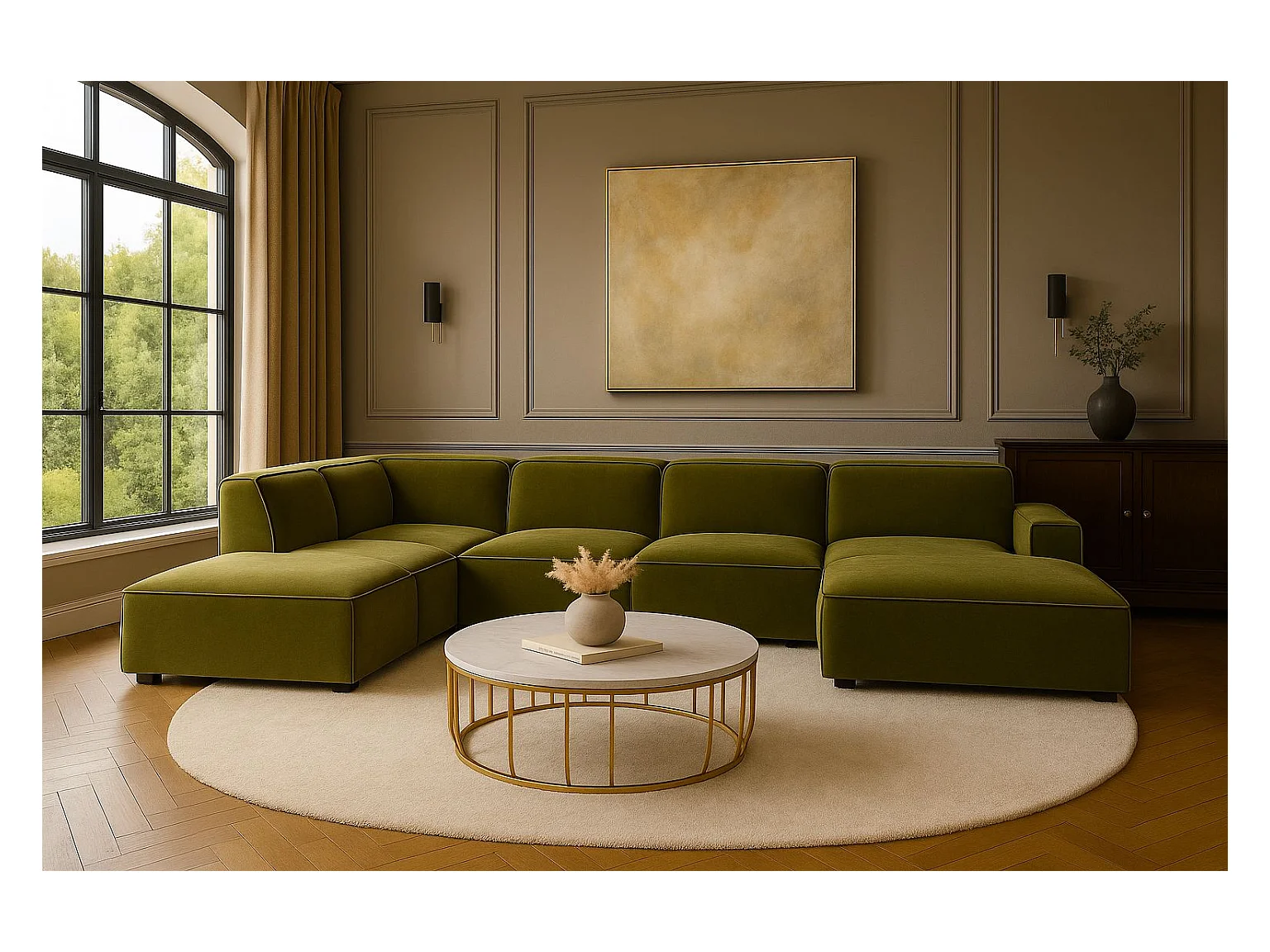 Canapé d'angle U-de Sofa Grand U XL modulable en tissu Salvador Olive