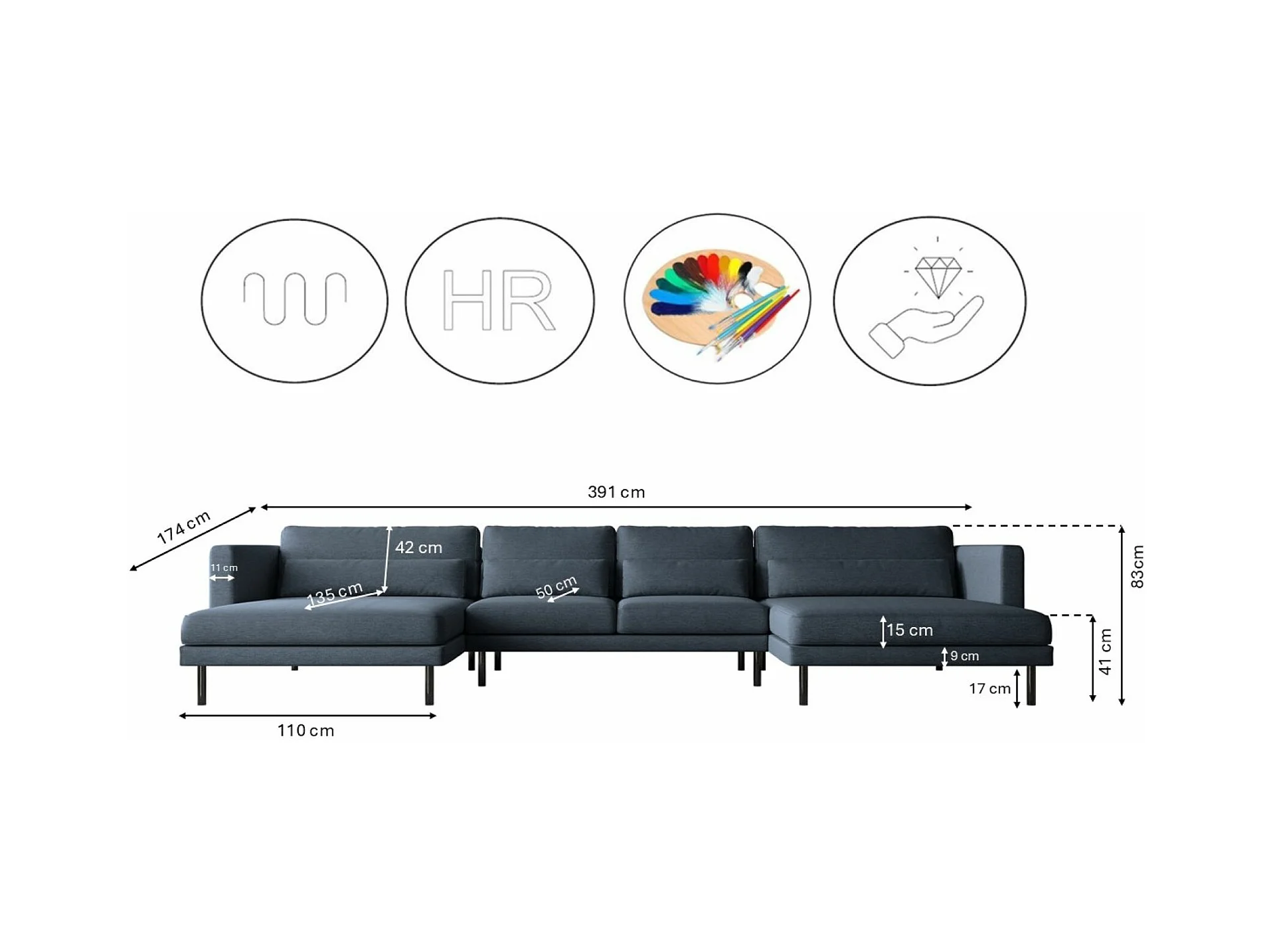 Canapé d'angle Modena en U, tissu Verita, bleu marine