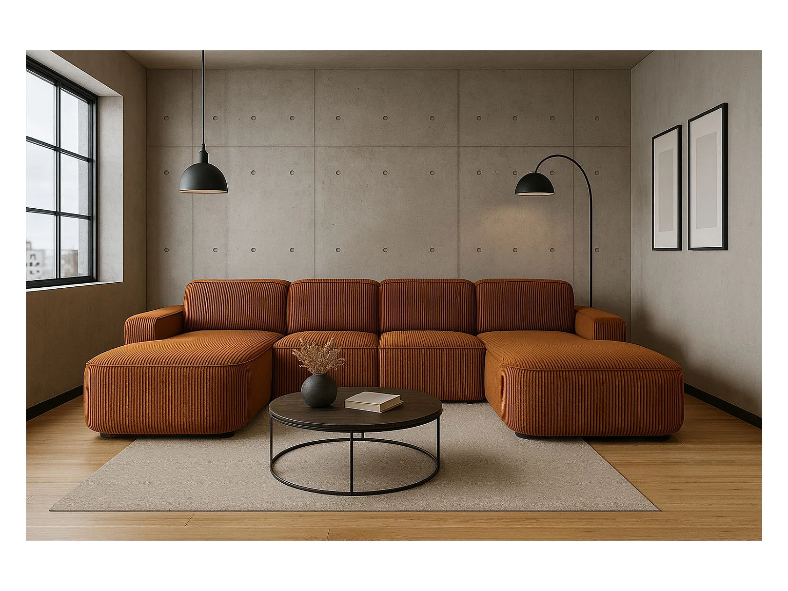Canapé d'angle en U Cursal, tissu Poso, cuivre