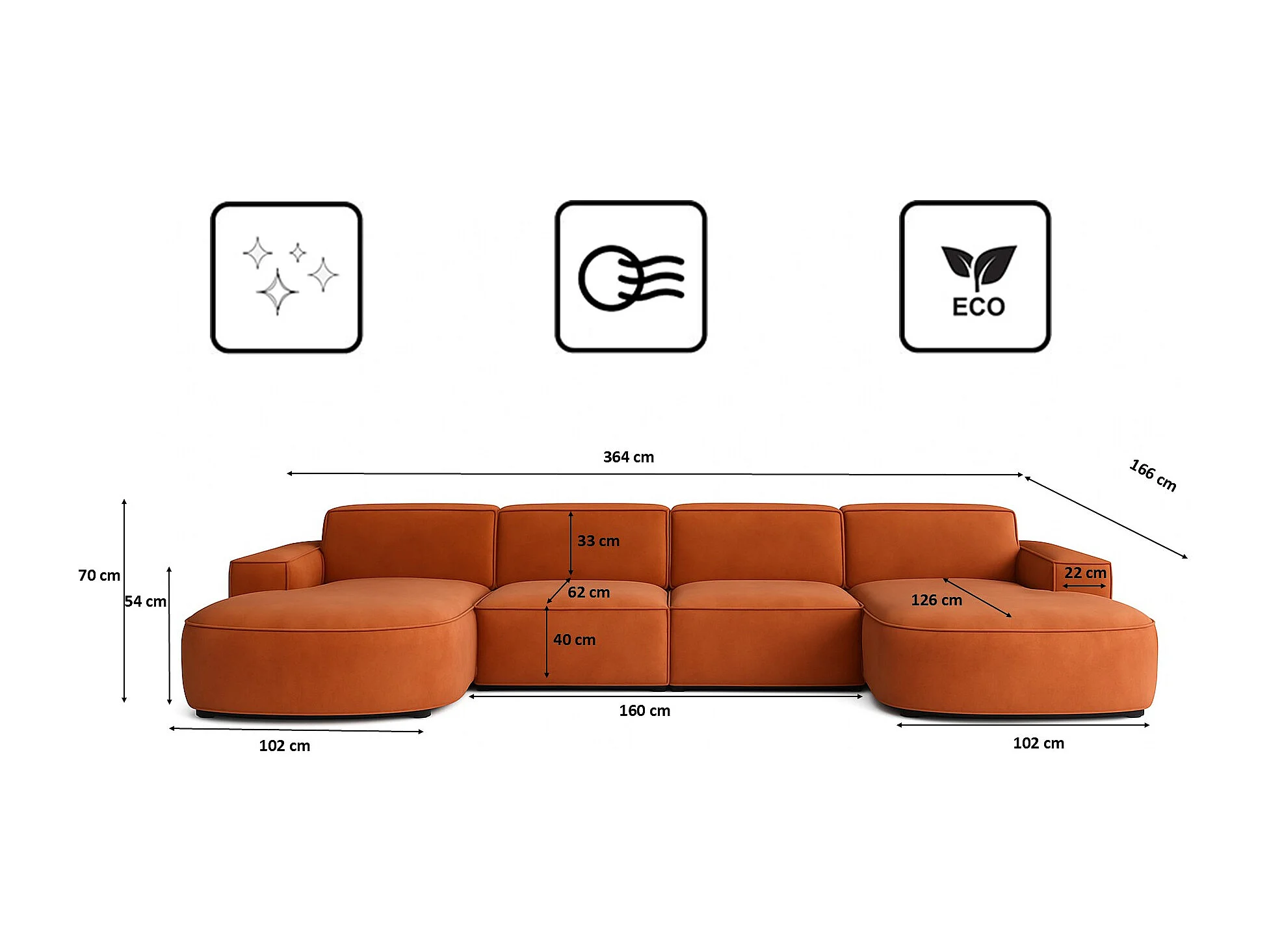 Canapé d'angle en U Round Cursal, tissu Salvador, marron