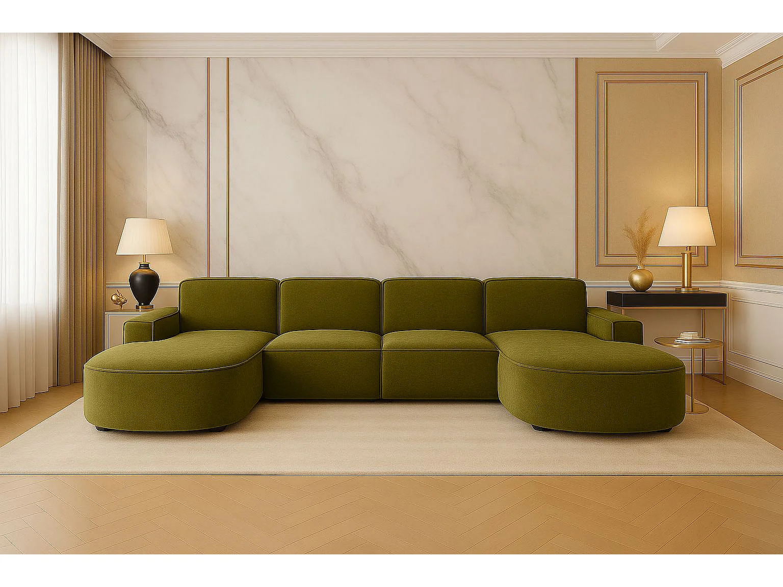 Canapé d'angle en U Round Cursal, tissu Salvador, olive