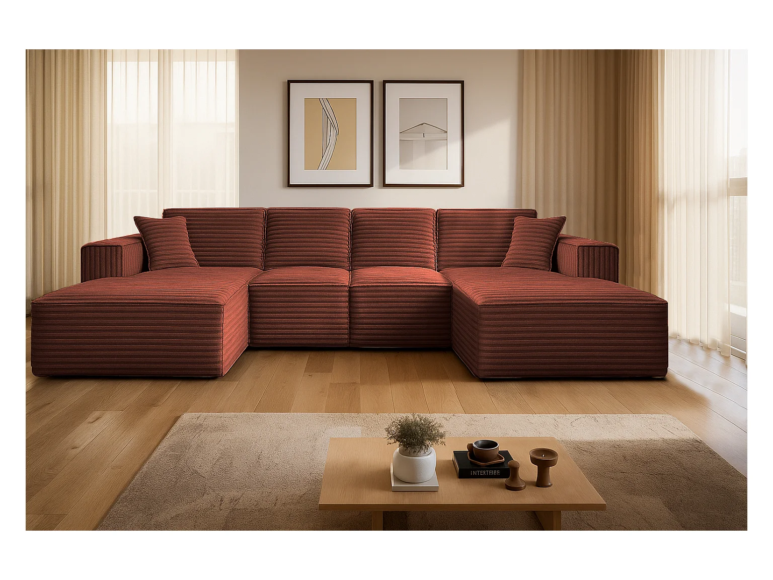 Canapé d'angle en U Siena avec tissu Velo cuivre