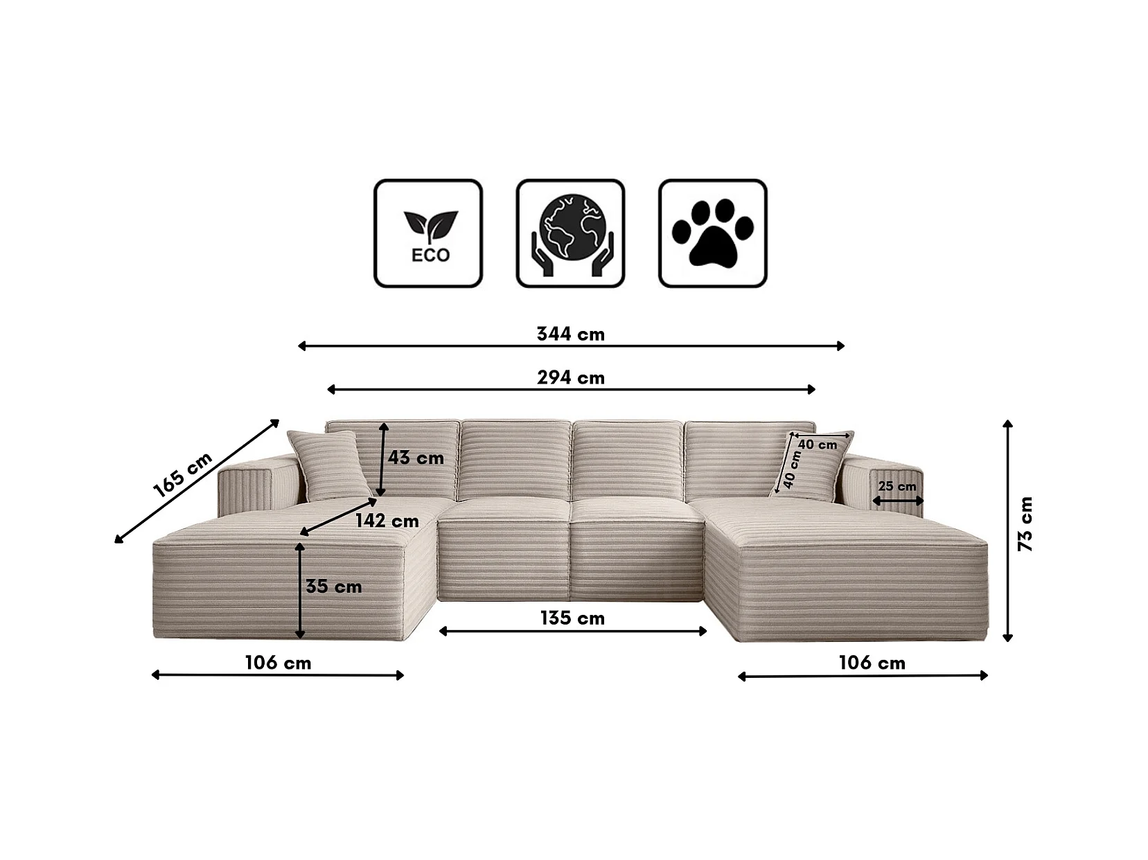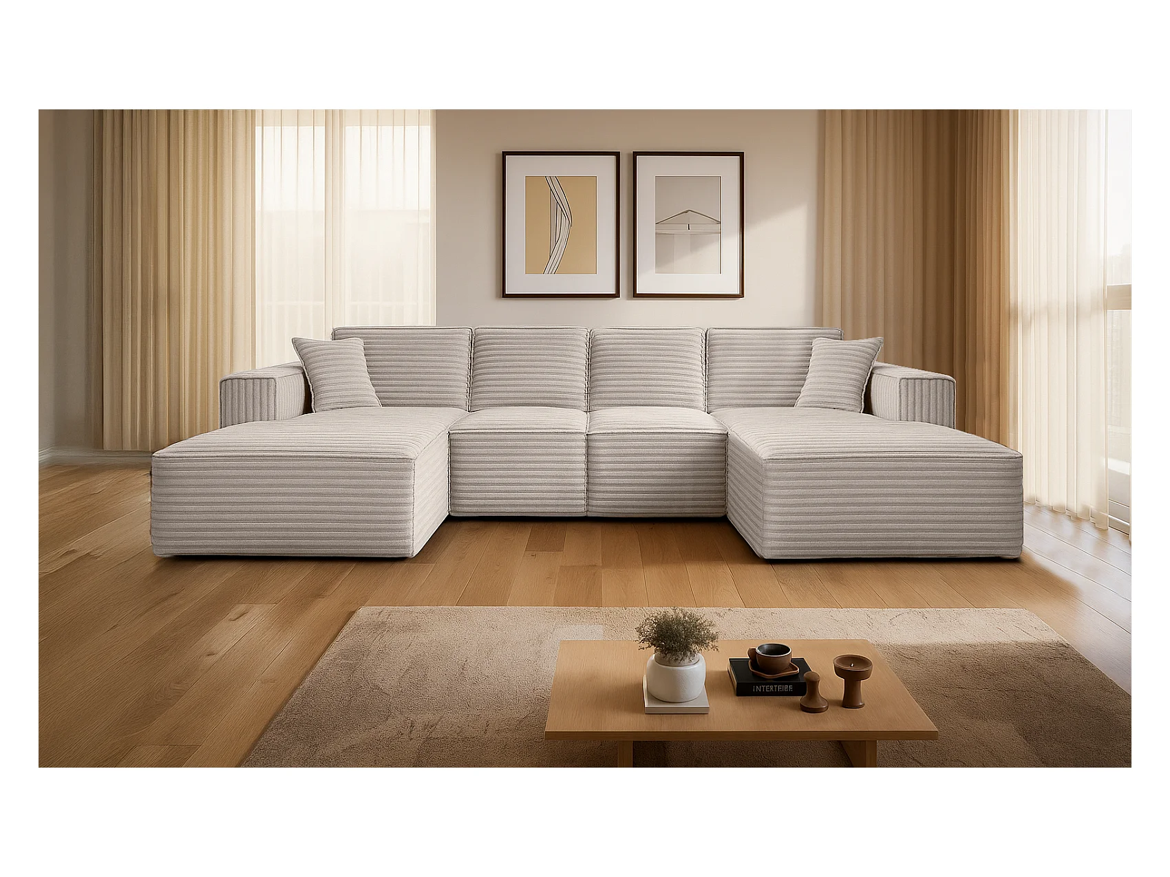 Canapé d'angle en U Siena avec tissu Velo Ecru