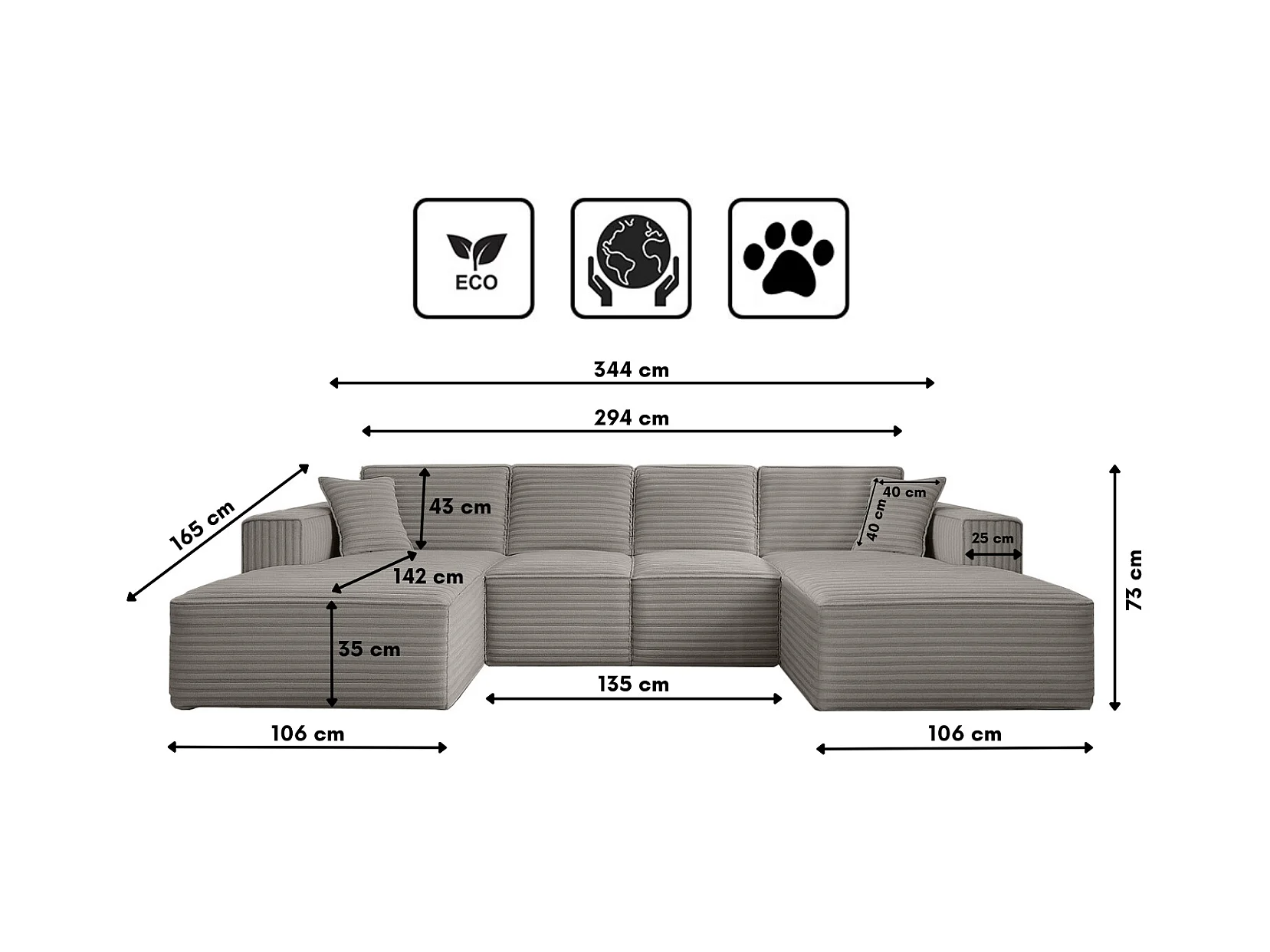 Canapé d'angle en U Siena avec tissu Velo Grey