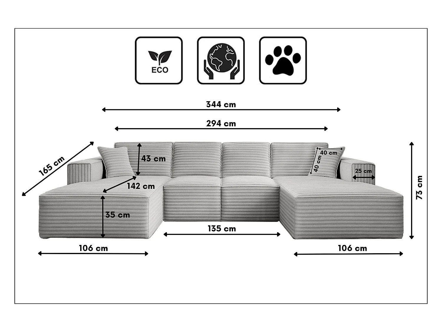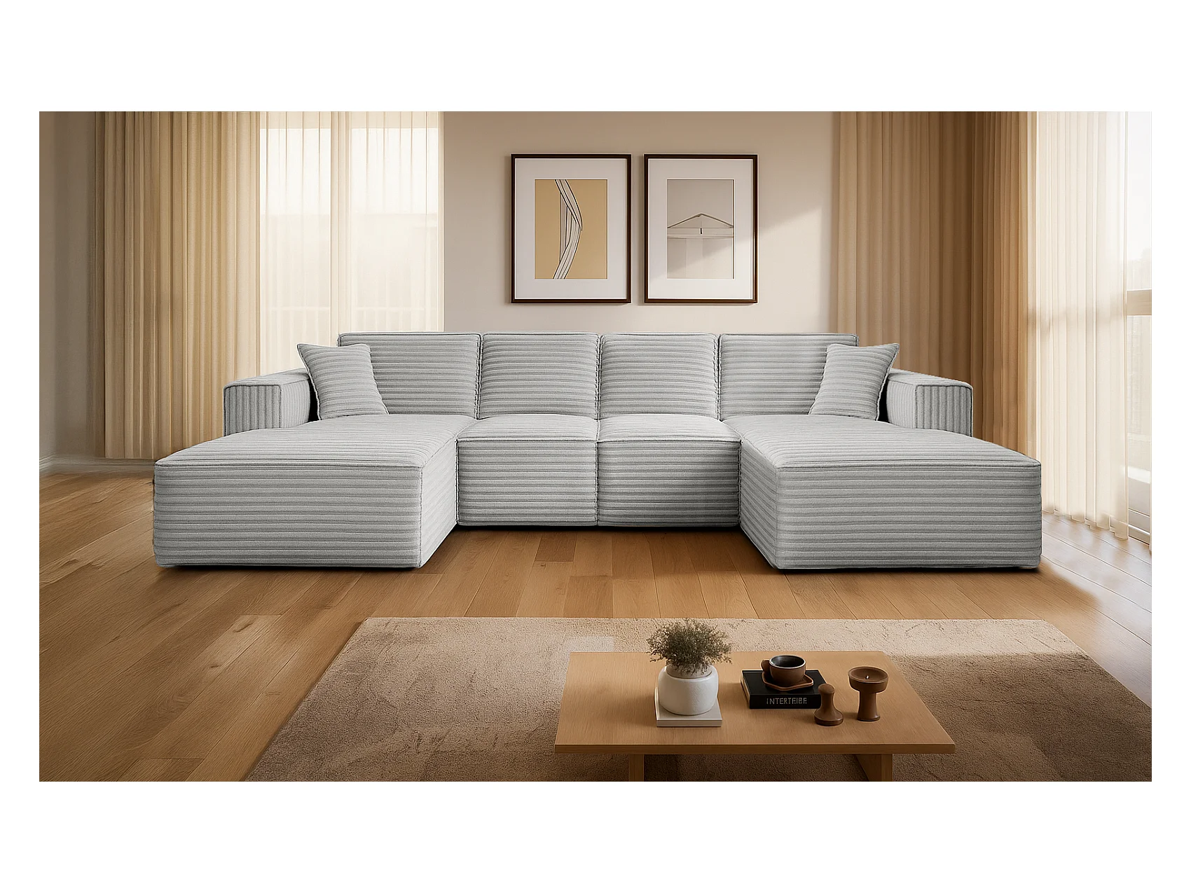 Canapé d'angle en U Siena avec tissu Velo gris clair