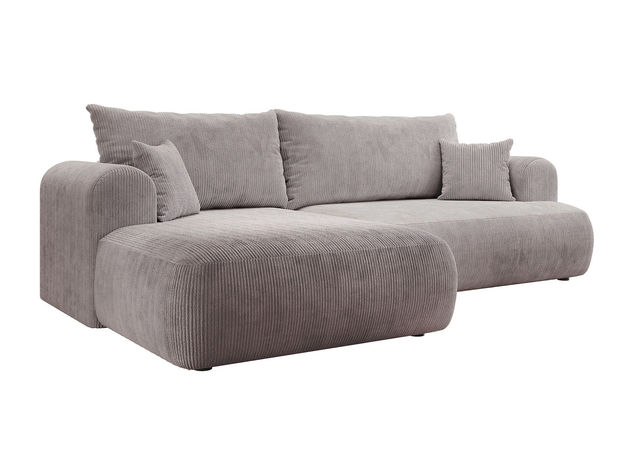 Canapé d’angle en velours côtelé – convertible avec coffre de rangement – gris clair – gauche – OVO CORD