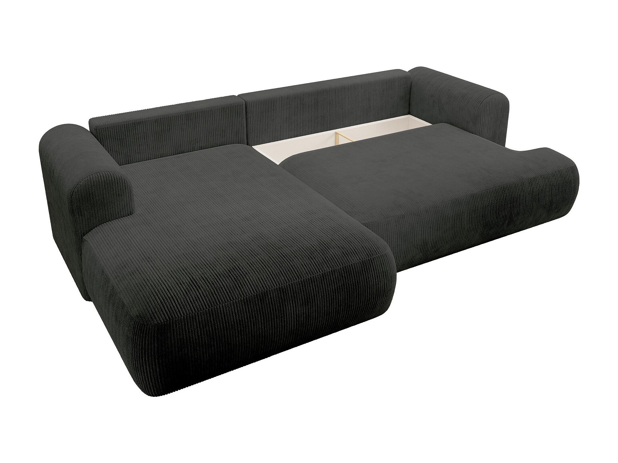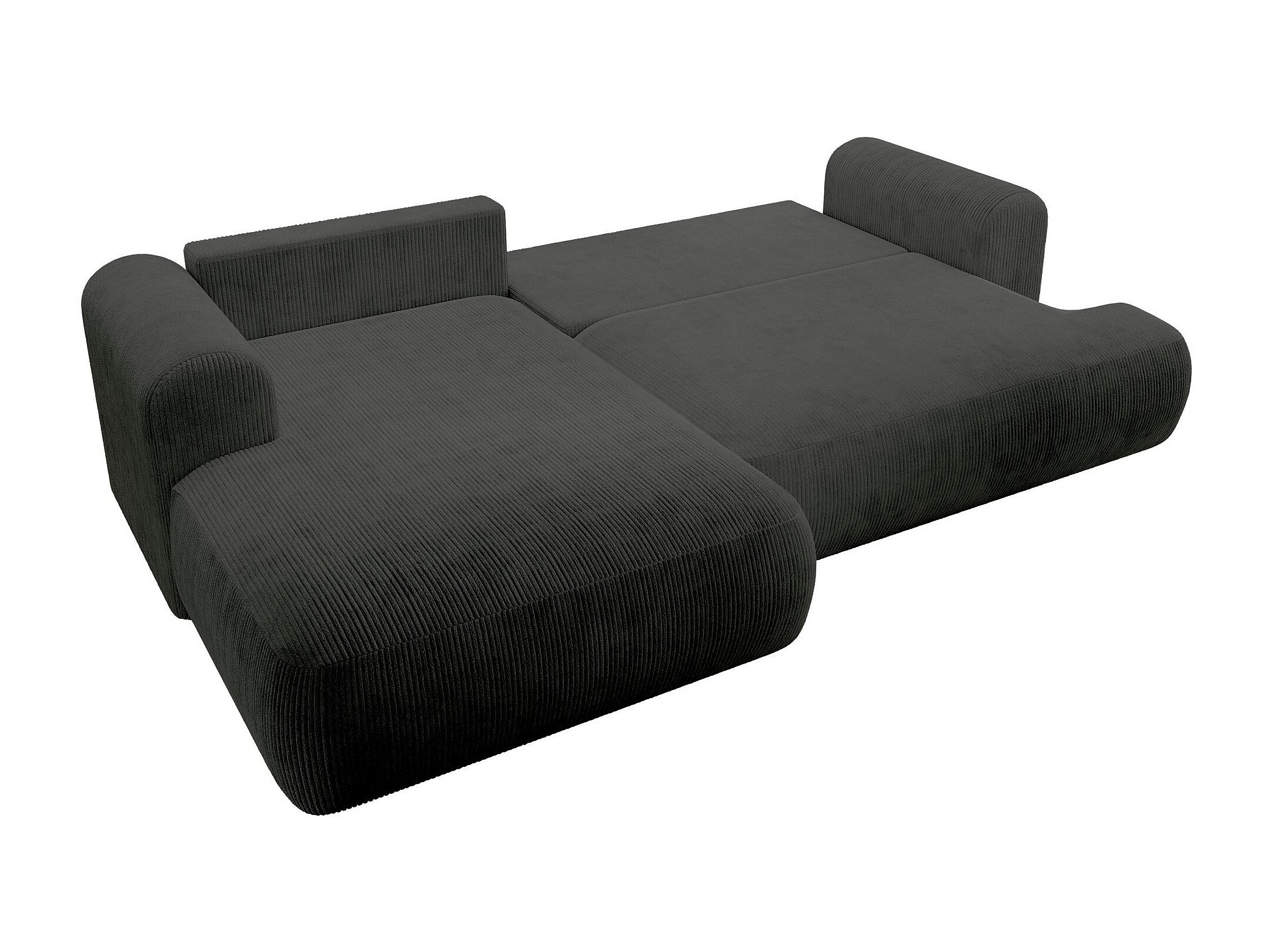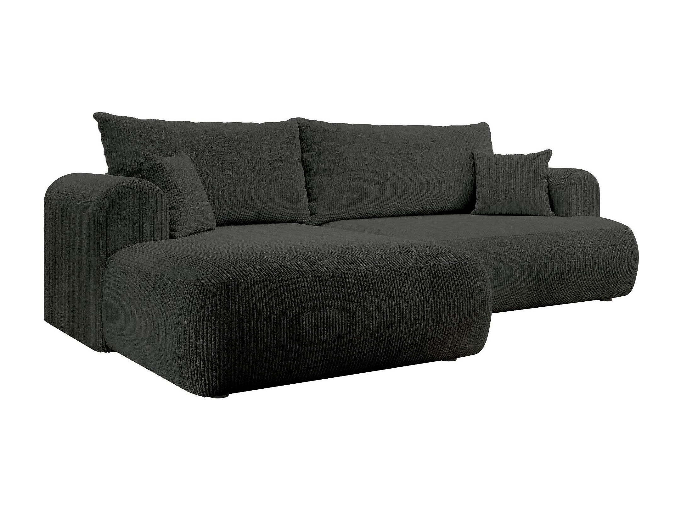Canapé d’angle en velours côtelé – convertible avec coffre de rangement – gris foncé – gauche – OVO CORD