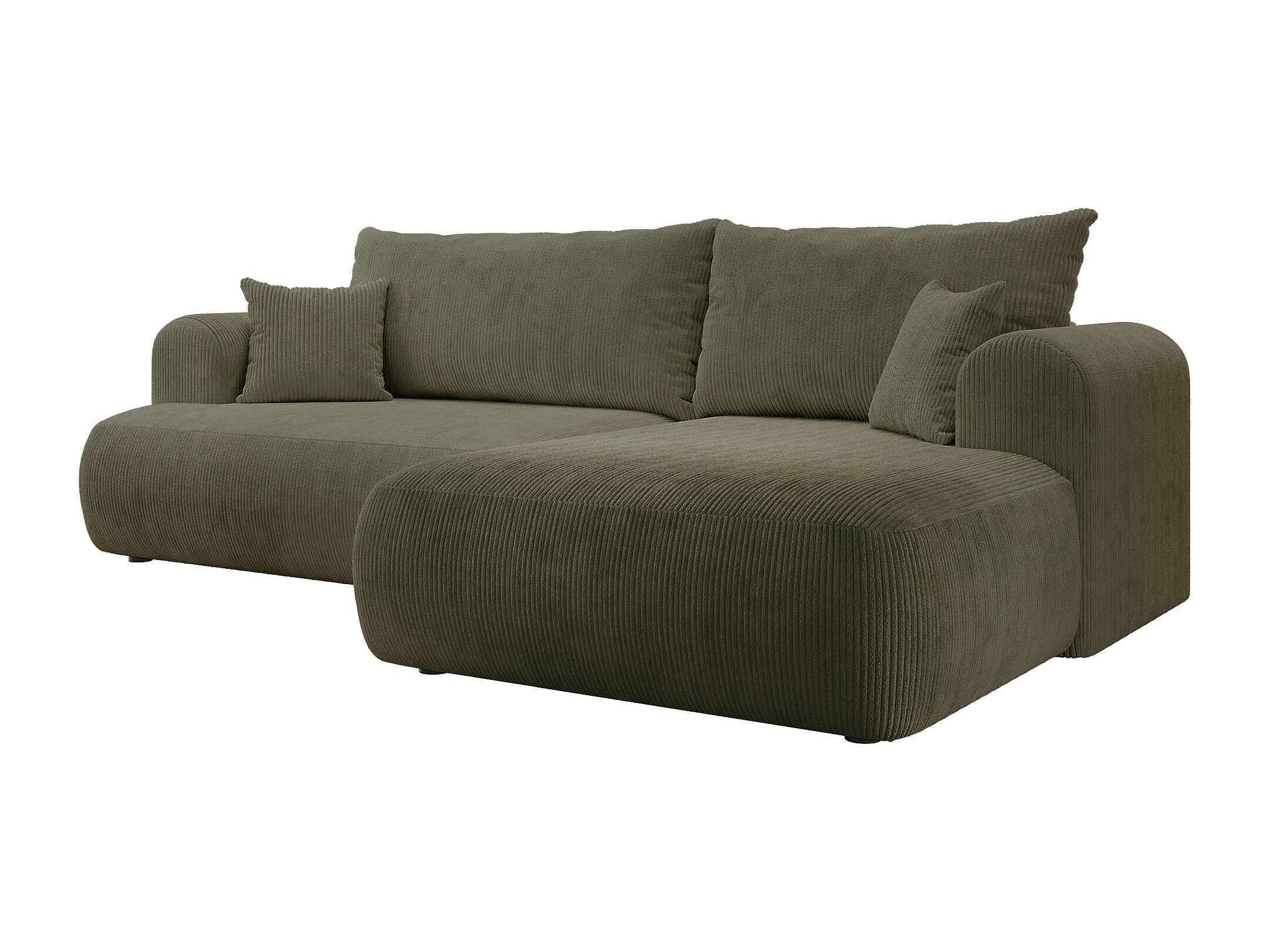 Canapé d’angle en velours côtelé – convertible avec coffre de rangement – vert olive – droit – OVO CORD