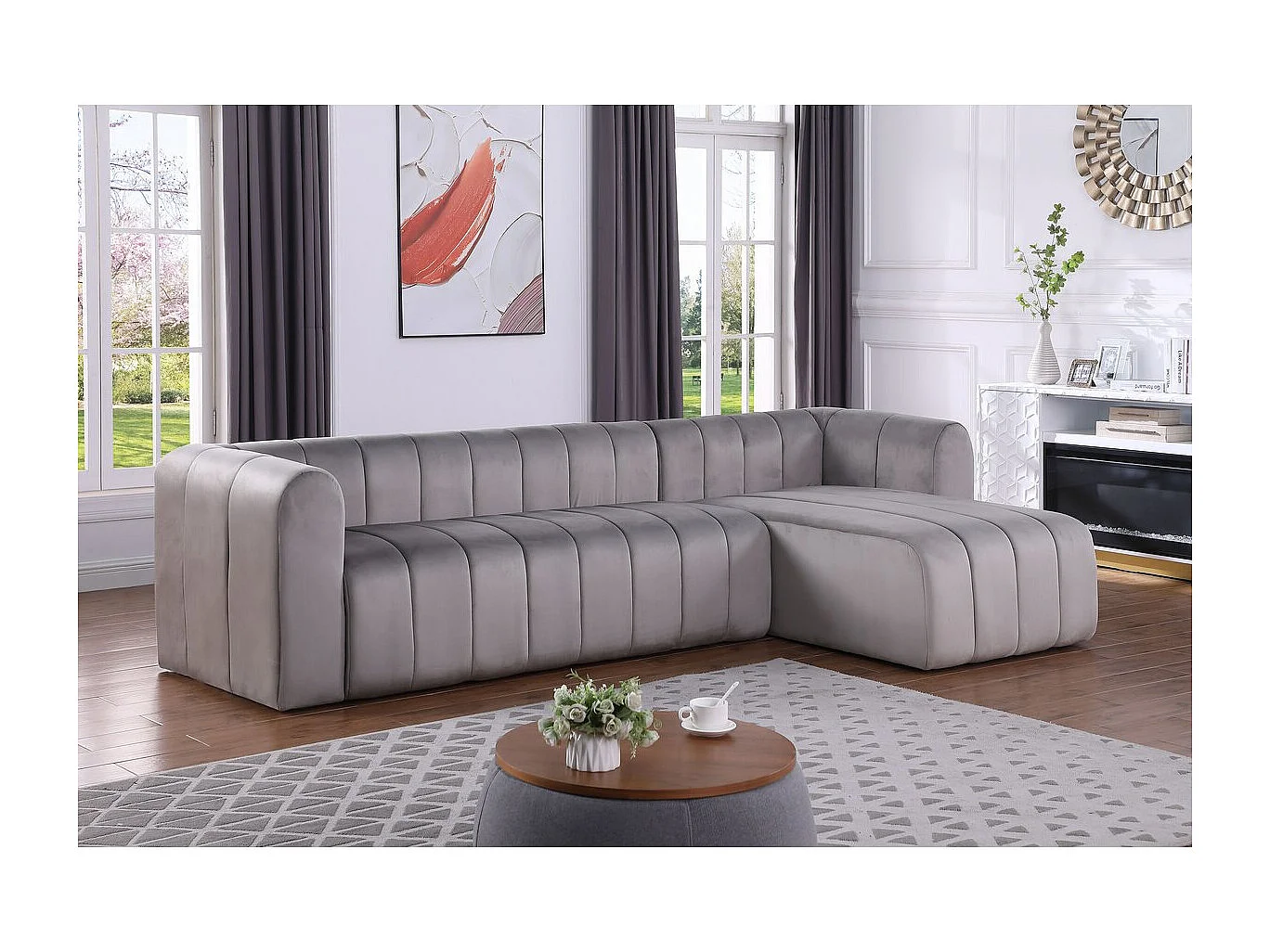 Canapé d'angle en velours "Victor Hugo" - 3 places - Gris
