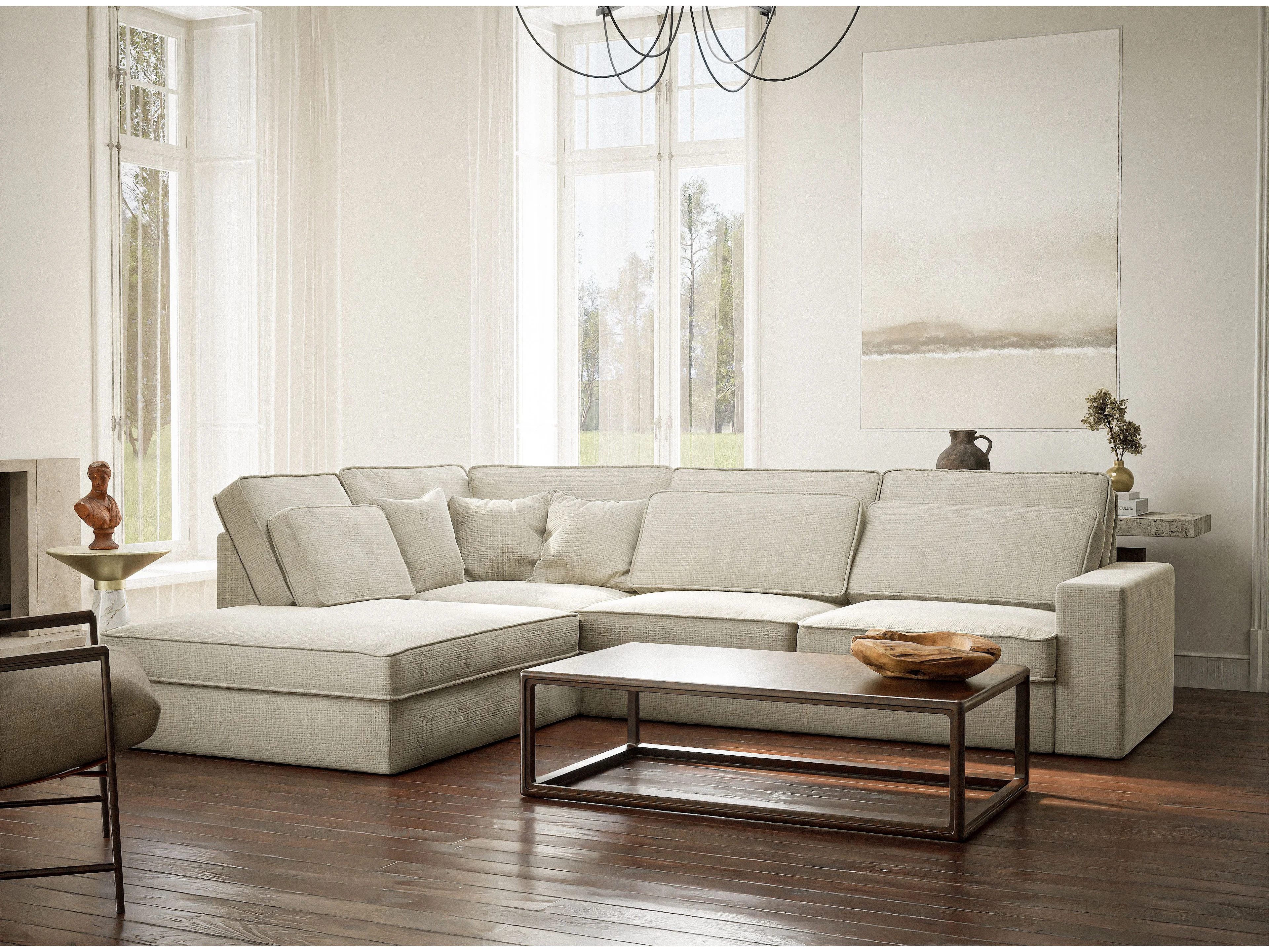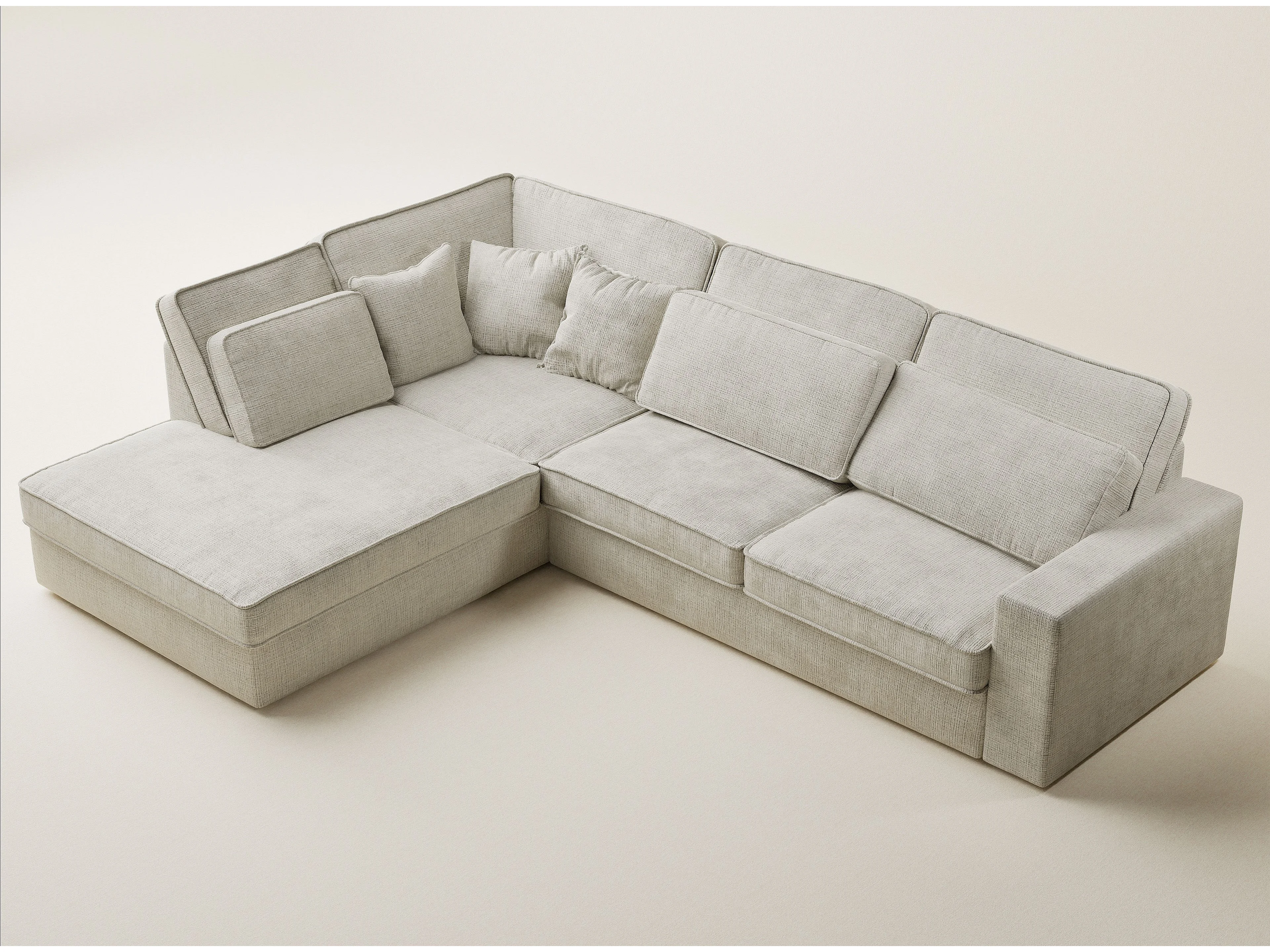 Canapé d'angle gauche 5 places en tissu chenille beige gris KIROU