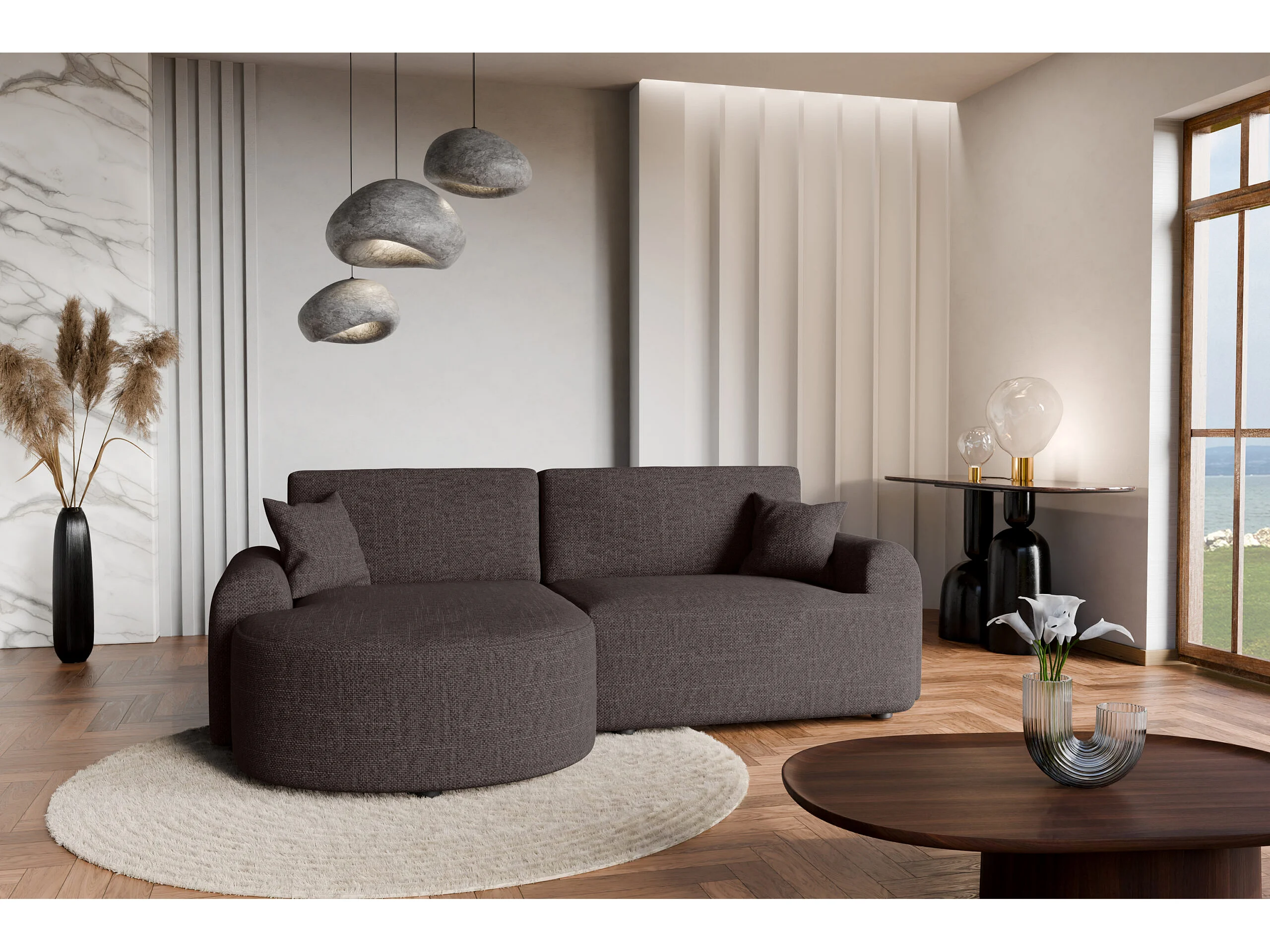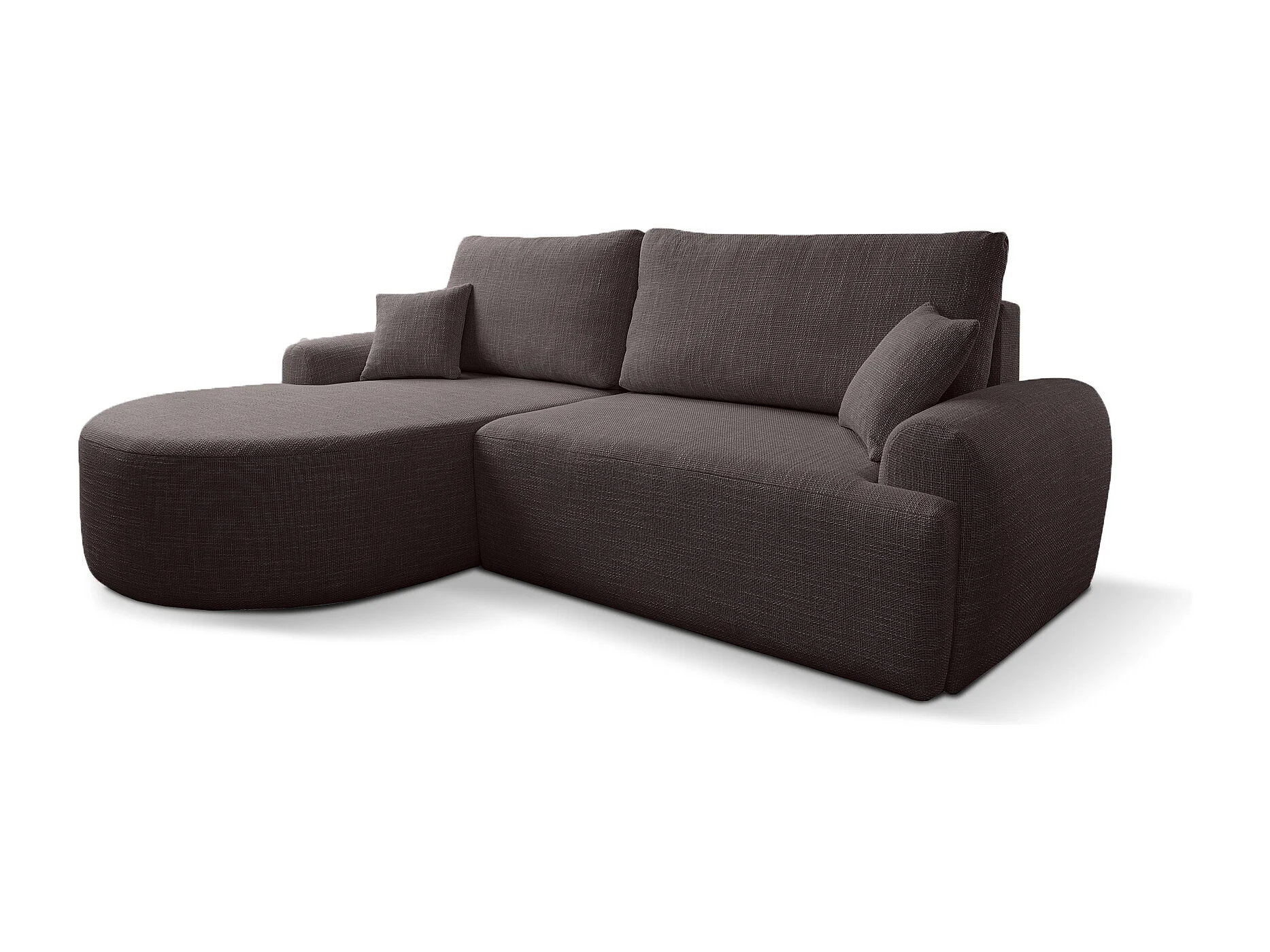Canapé d’angle gauche en tissu tressé brun chocolat, résistant à l’usure, avec fonction couchage – ARTE PREMIUM