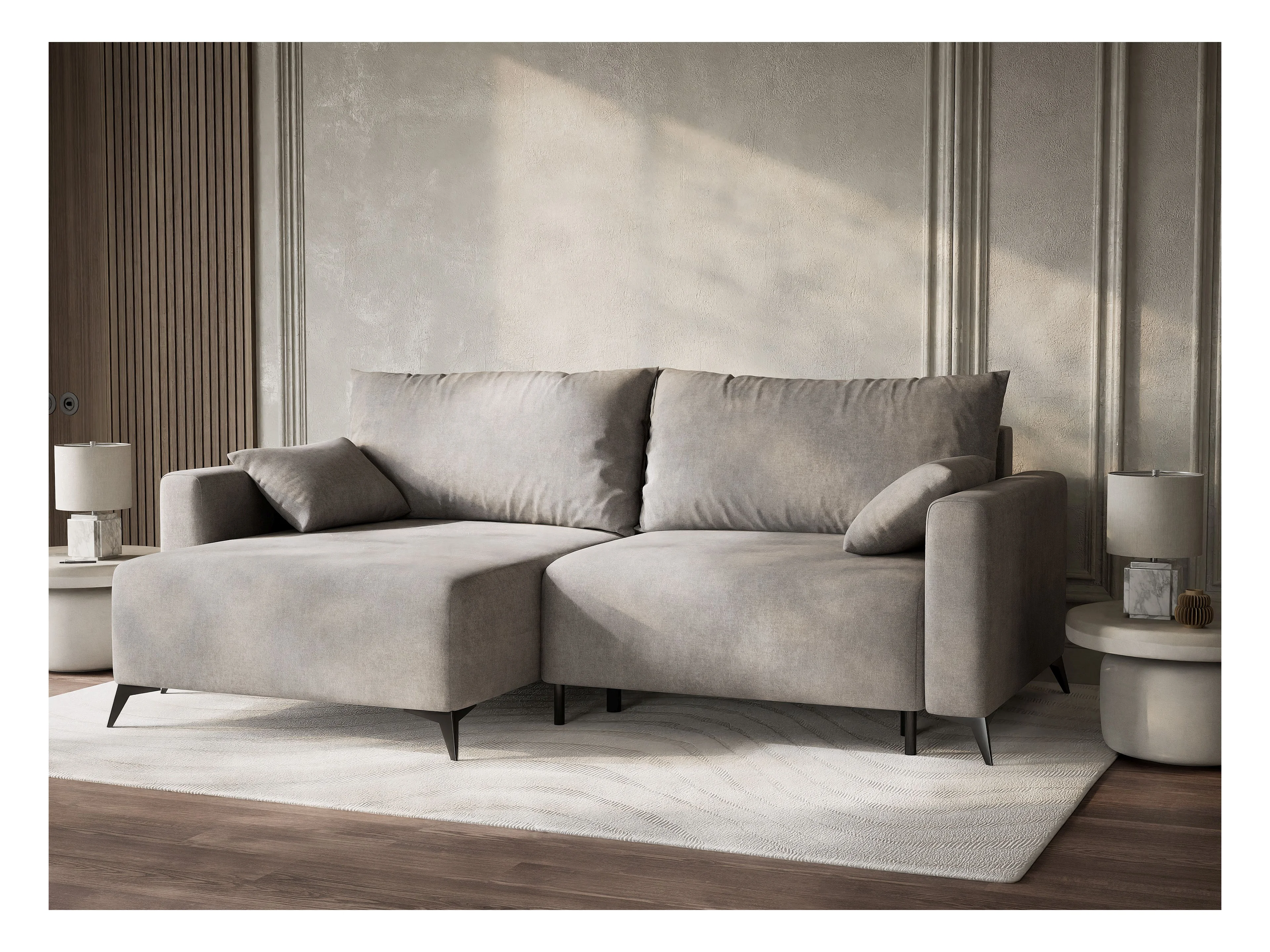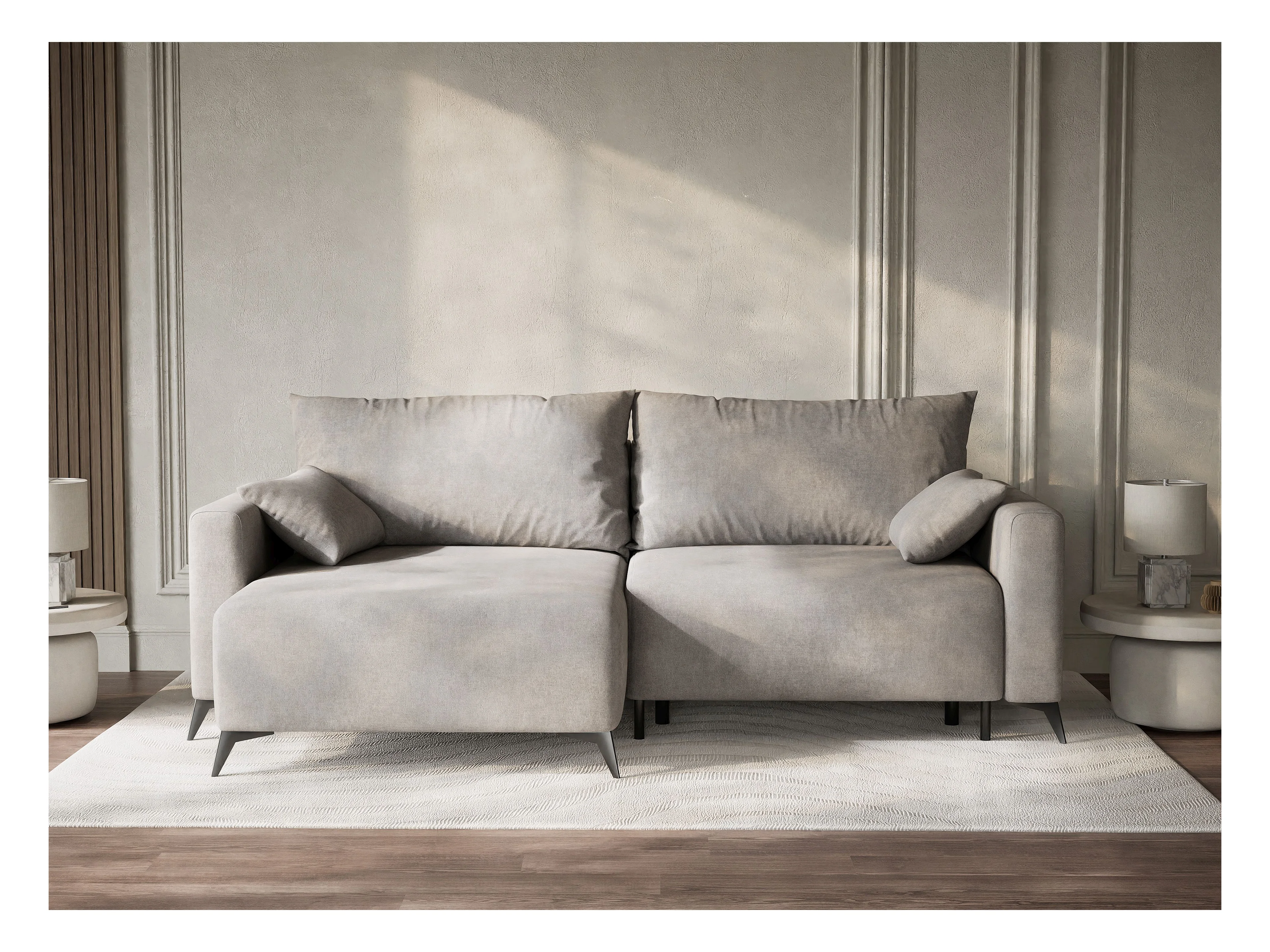 Canapé d'angle gauche avec fonction lit en tissu chenille beige gris LEON