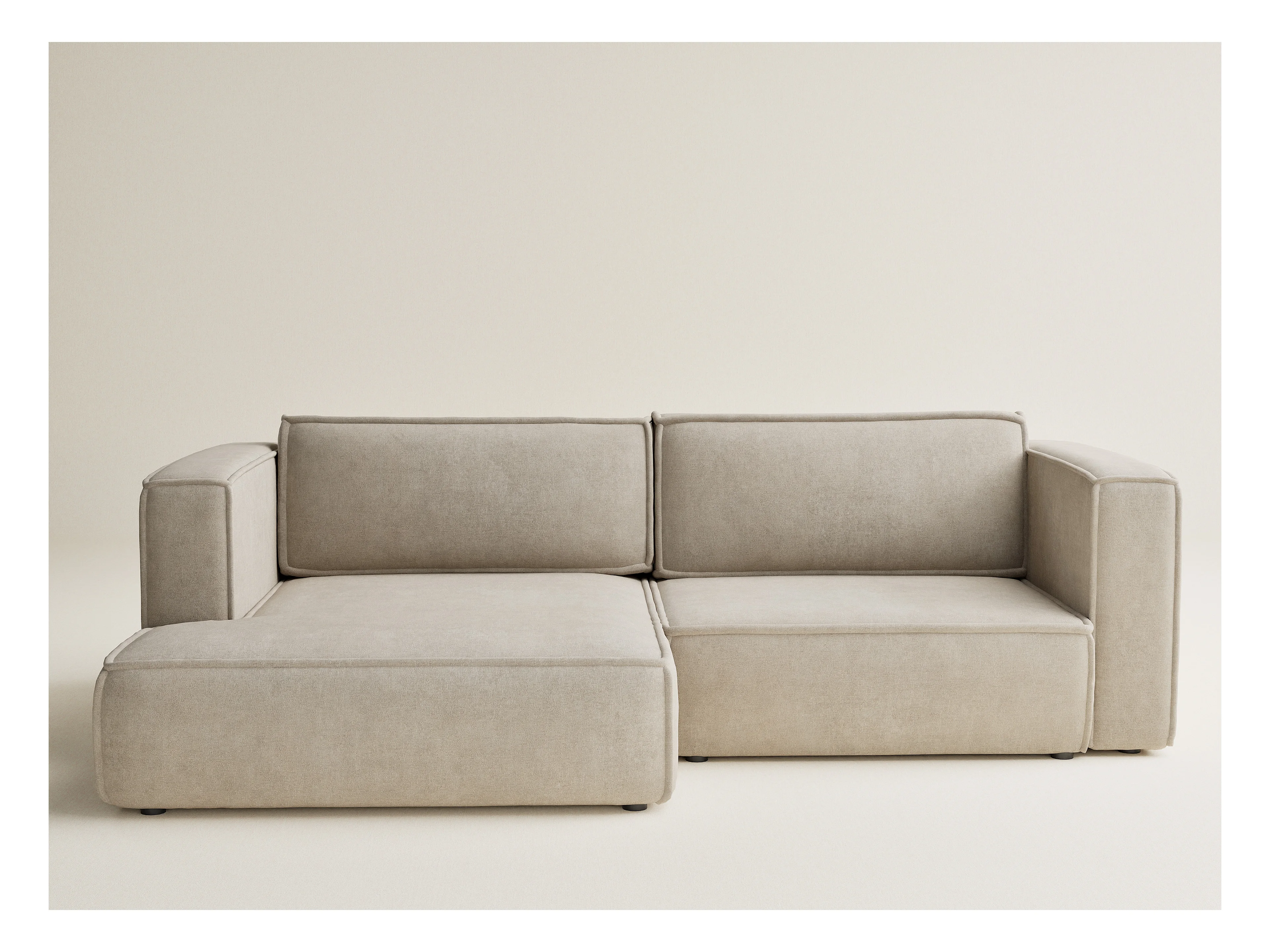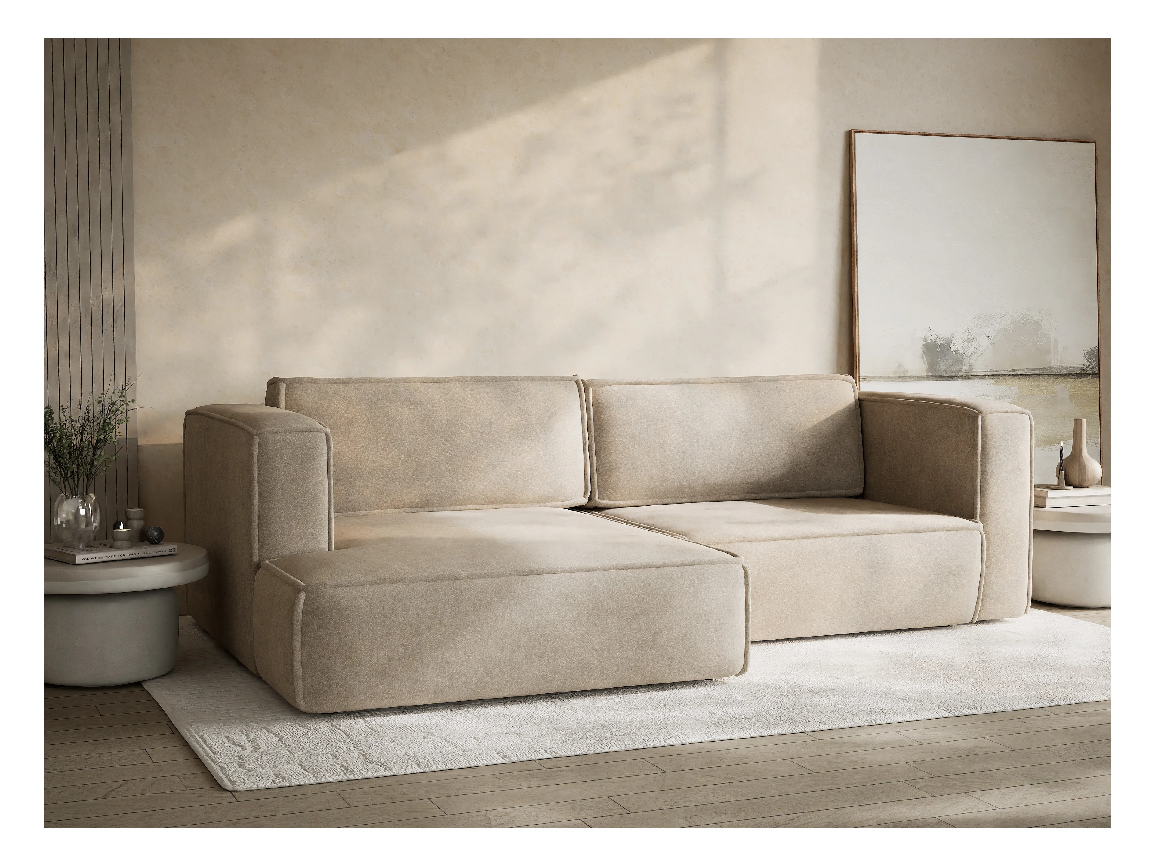 Canapé d'angle gauche avec fonction lit en tissu chenille beige VELTO