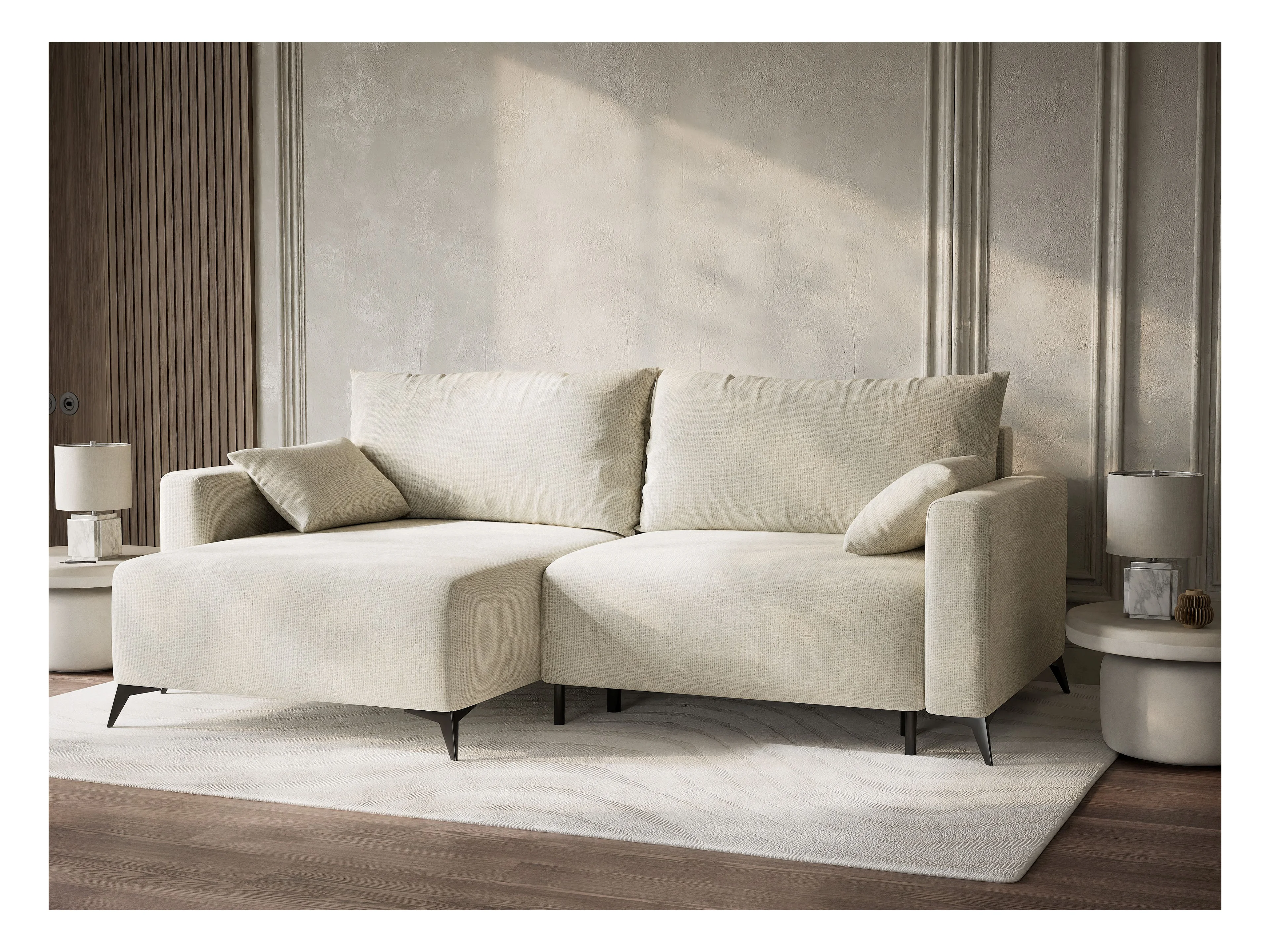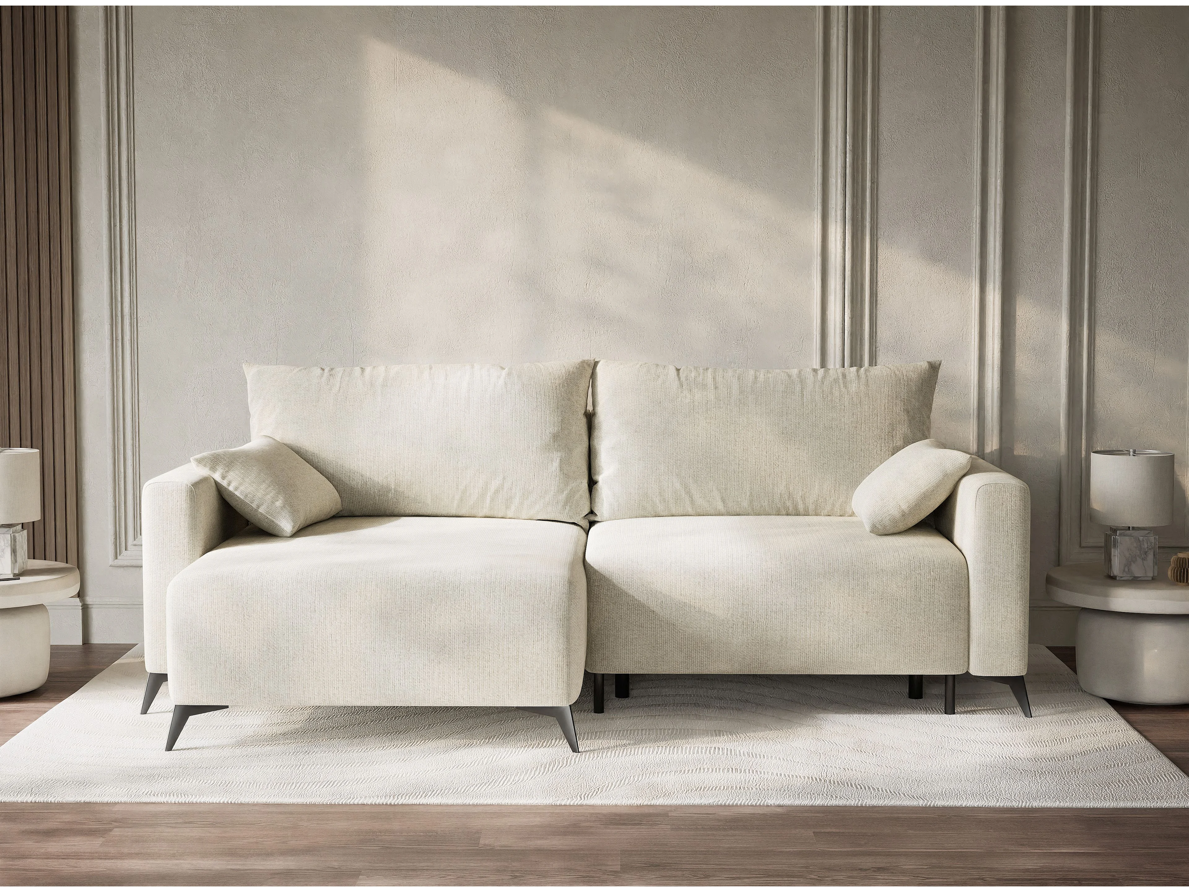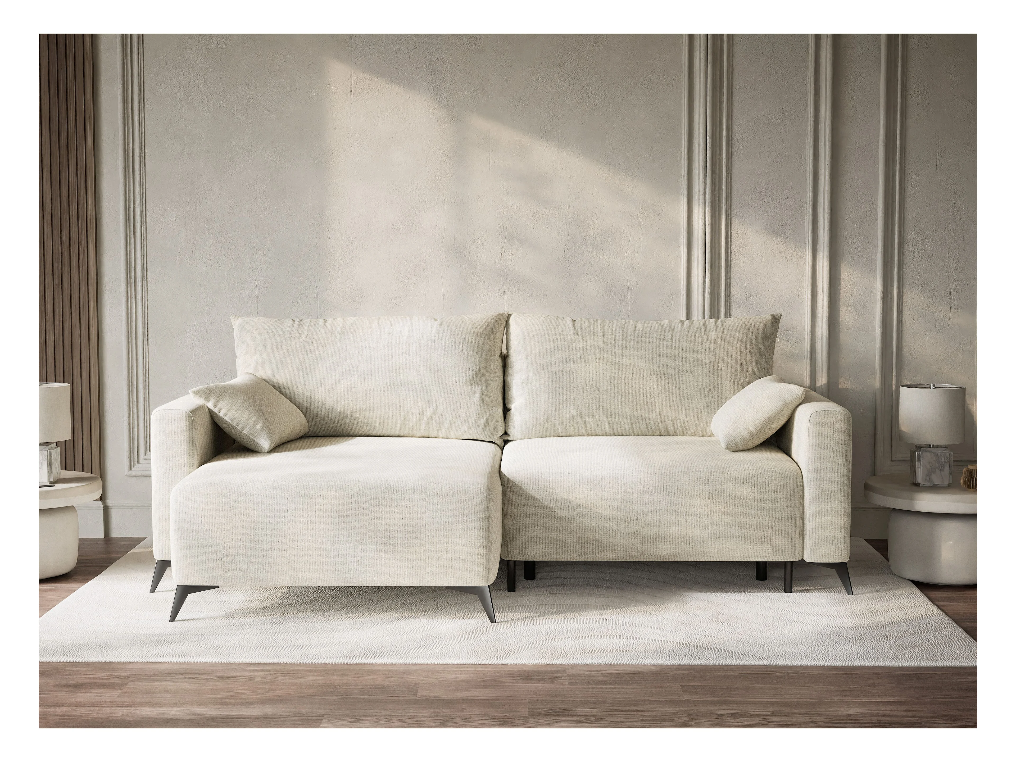 Canapé d'angle gauche avec fonction lit en tissu chenille creme LEON