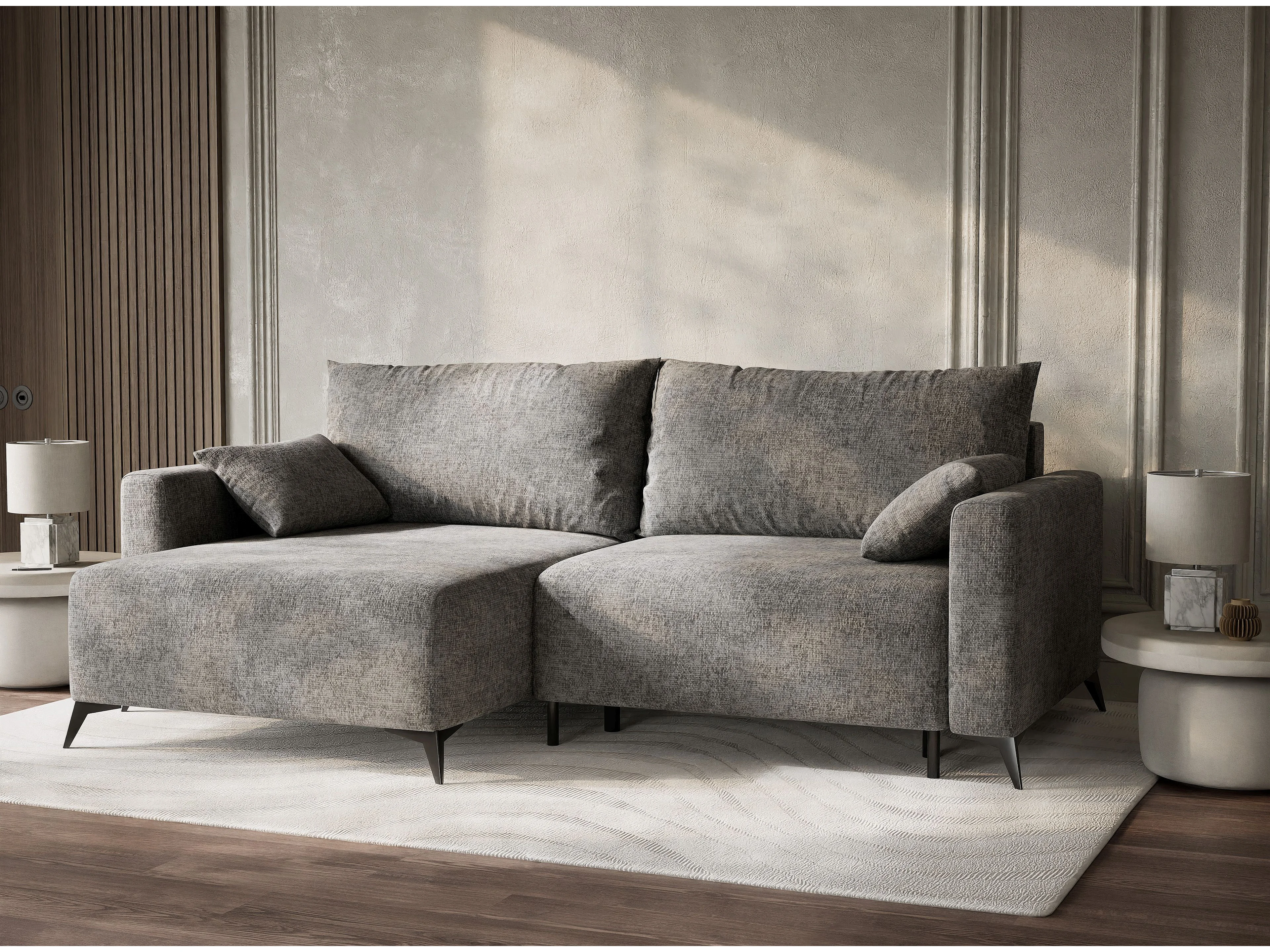 Canapé d'angle gauche avec fonction lit en tissu chenille gris LEON
