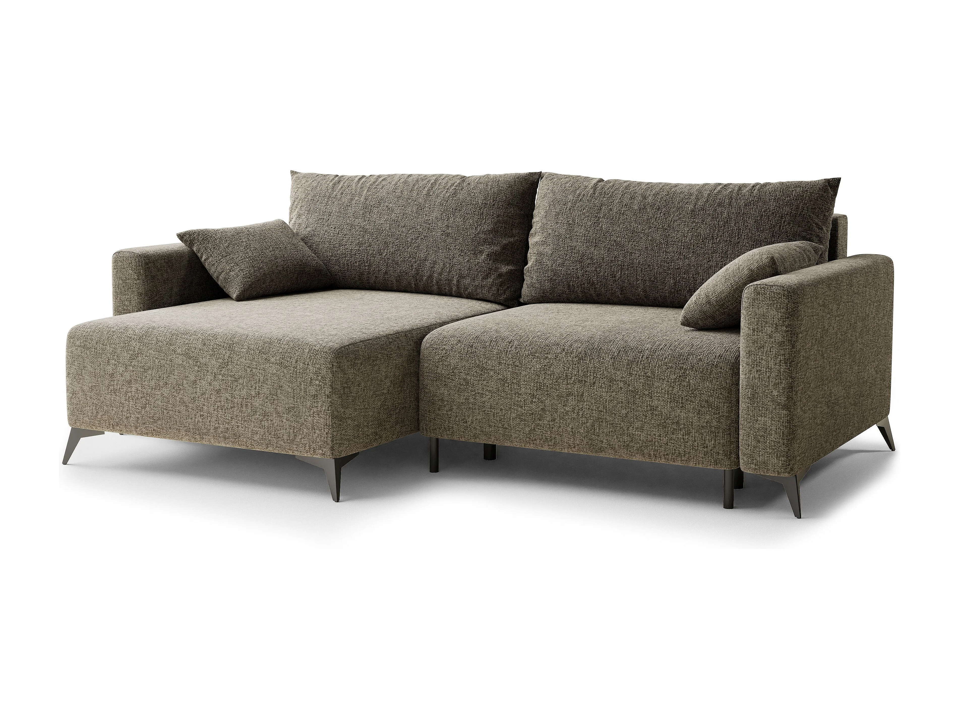 Canapé d'angle gauche avec fonction lit en tissu chenille taupe LEON