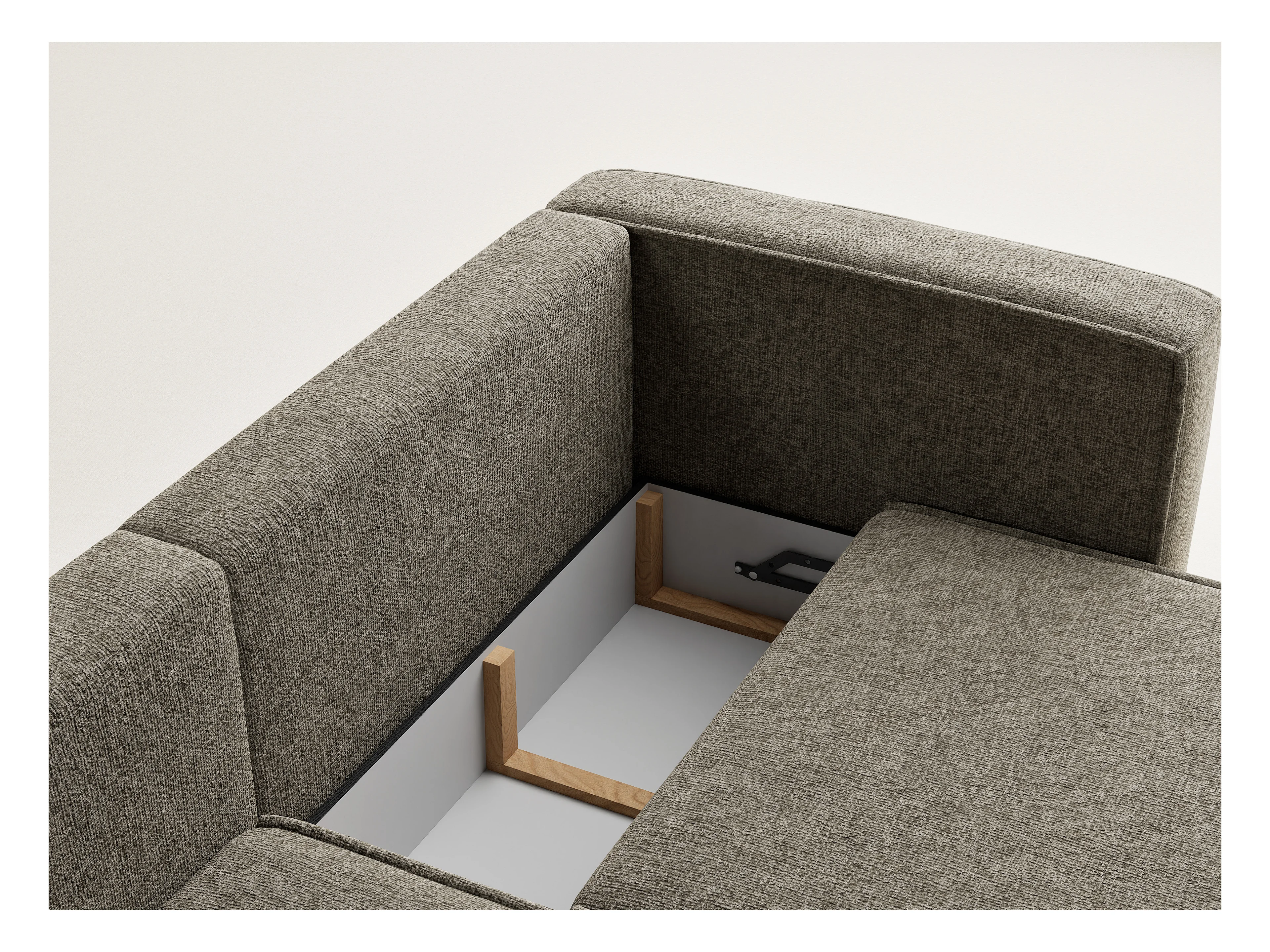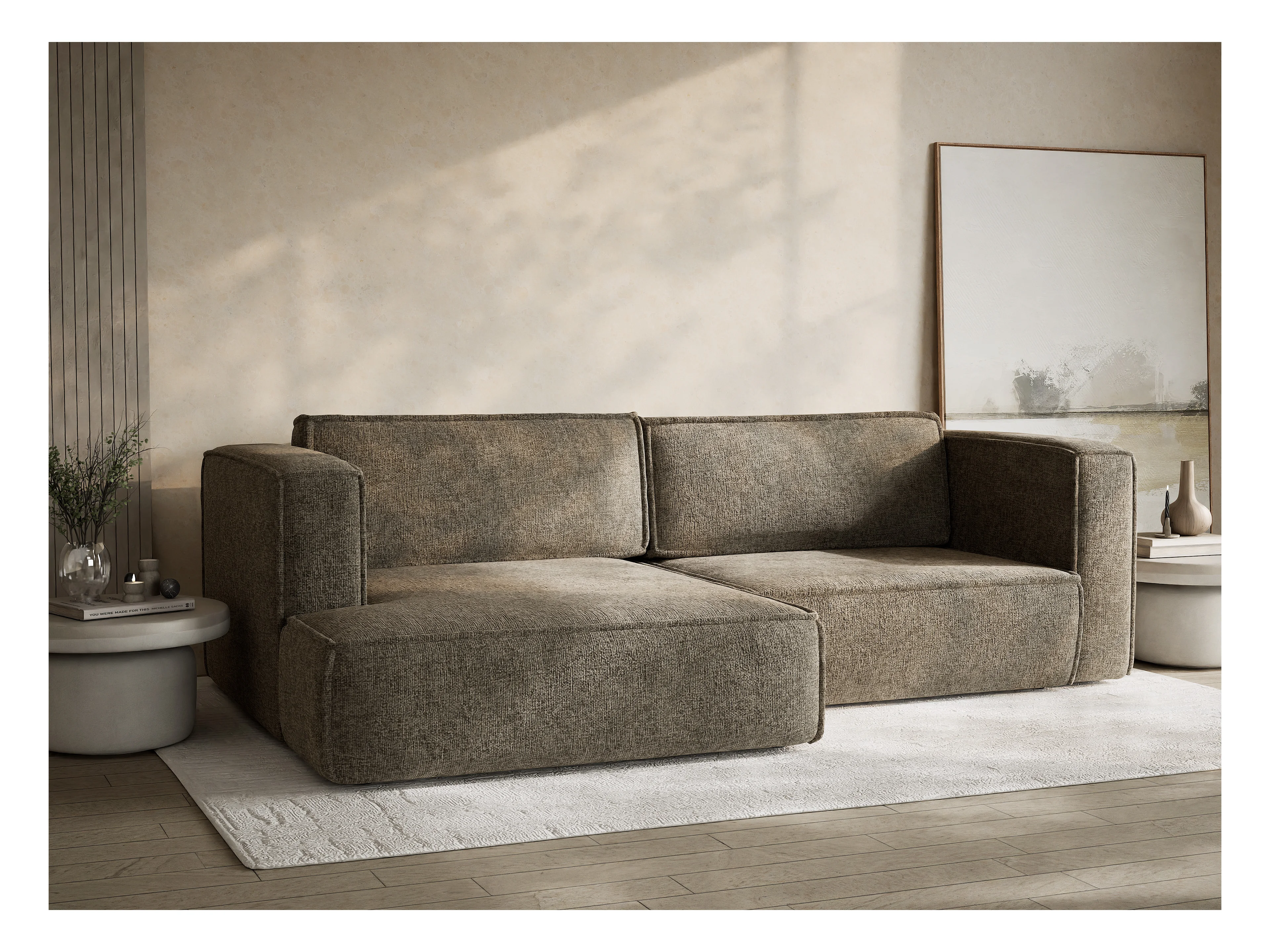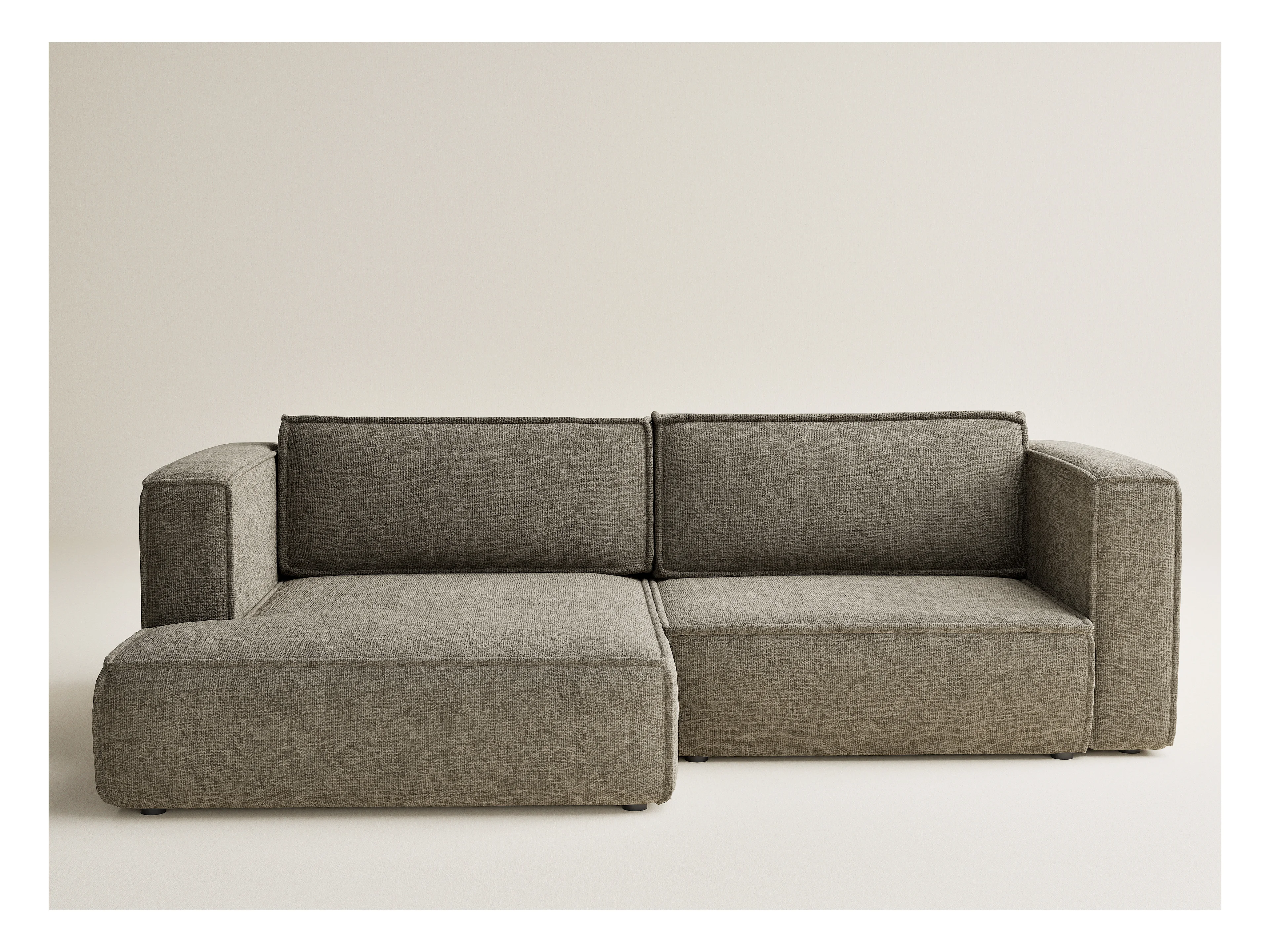 Canapé d'angle gauche avec fonction lit en tissu chenille taupe VELTO