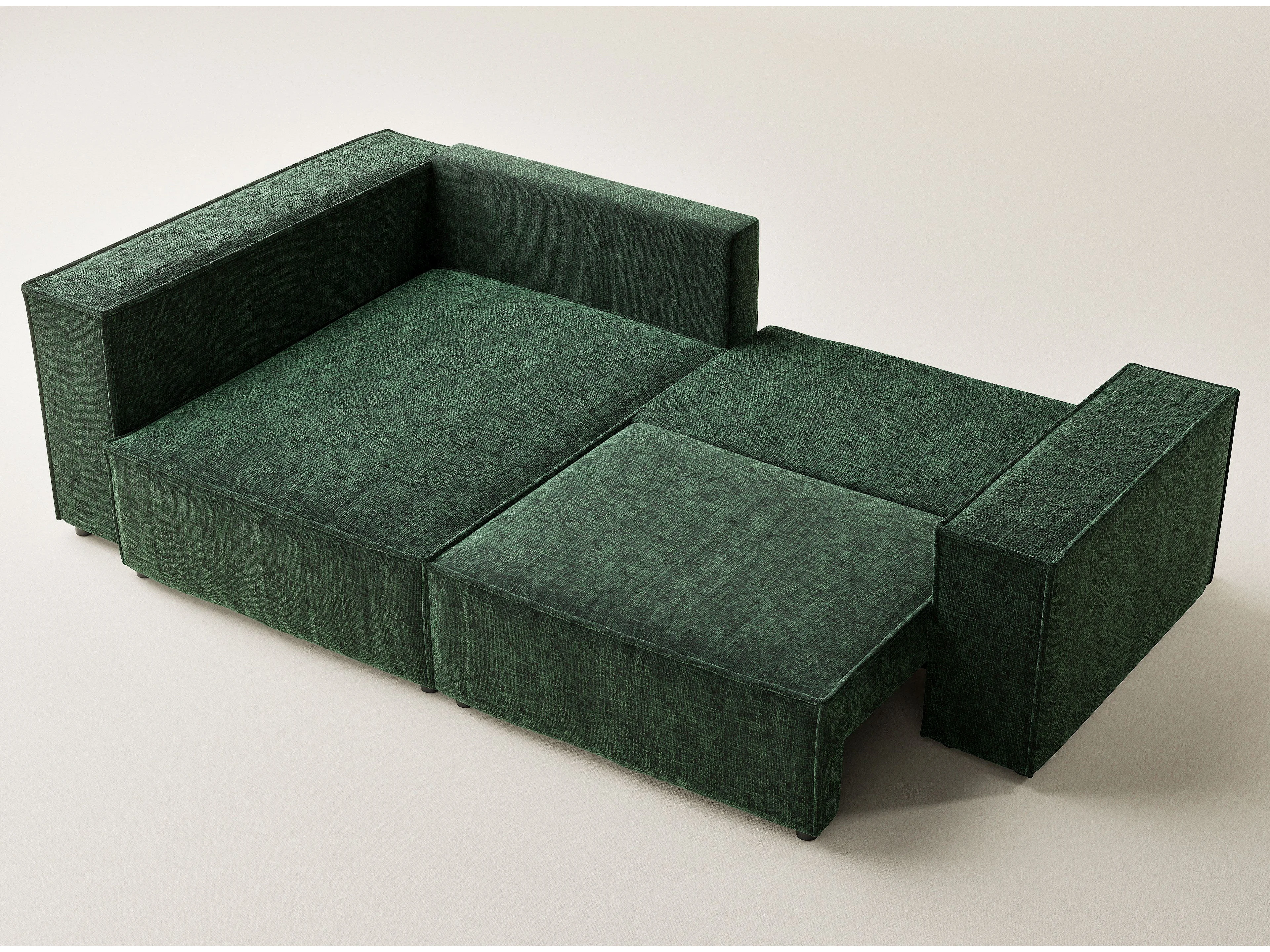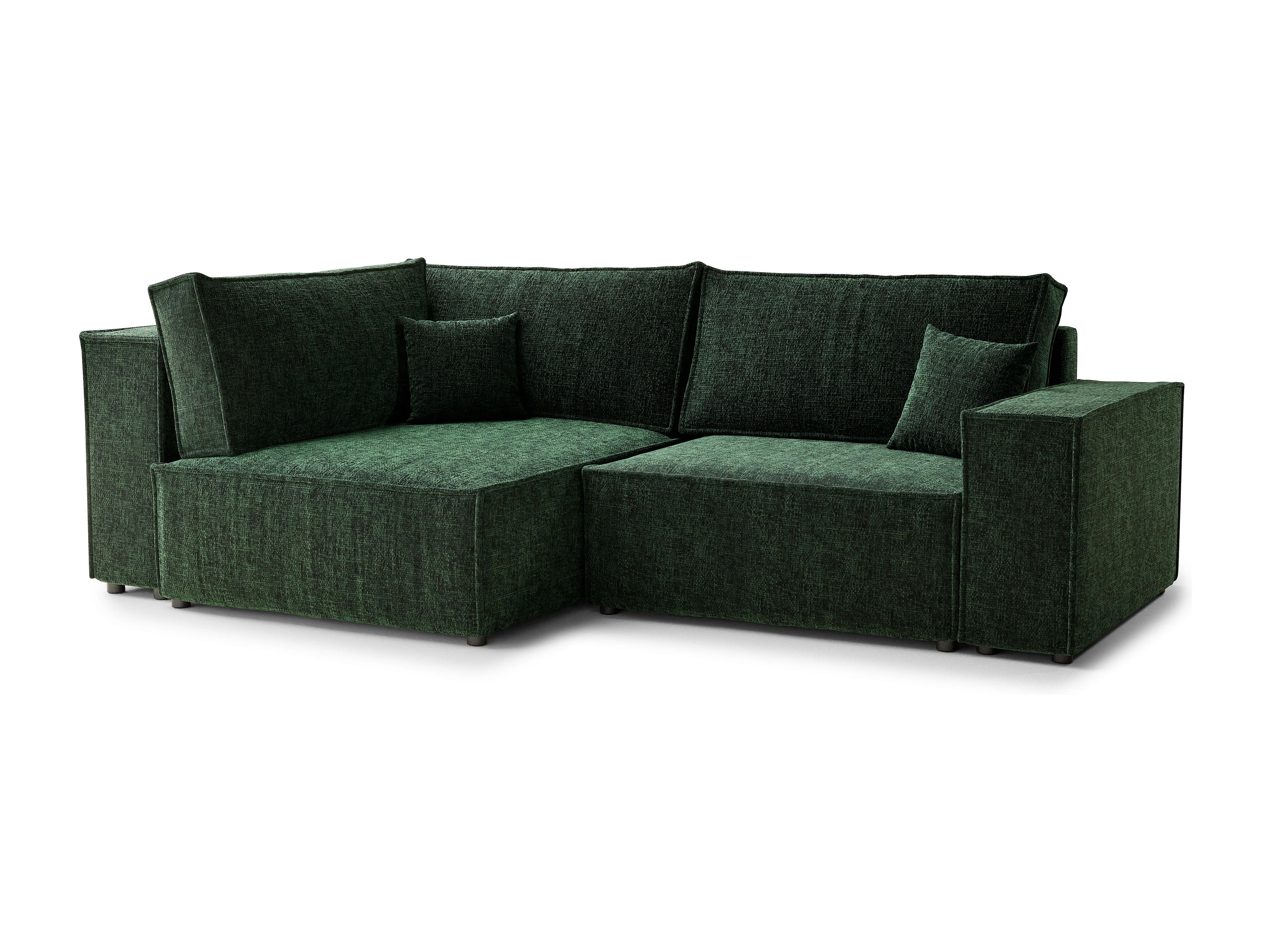 Canapé d'angle gauche avec fonction lit en tissu chenille vert foncé LEON