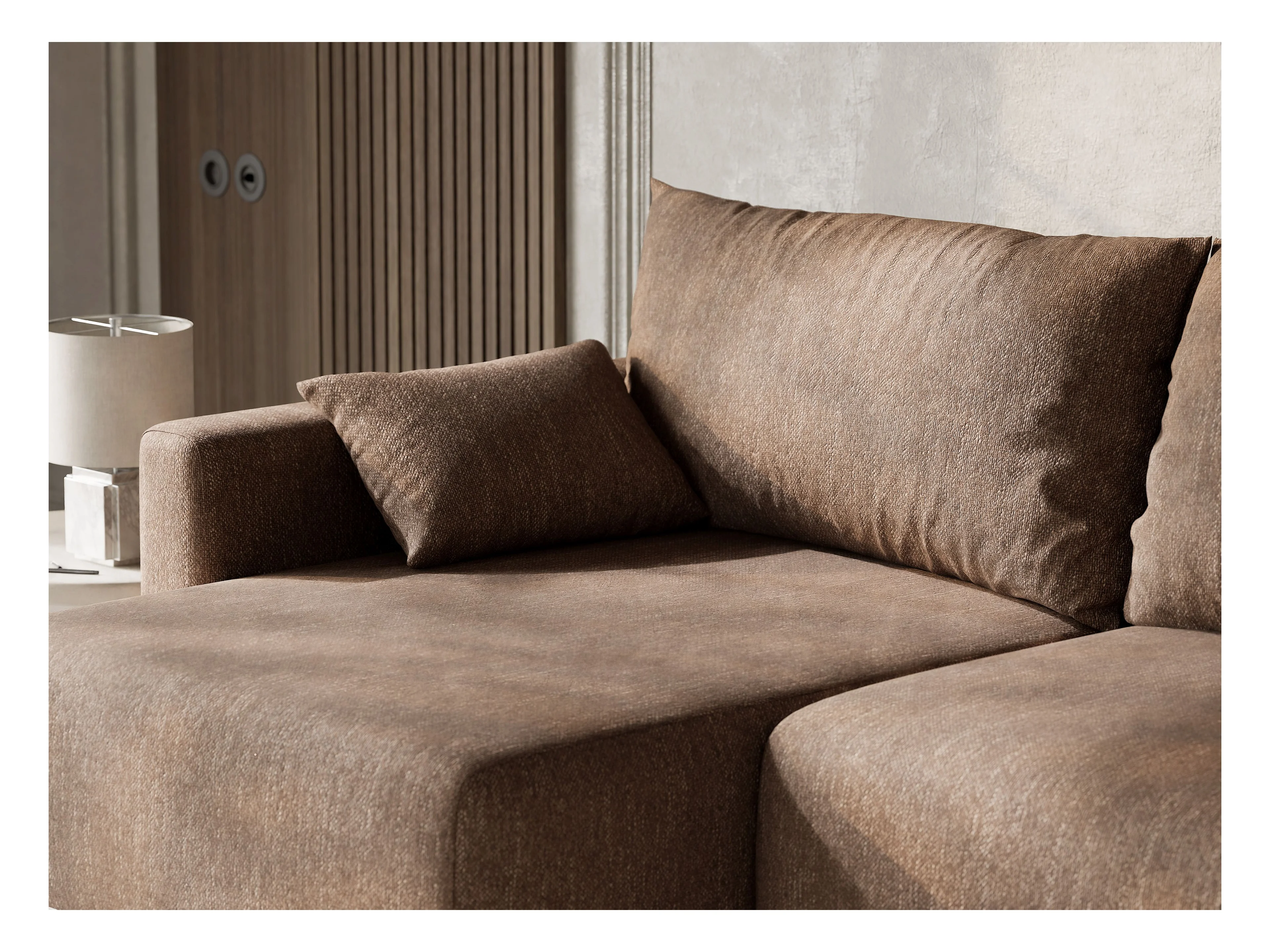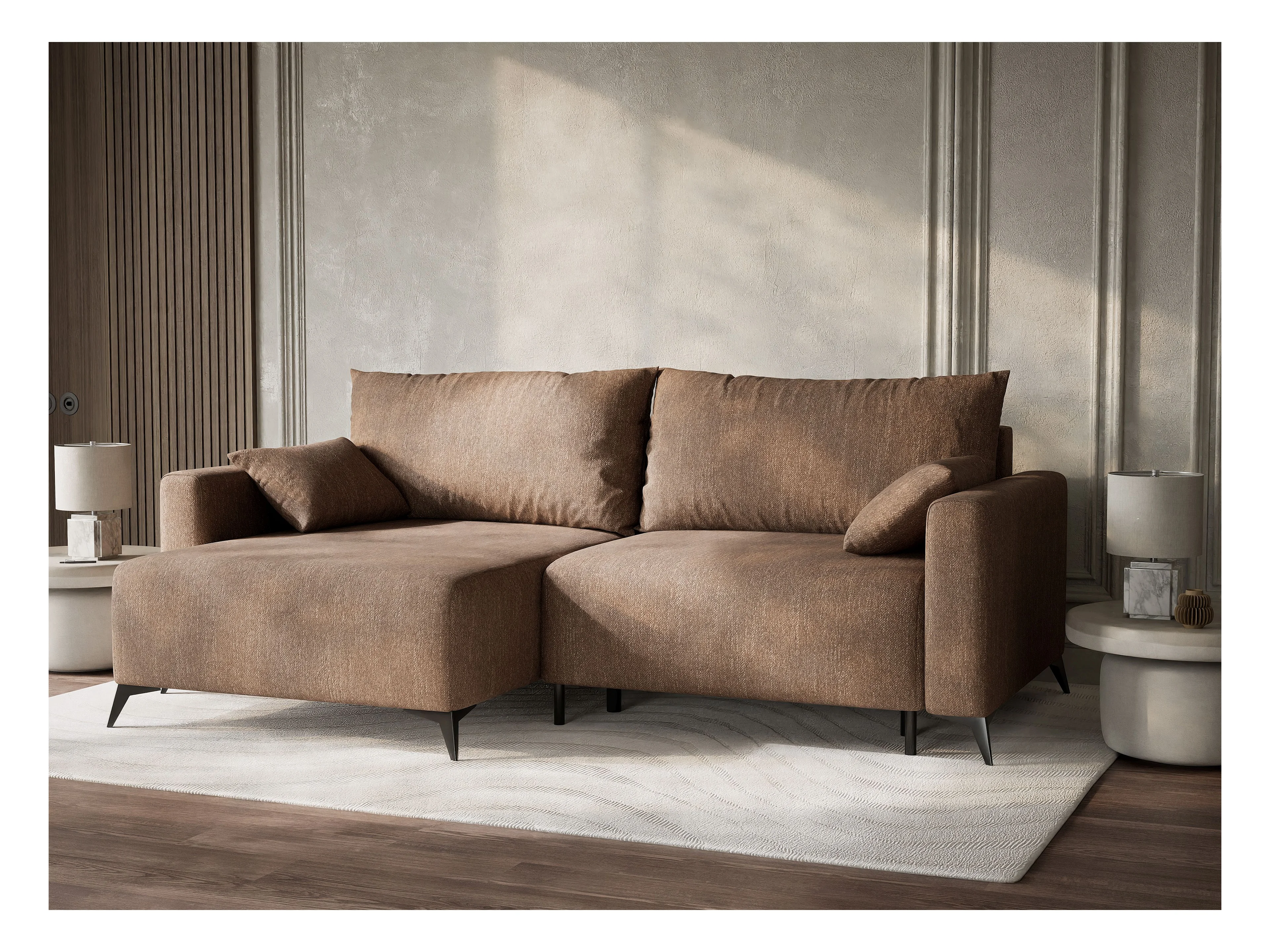 Canapé d'angle gauche avec fonction lit en tissu tressé brun LEON