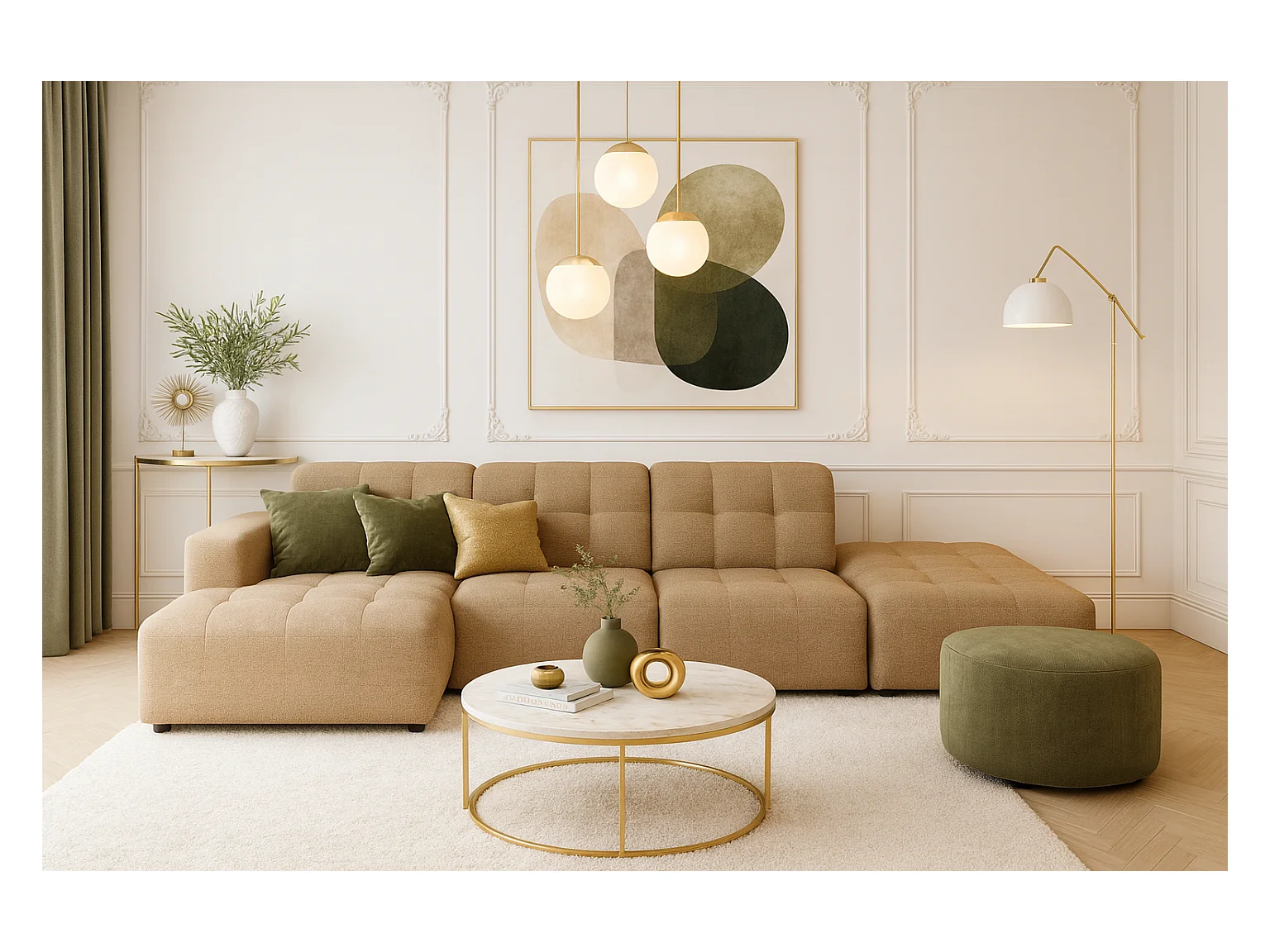 Canapé d’angle modulable CURSAL F – angle gauche, 364×166×70 cm, marron clair Raven 34, méridiennes arrondies, autoportant