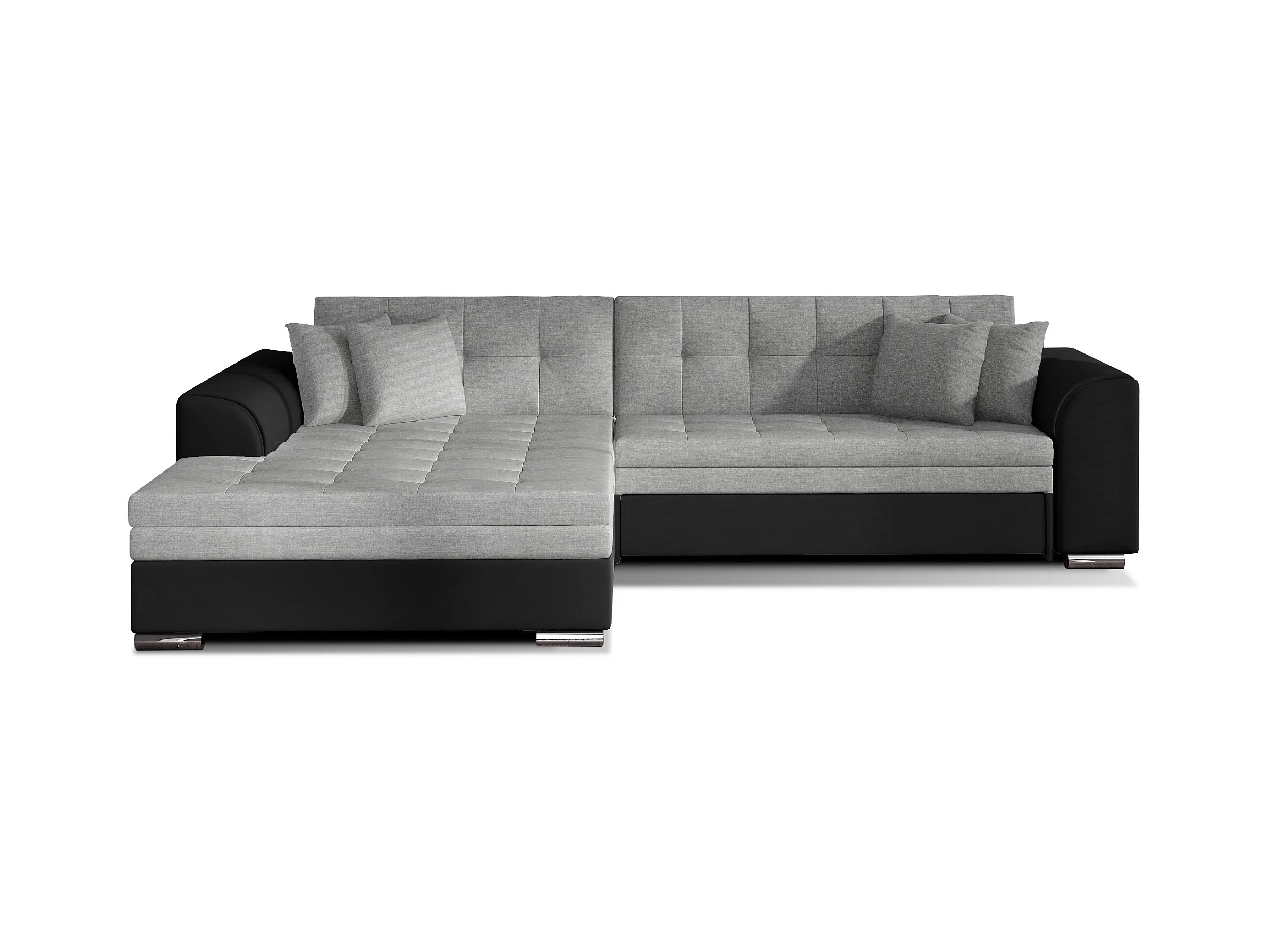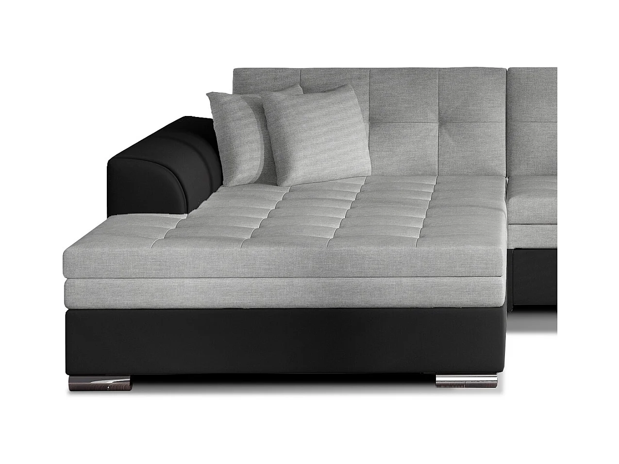 Canapé convertible angle gauche tissu gris clair et simili noir Waker 275cm