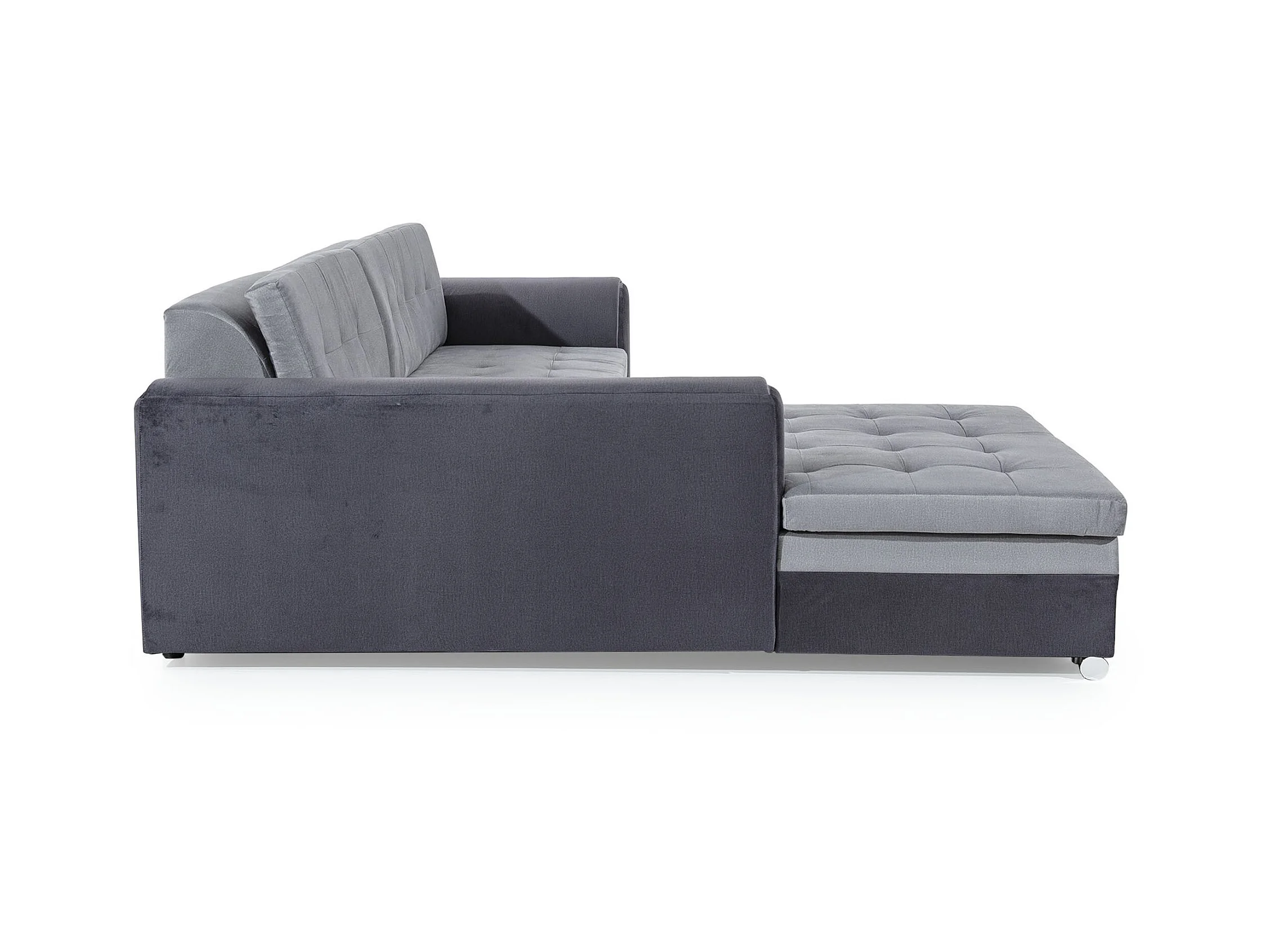 Canapé d'angle droit convertible 4 places tissu gris clair et simili noir Looka 295cm