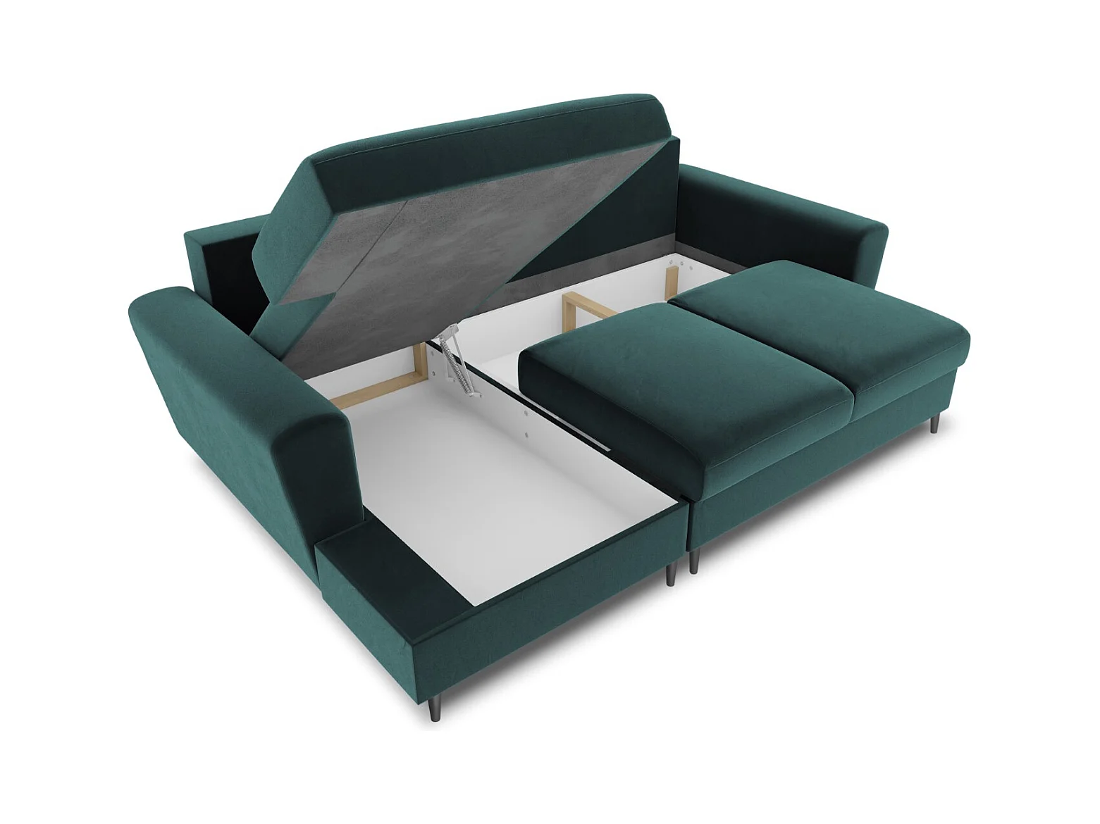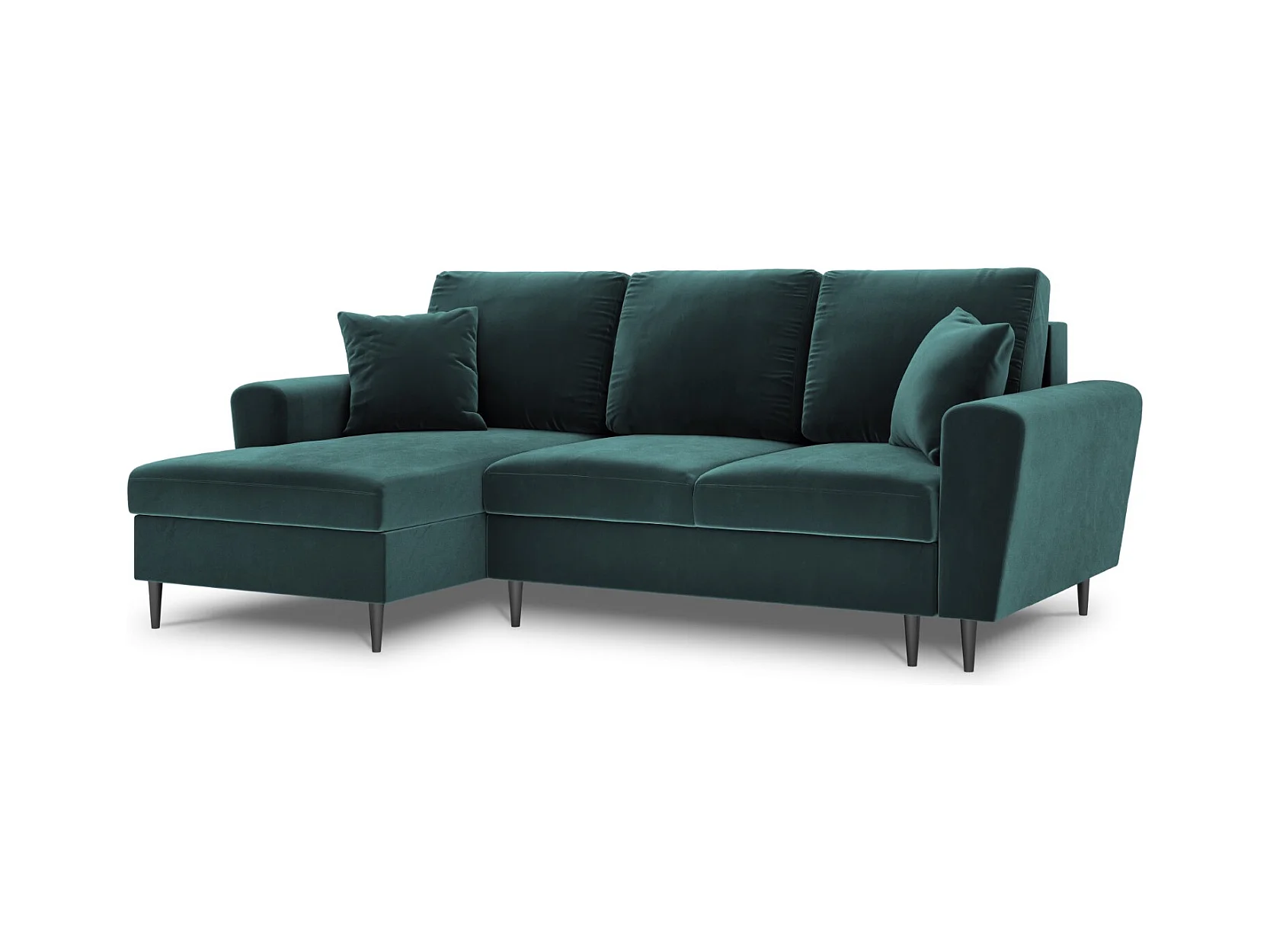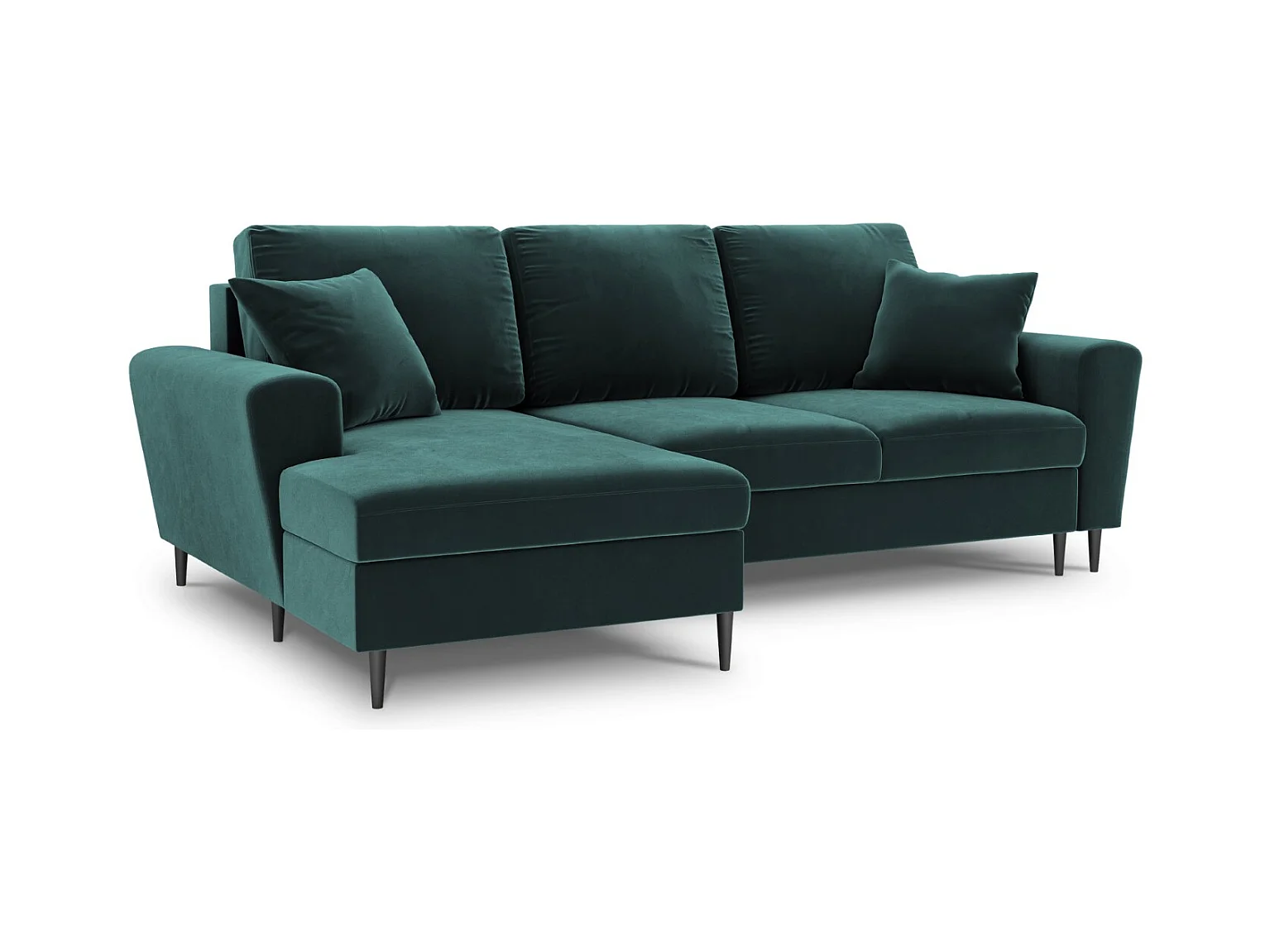 Cosmopolitan Design - Canapé d'angle gauche convertible avec coffre de rangement "Kyoto" 4 places en velours pétrole - 241x145x88cm