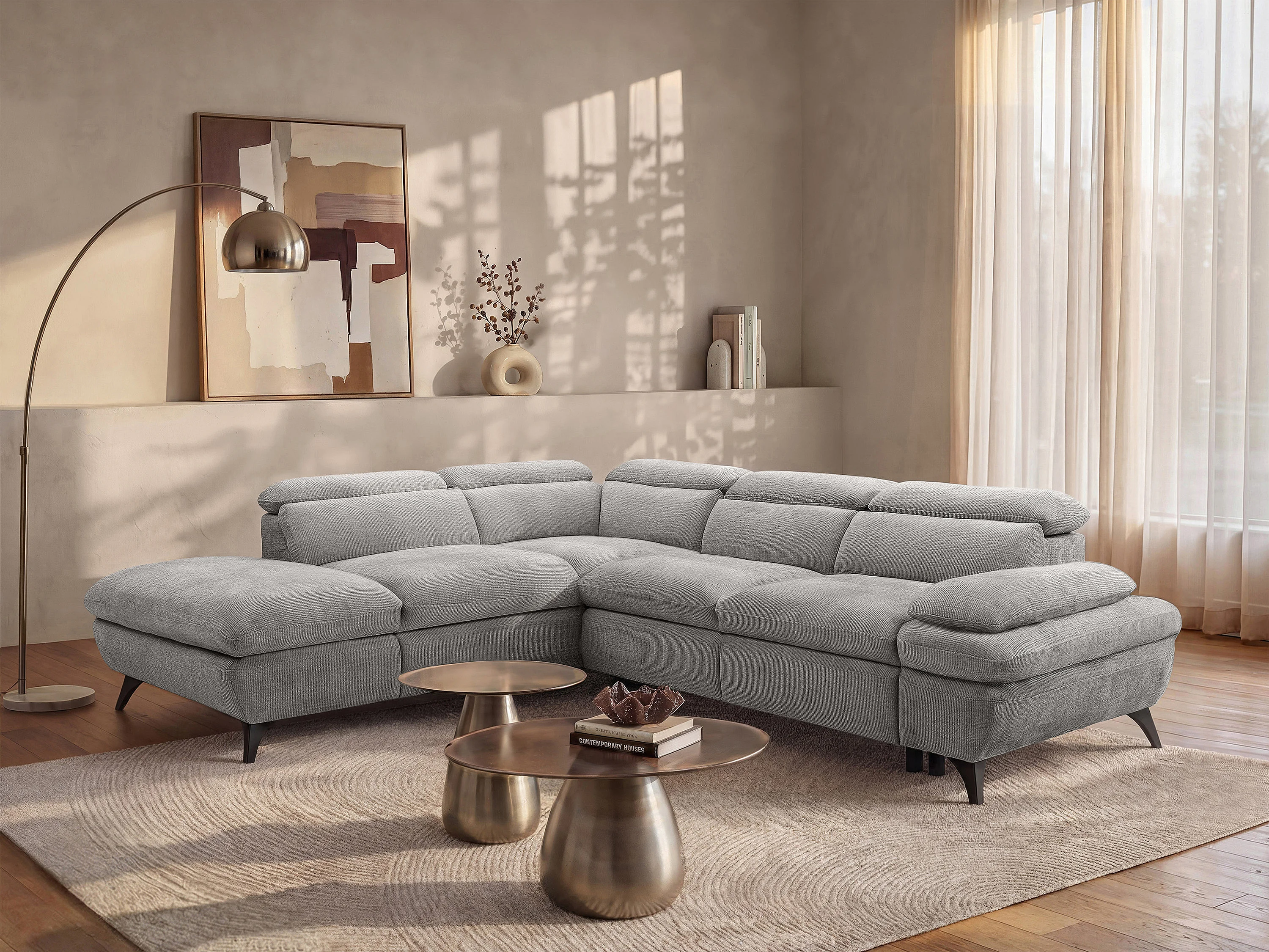 Canapé d'angle gauche convertible avec dossier méridienne en tissu texturé gris SURDELI