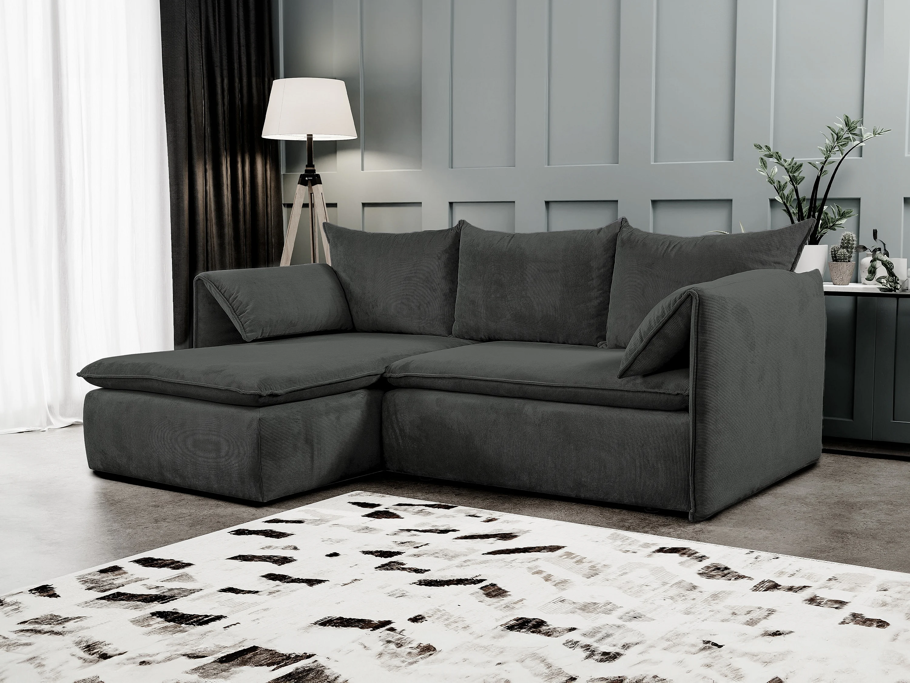 Canapé d'angle gauche convertible en velours côtelé fines côtes gris anthracite TEODORA