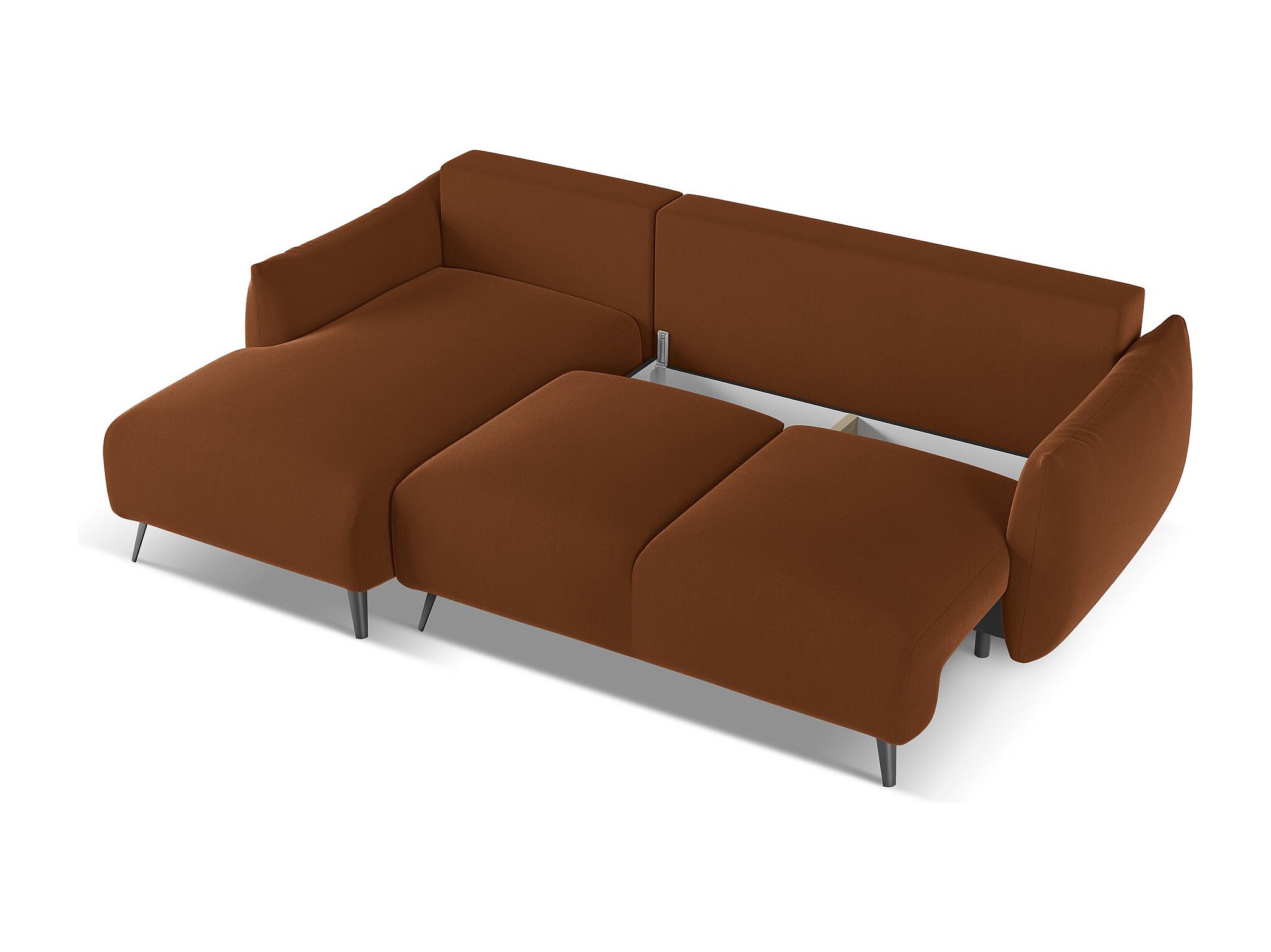 Canapé d'angle gauche convertible en velours - terre cuite - MALIE