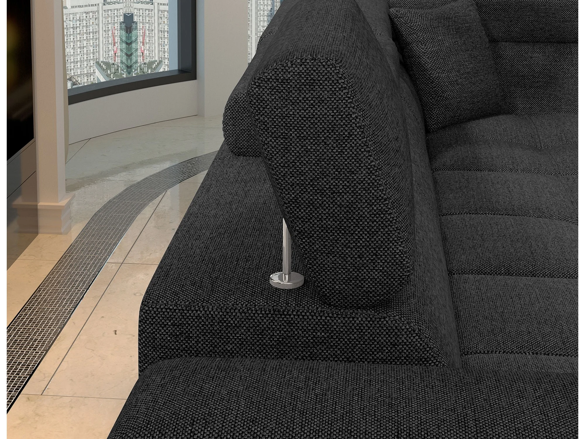 Canapé d'angle convertible tissu MARIDO - Coffre et appuis-tête réglables-Gris foncé-angle gauche