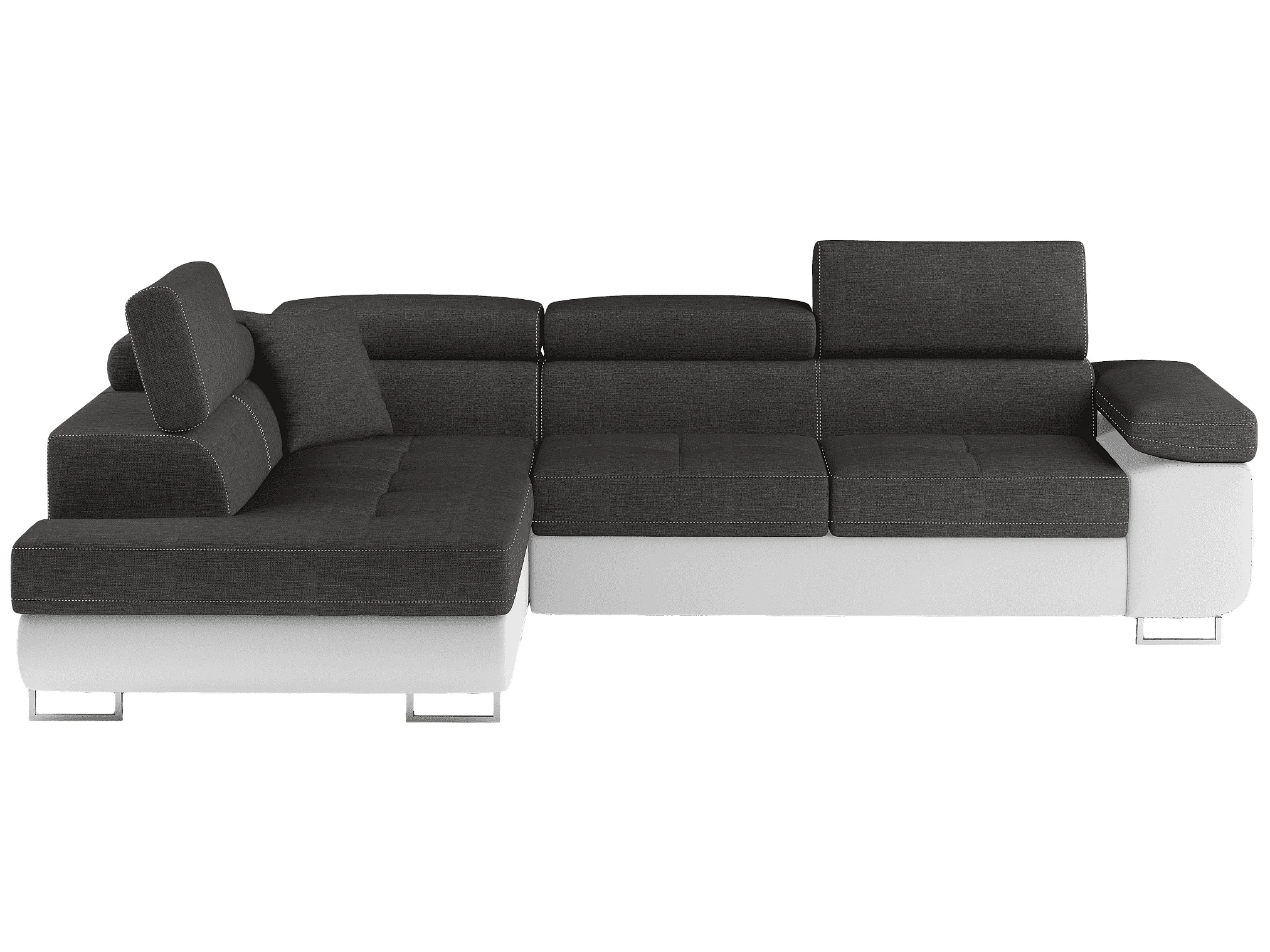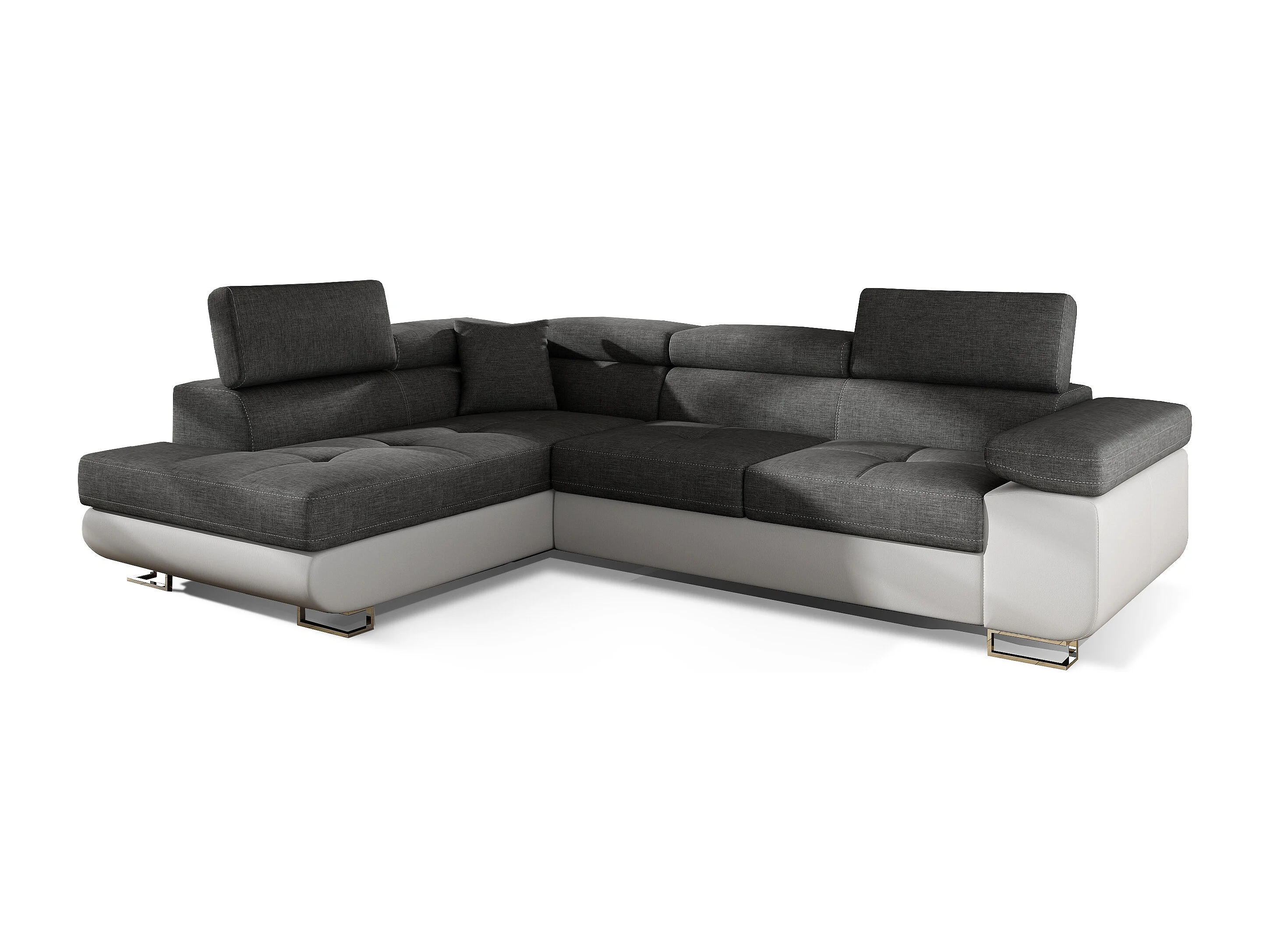 Canapé d'angle convertible simili cuir et tissu MARKA - Coffre et appuis-tête réglables-Blanc/Gris foncé-angle gauche