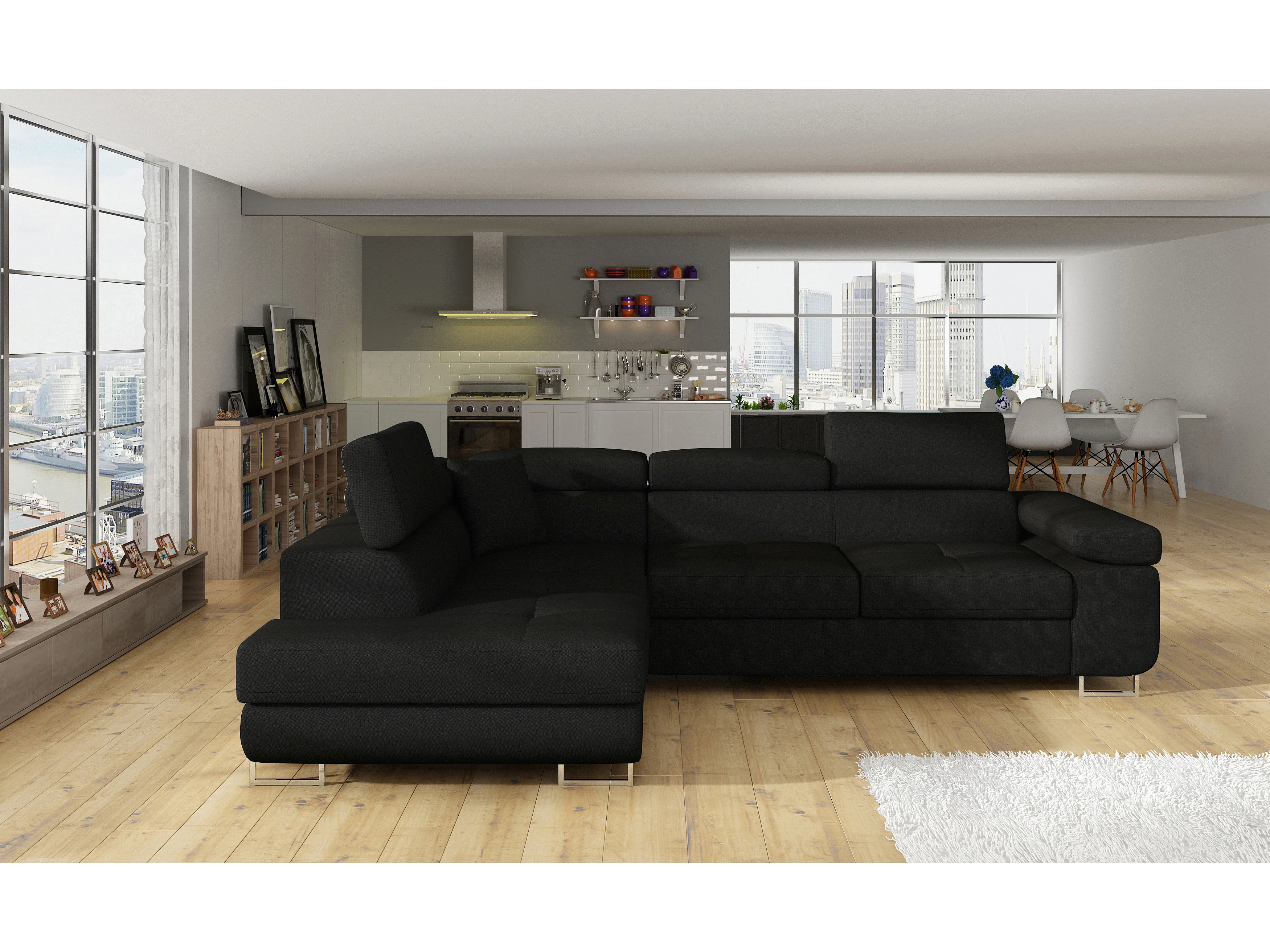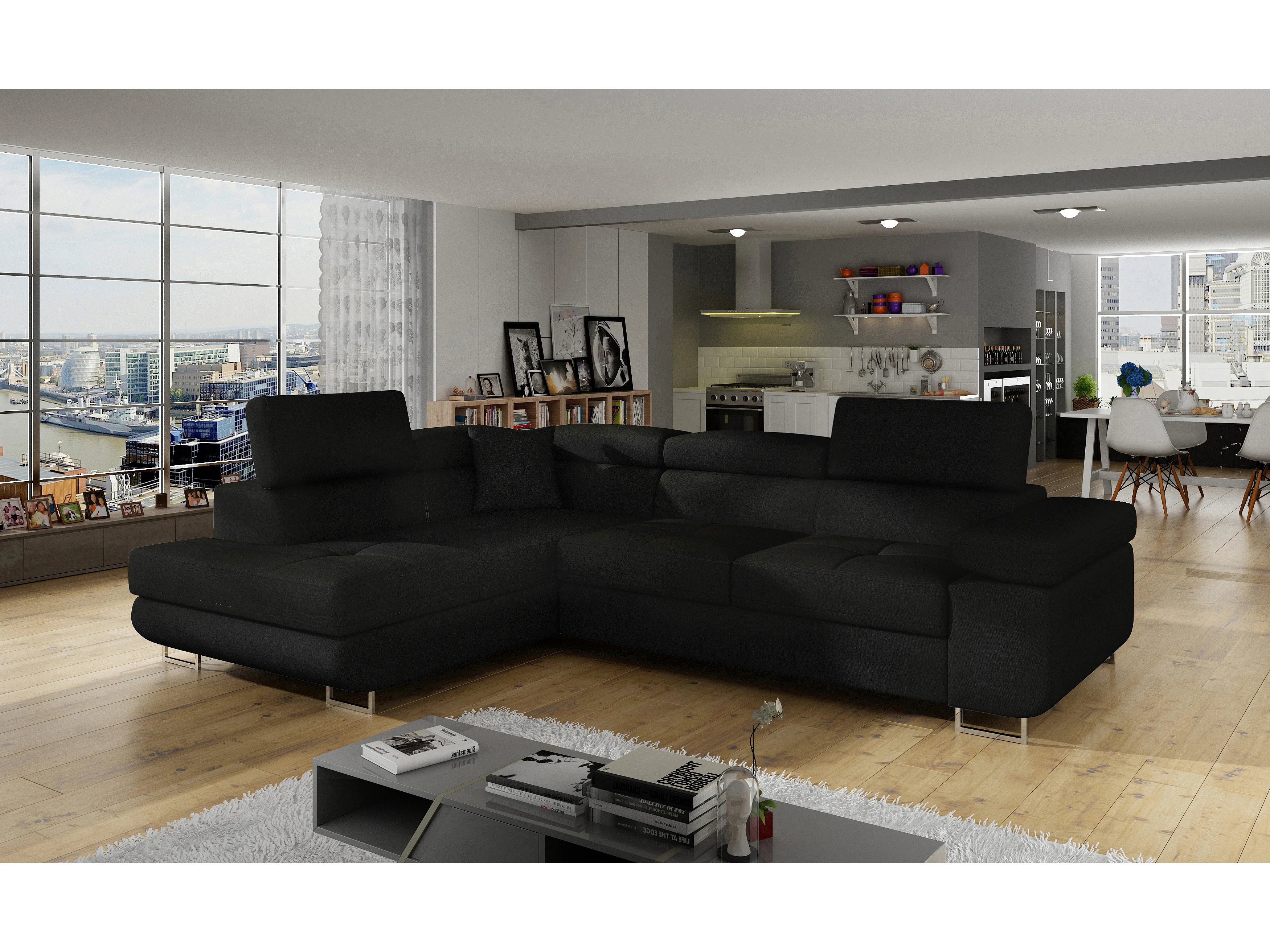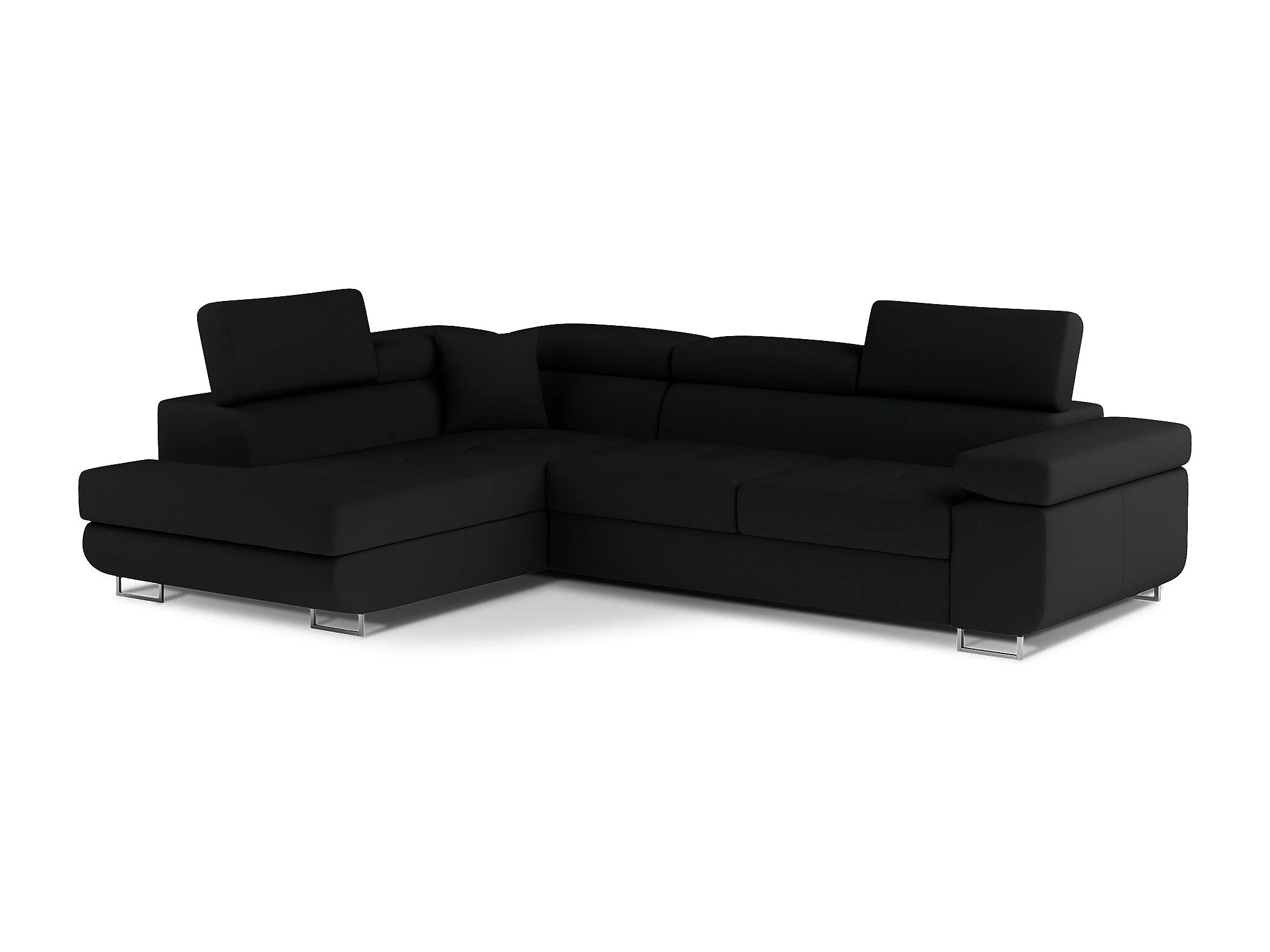 Canapé d'angle convertible tissu MARKA - Coffre et appuis-tête réglables-Noir-angle gauche