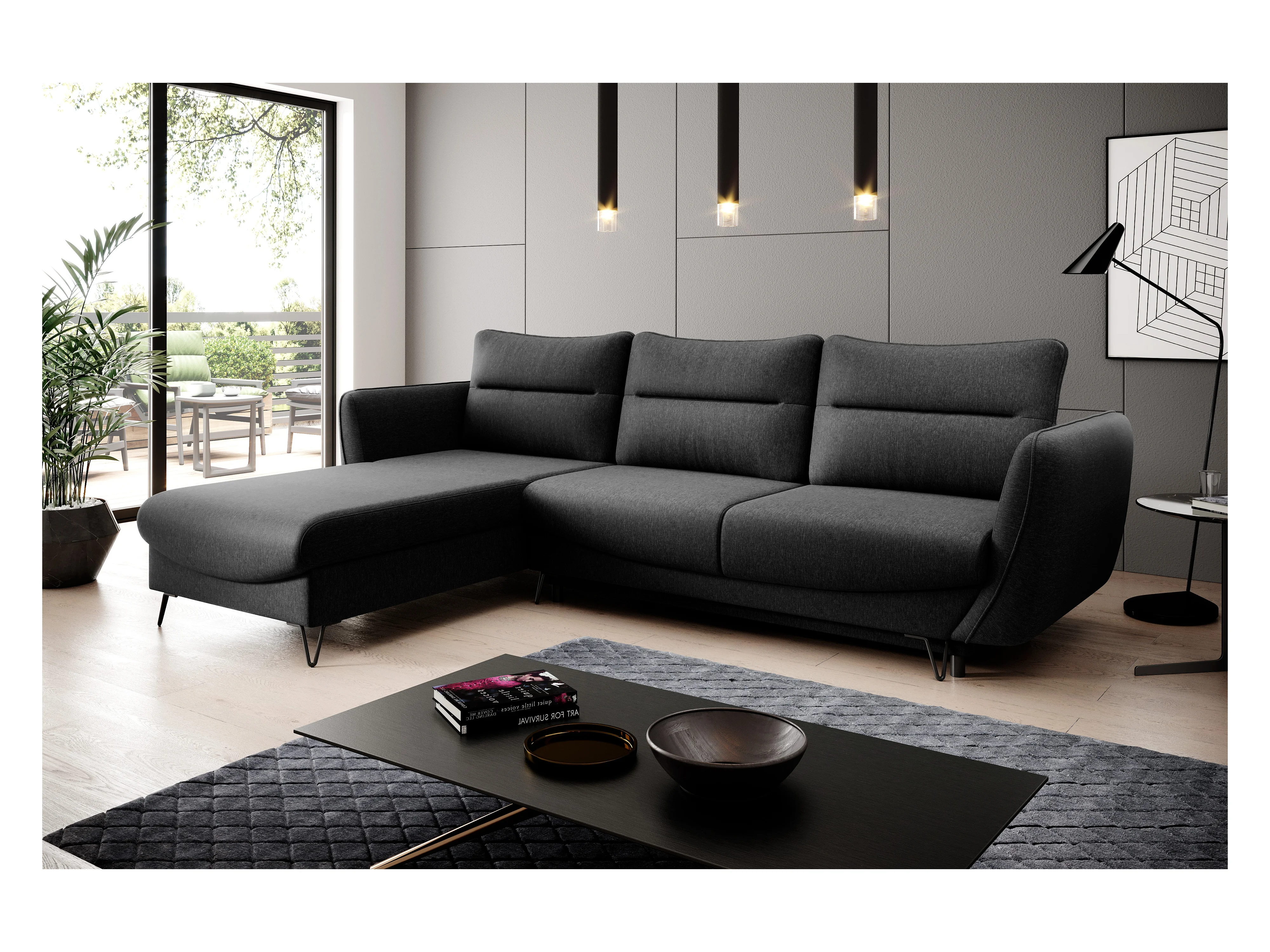 Canapé d'angle droit convertible tissu noir Zurik 276cm