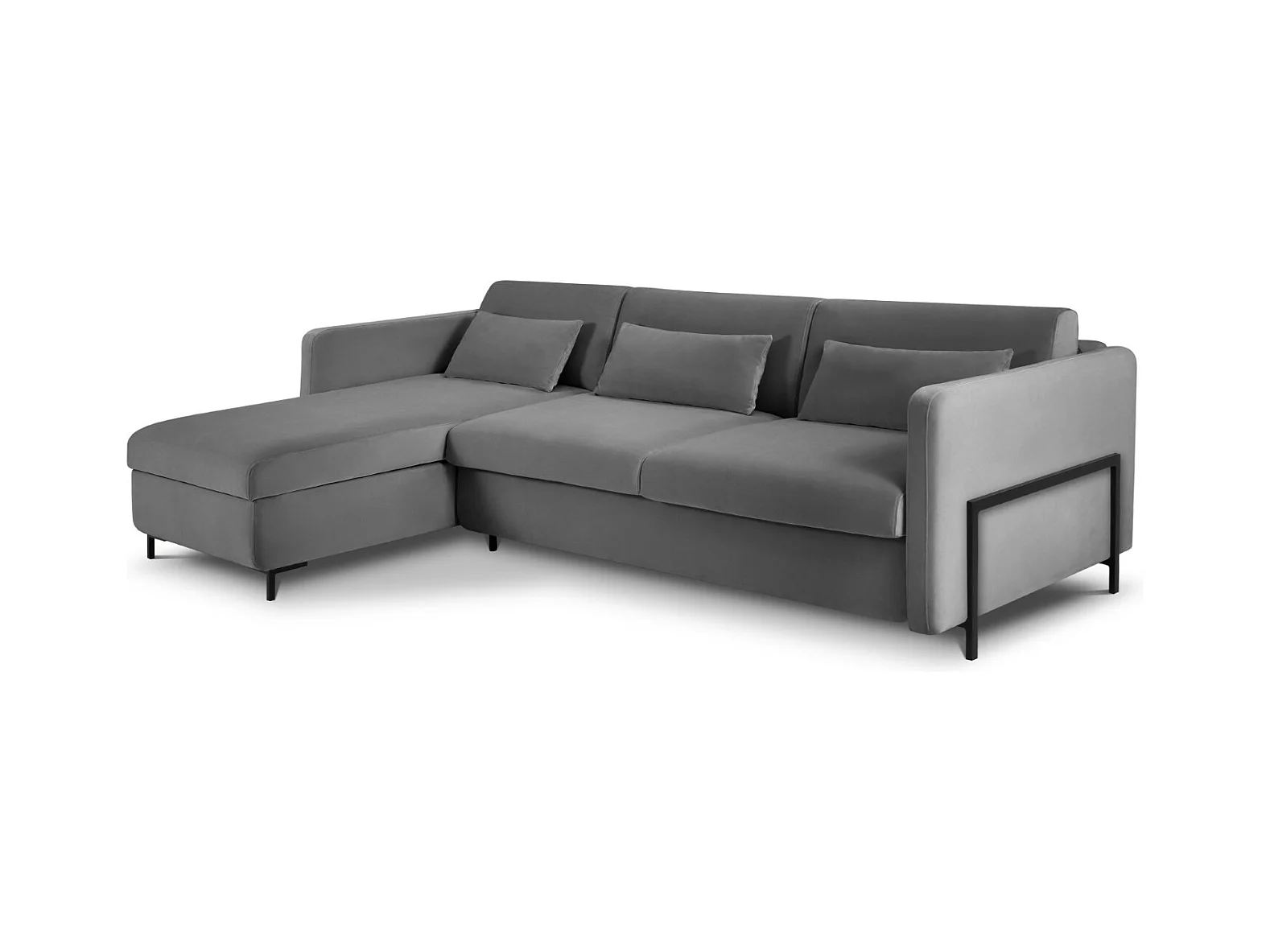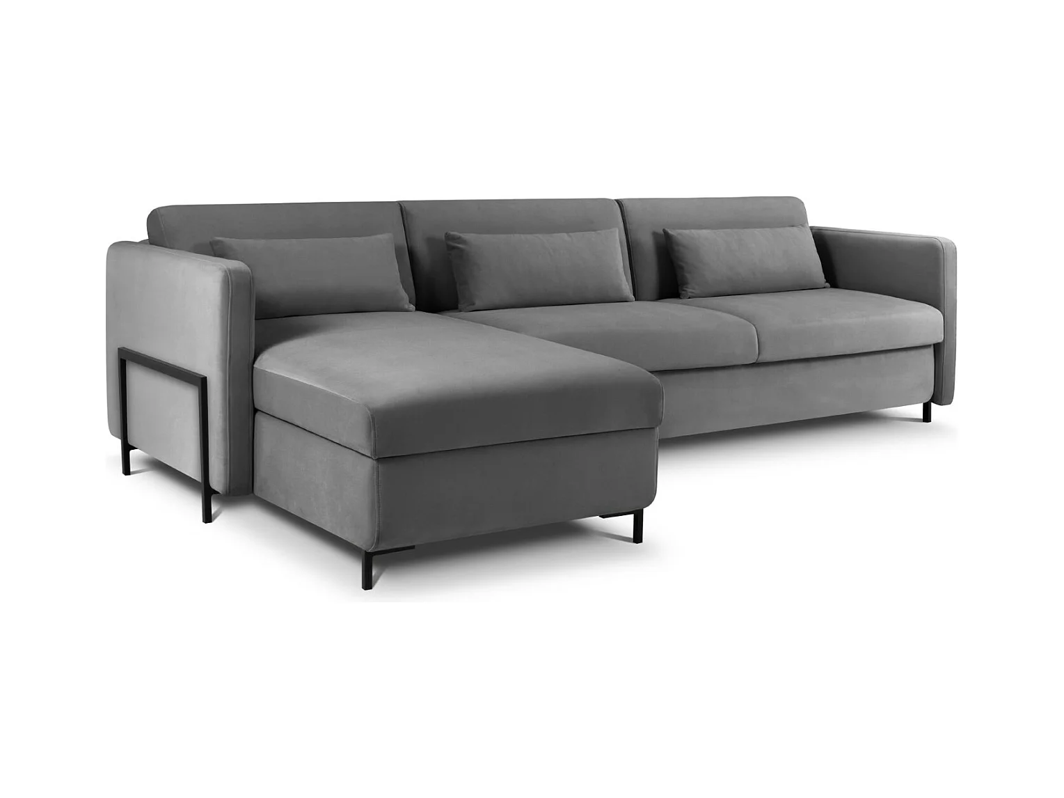 Canapé convertible angle droit velours gris foncé et chromé Pika 260cm