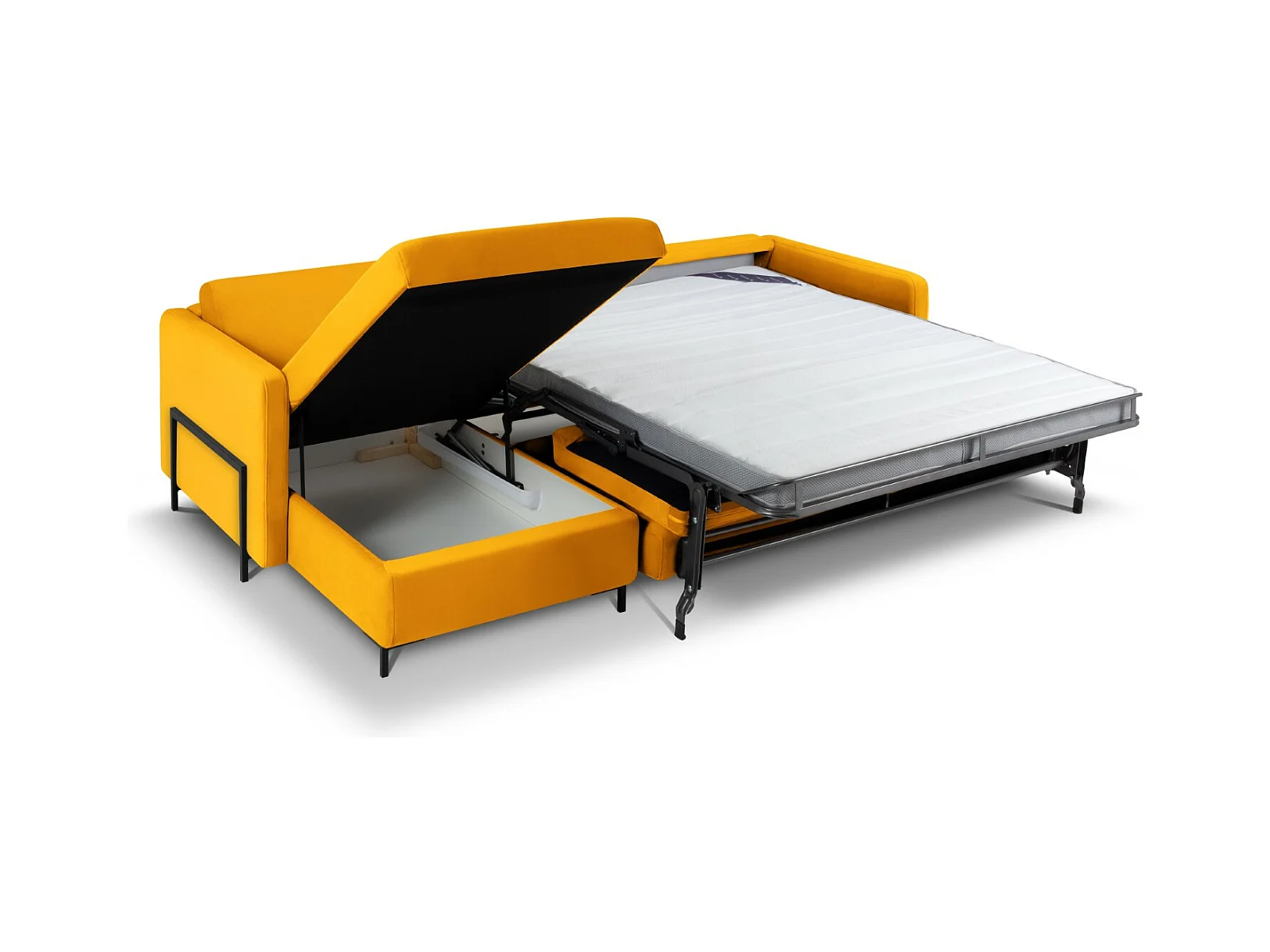Canapé d'angle convertible velours DAVINA - Coffre et pieds métal noir-Jaune moutarde-angle droit