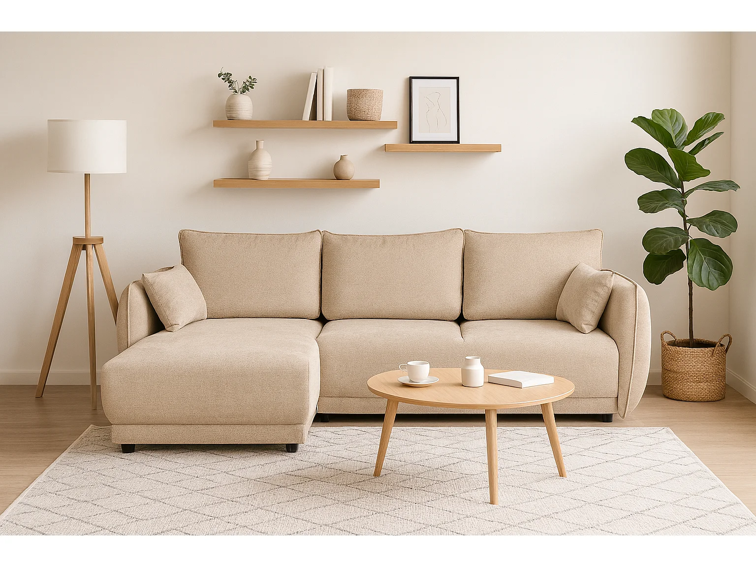 Canapé d'angle convertible avec rangement TOKYO, tissu WIND, beige, gauche