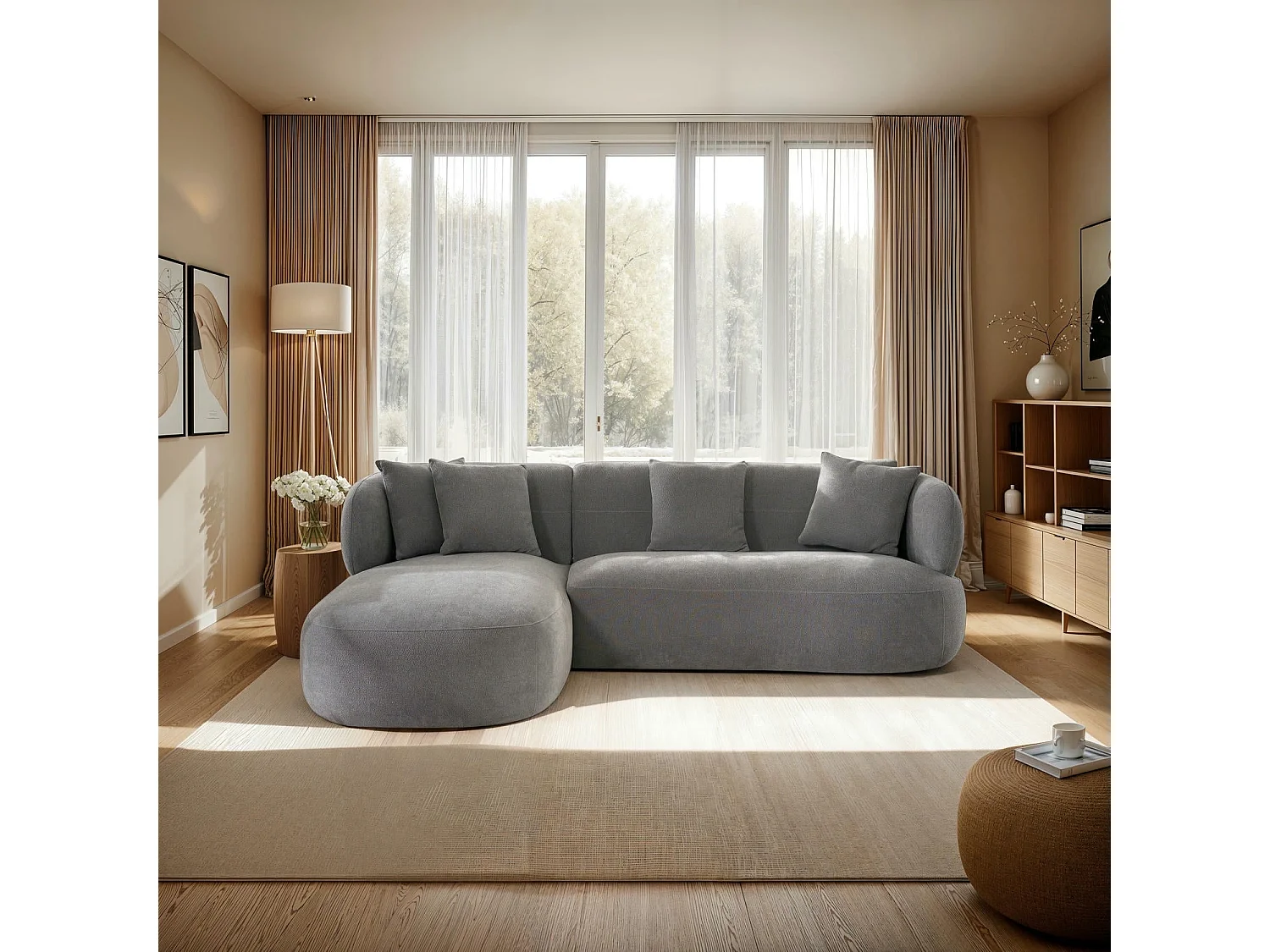 Canapé d'angle gauche New York - 3 places - Tissu - Gris