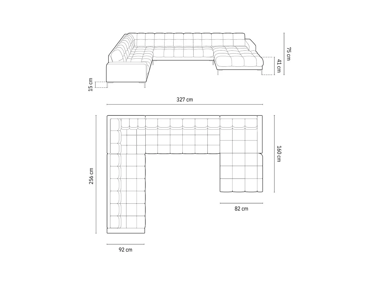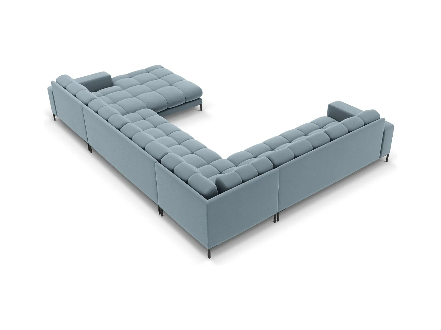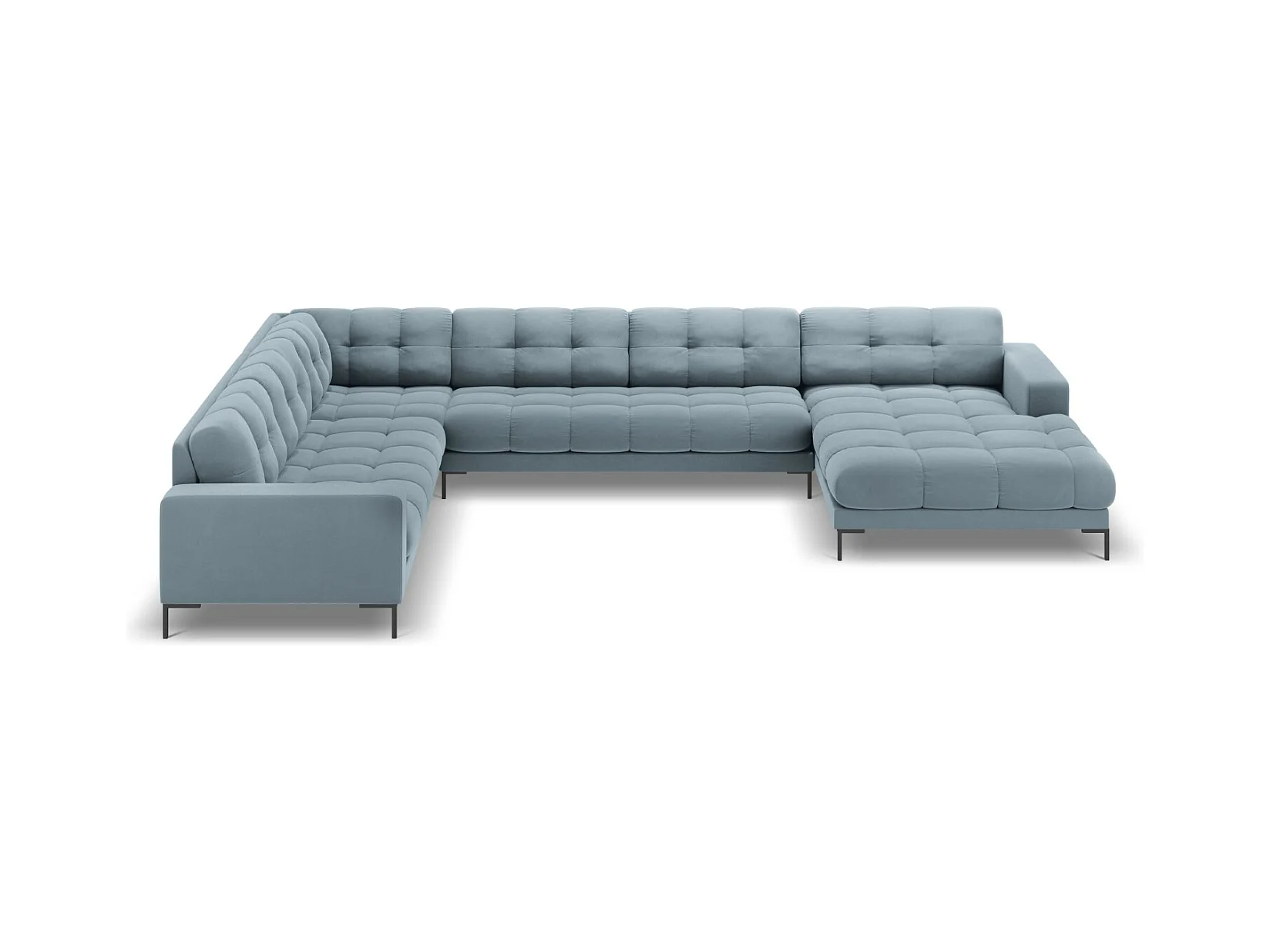 Cosmopolitan Design - Canapé d'angle droit panoramique "Bali" 7 places en velours bleu clair - 327x256x75cm