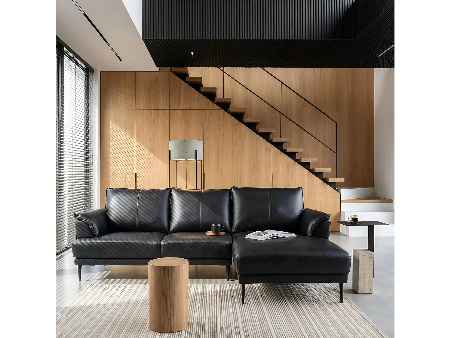 Canapé d'angle gauche Soul - 3 places - Cuir - Noir