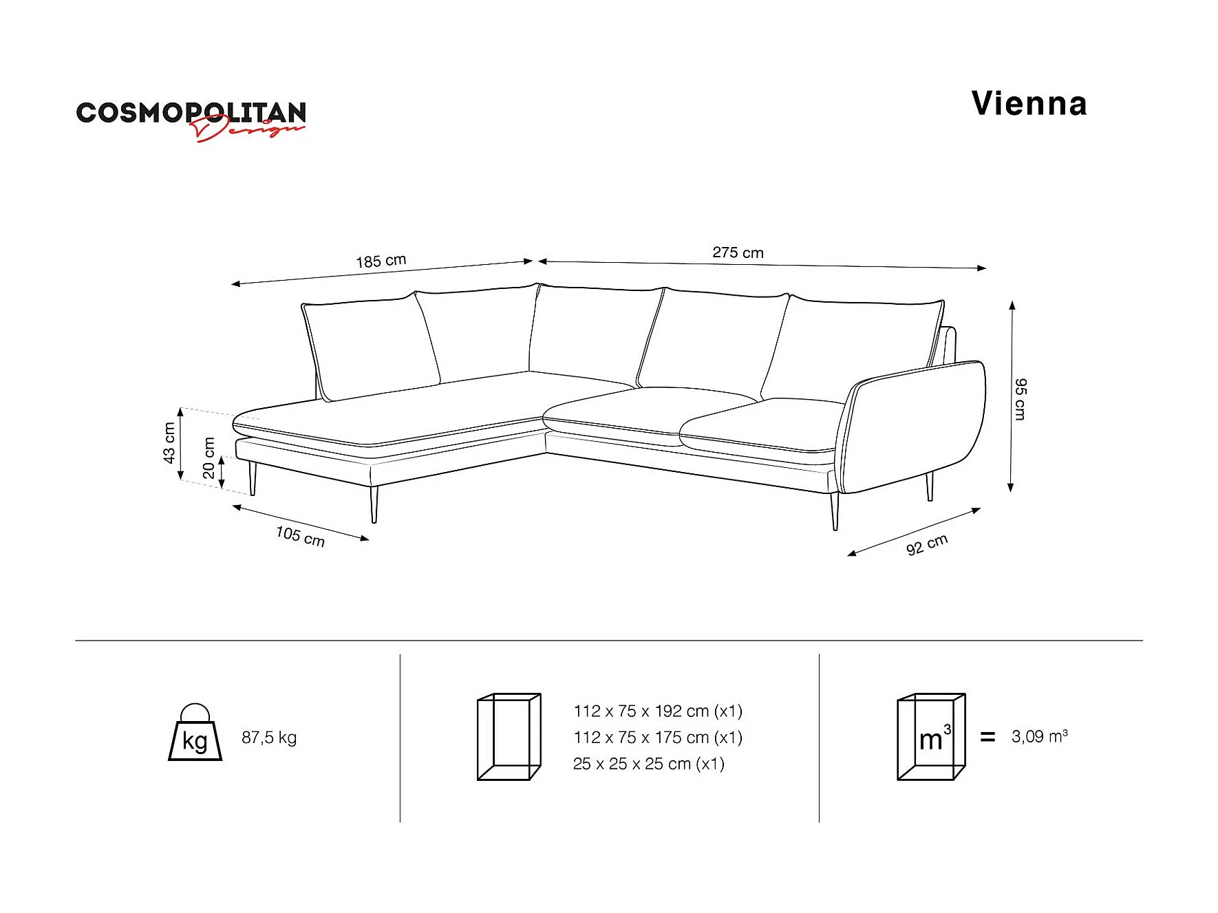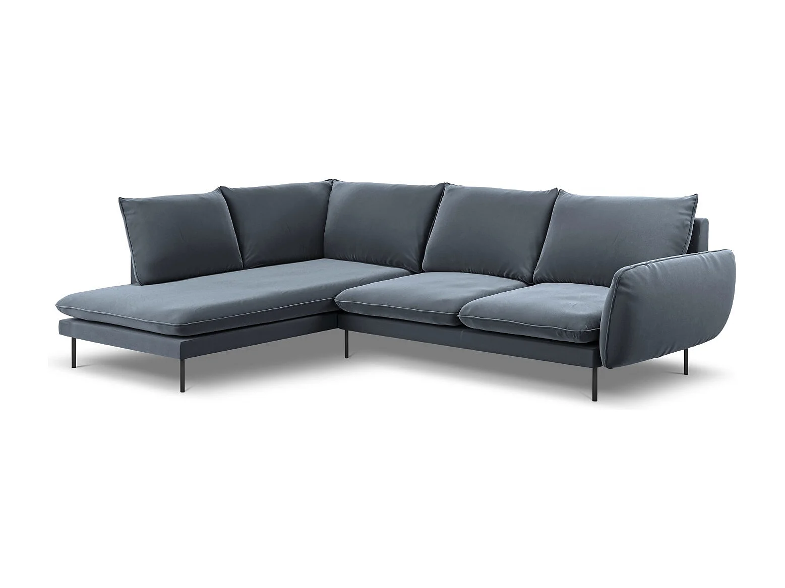 Cosmopolitan Design - Canapé d'angle gauche "Vienna" 6 places en velours bleu gris - 275x185x95cm