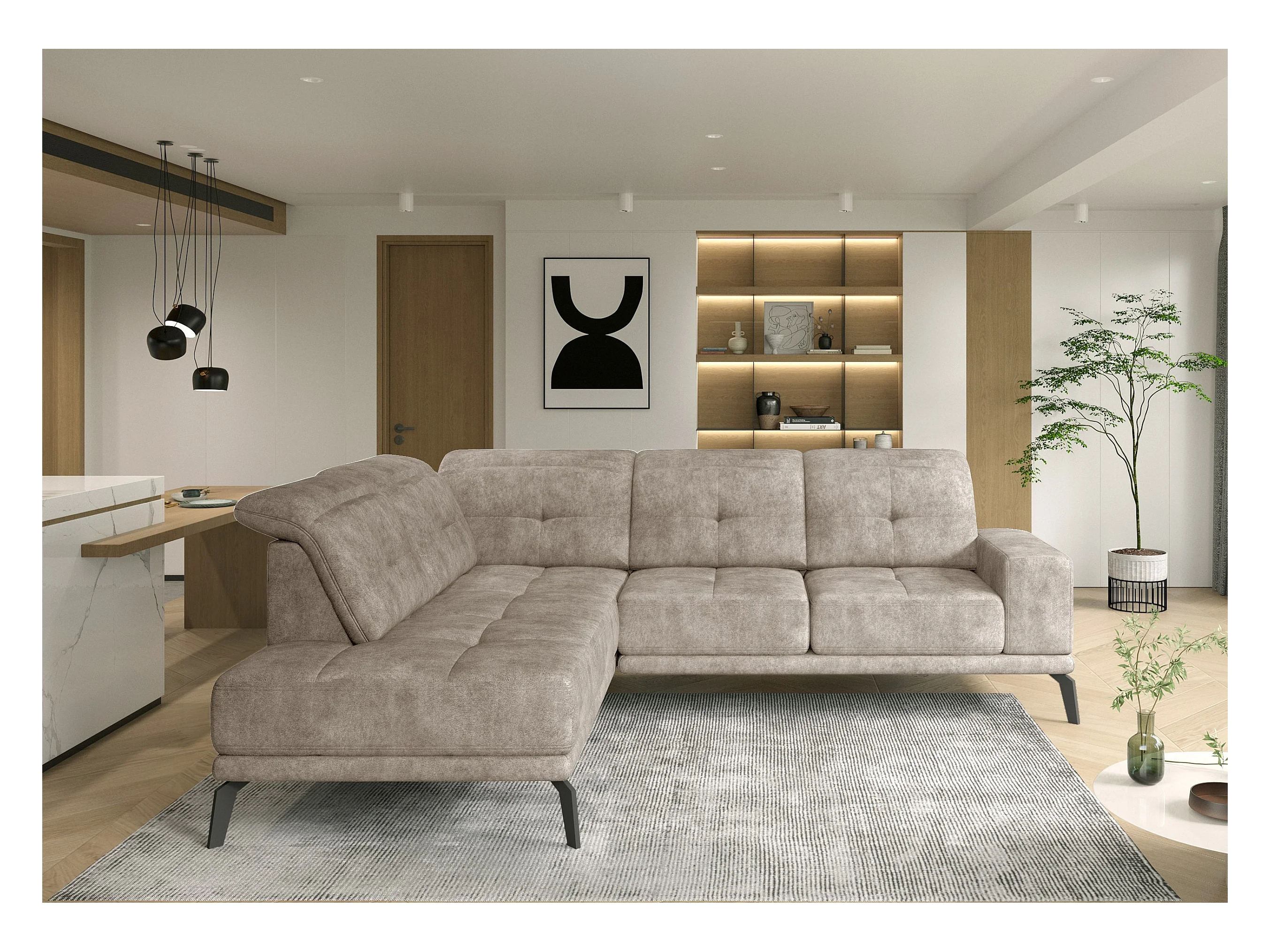 Canapé d’angle en tissu TORPILLE – Confort et élégance au quotidien-Beige chiné-angle gauche