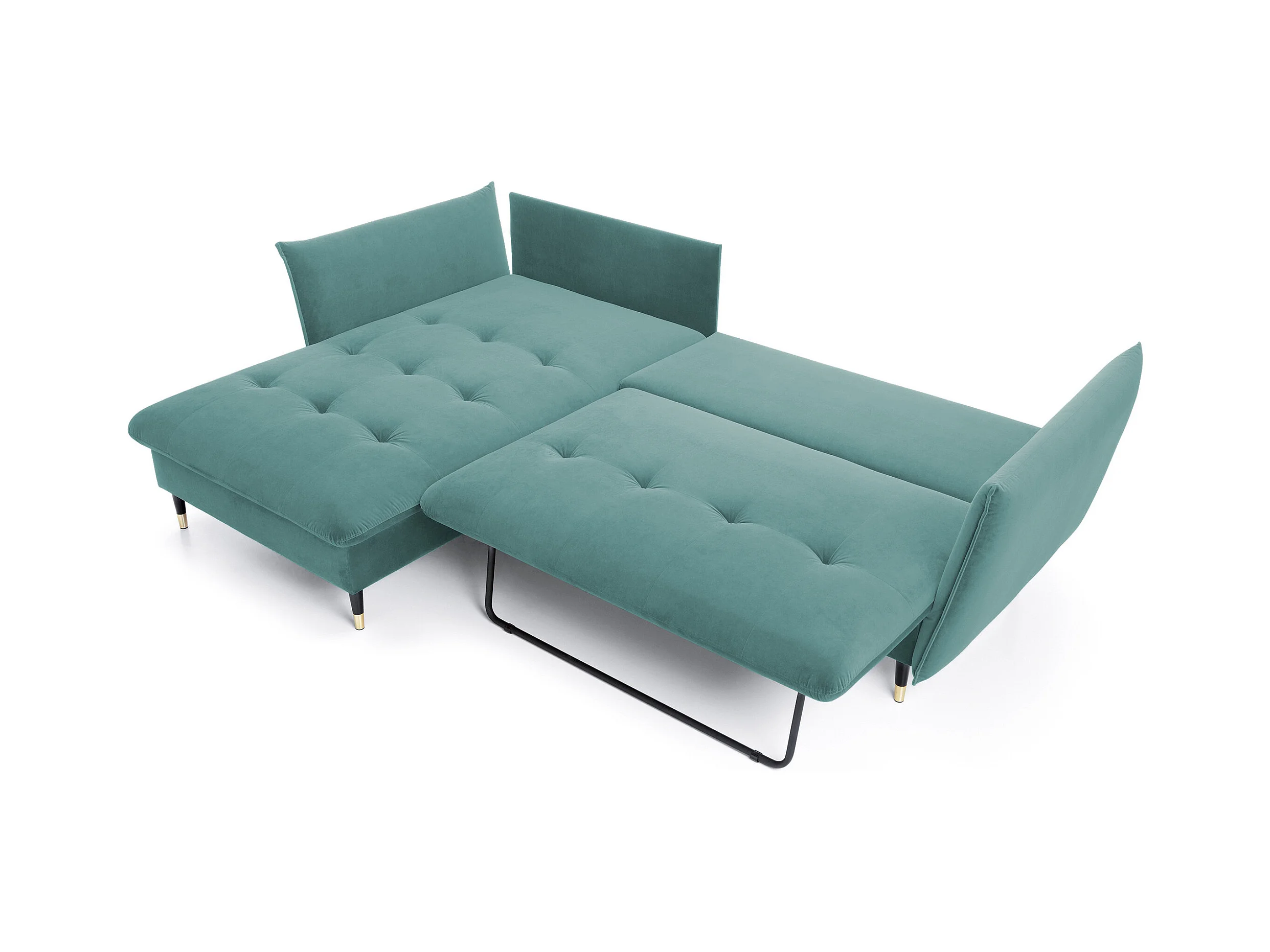 Canapé d’angle BOULI 4 places Raven, couchage 130x210cm, coffre, 264x162x82cm, gauche vert