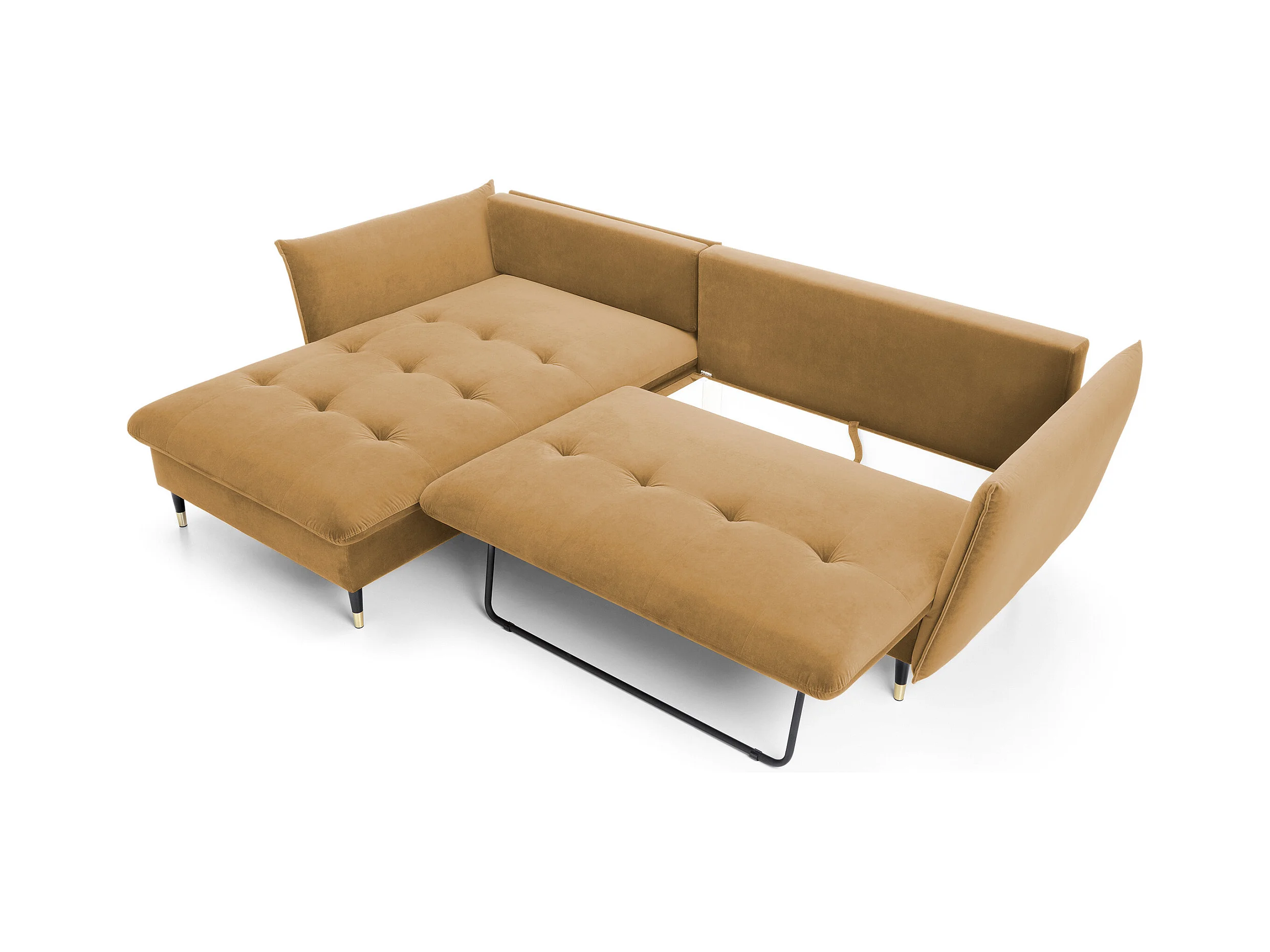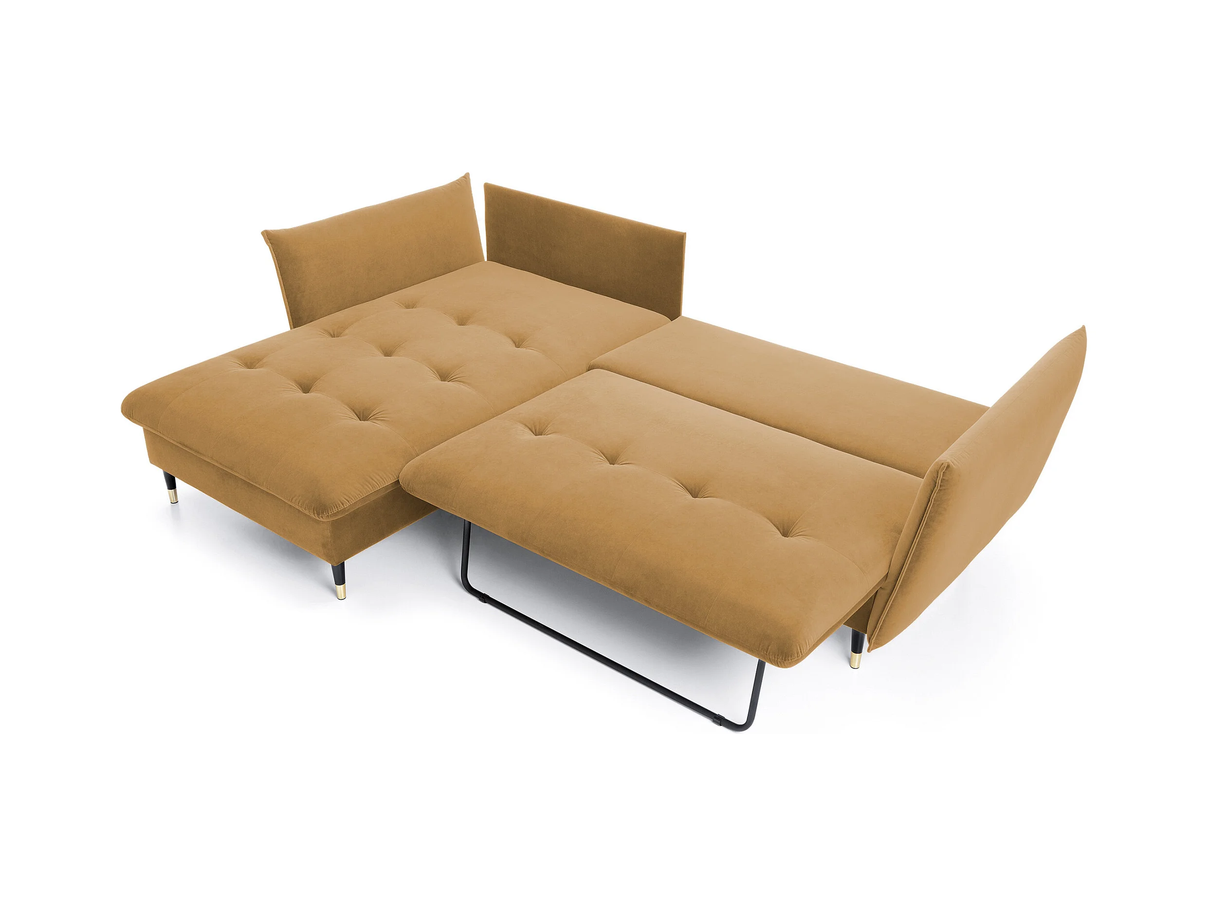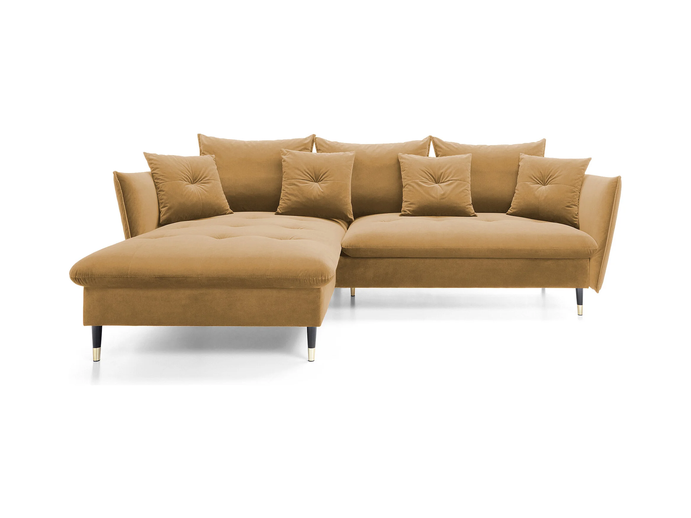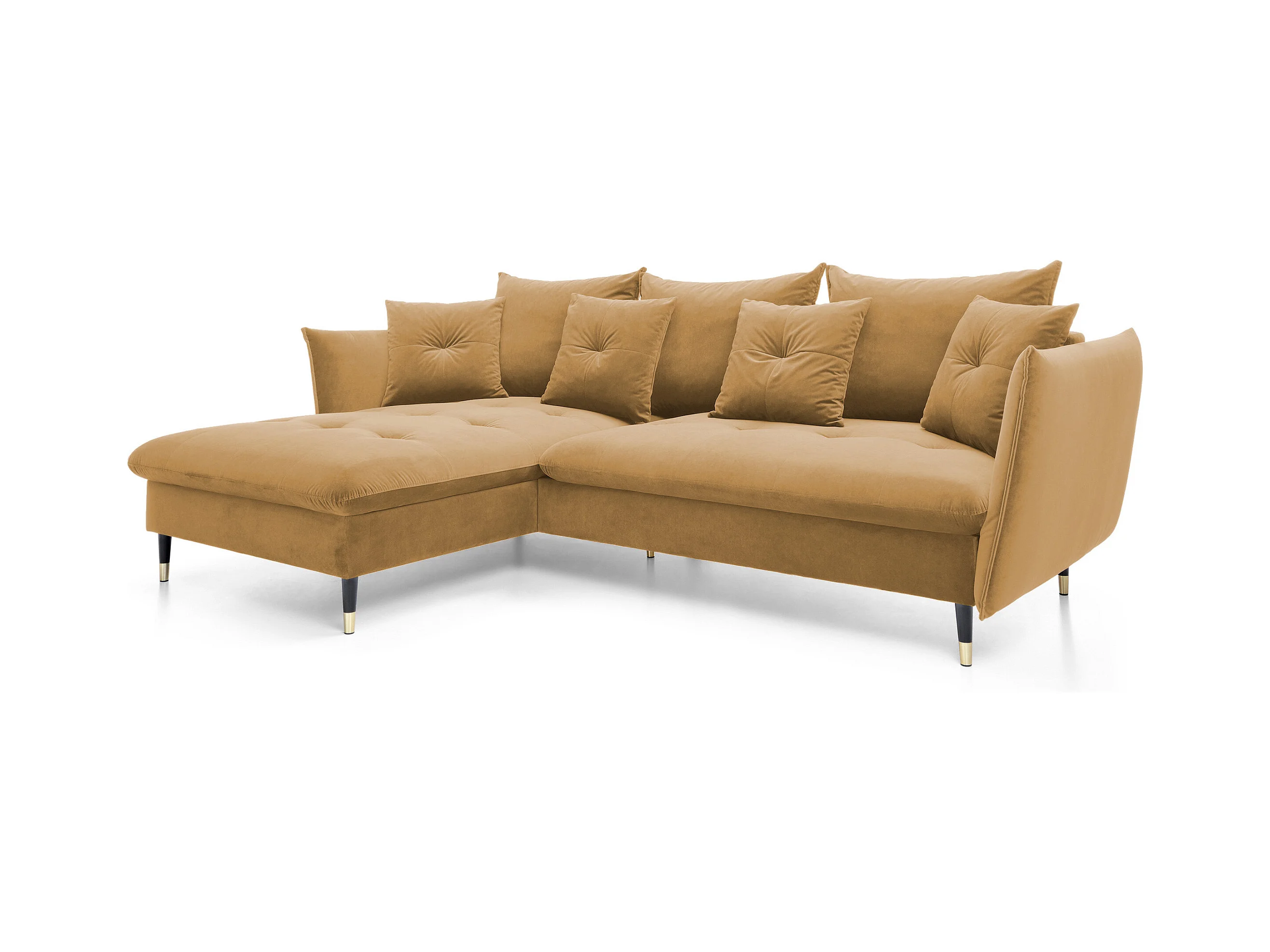 Canapé d'angle GLOSS convertible, ottomane & pieds dorés – canapé en velours style GLOSSour avec coussins déco, 258x167x91 cm, côté gauche BORDEAUX