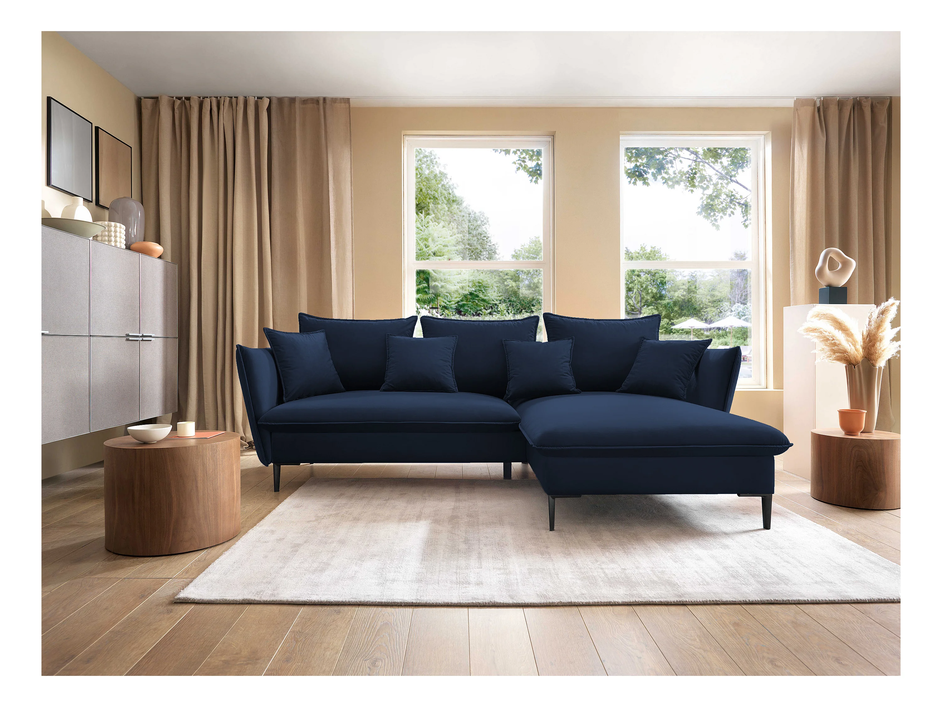 Canapé d'angle GLOSS convertible, ottomane & pieds dorés – canapé en velours style GLOSSour avec coussins déco, 258x167x91 cm, côté droit GRIS FONCÉ