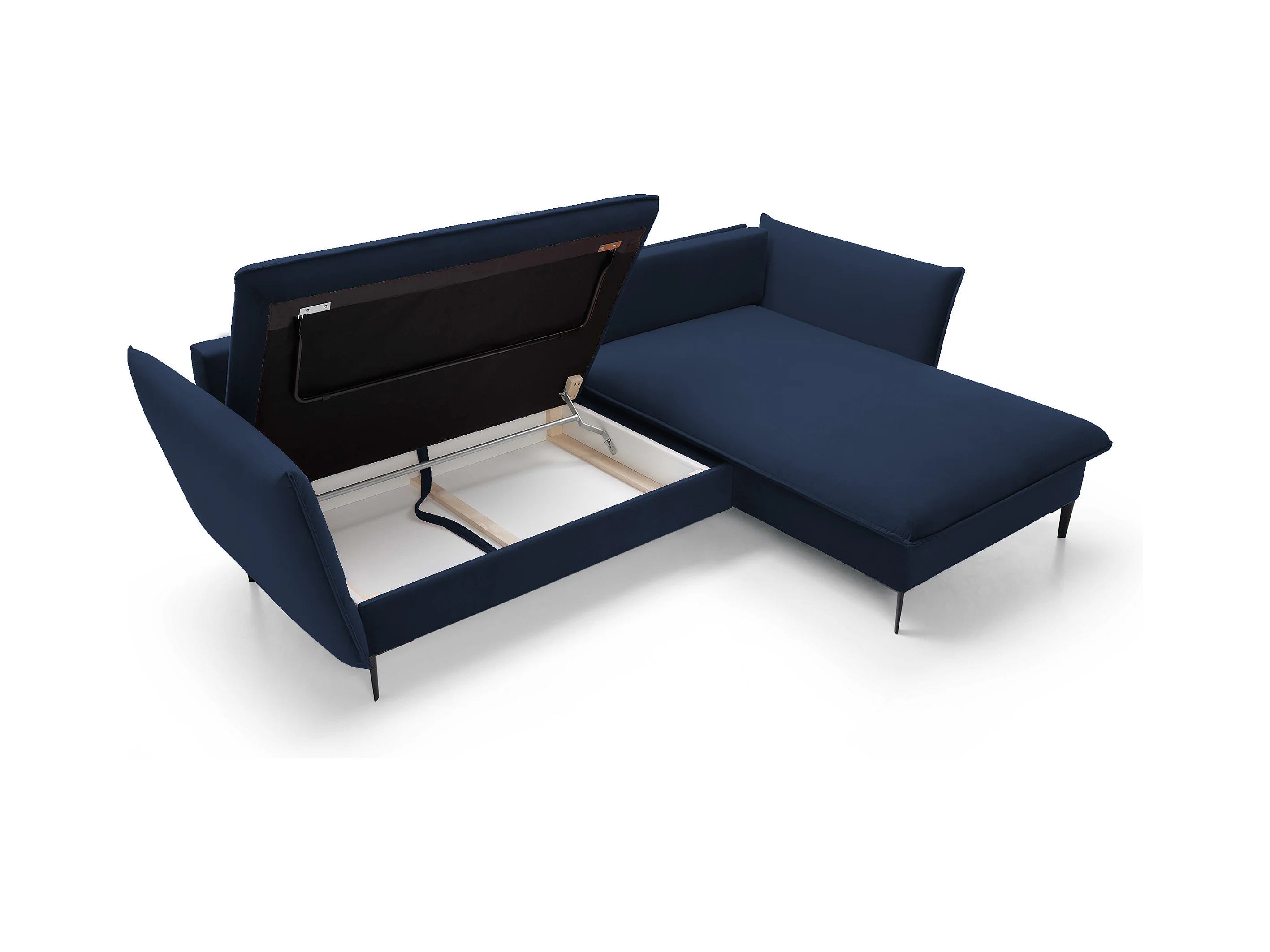 Canapé d’angle BOULI 4 places Raven, couchage 130x210cm, coffre, 264x162x82cm, droite gris