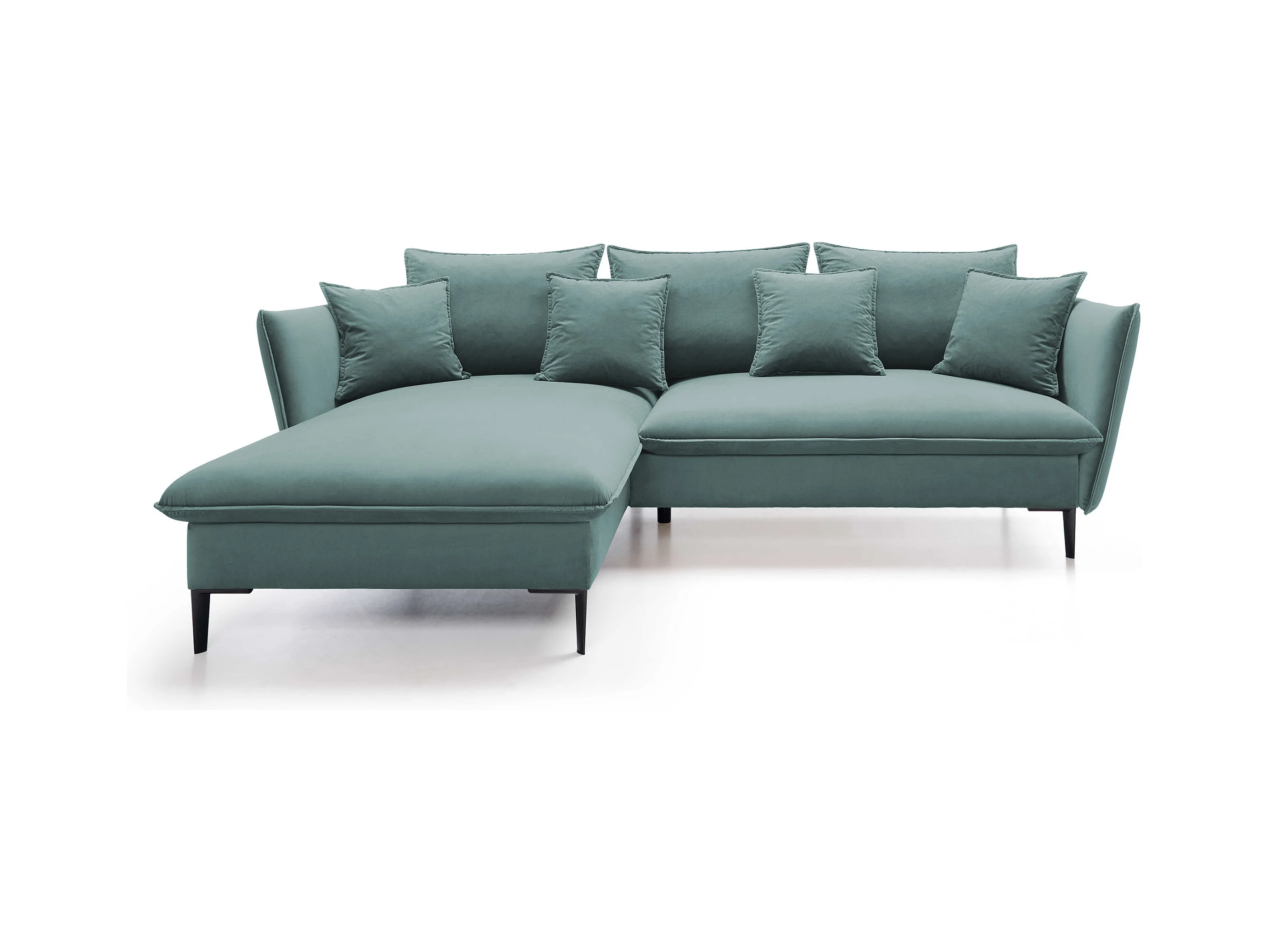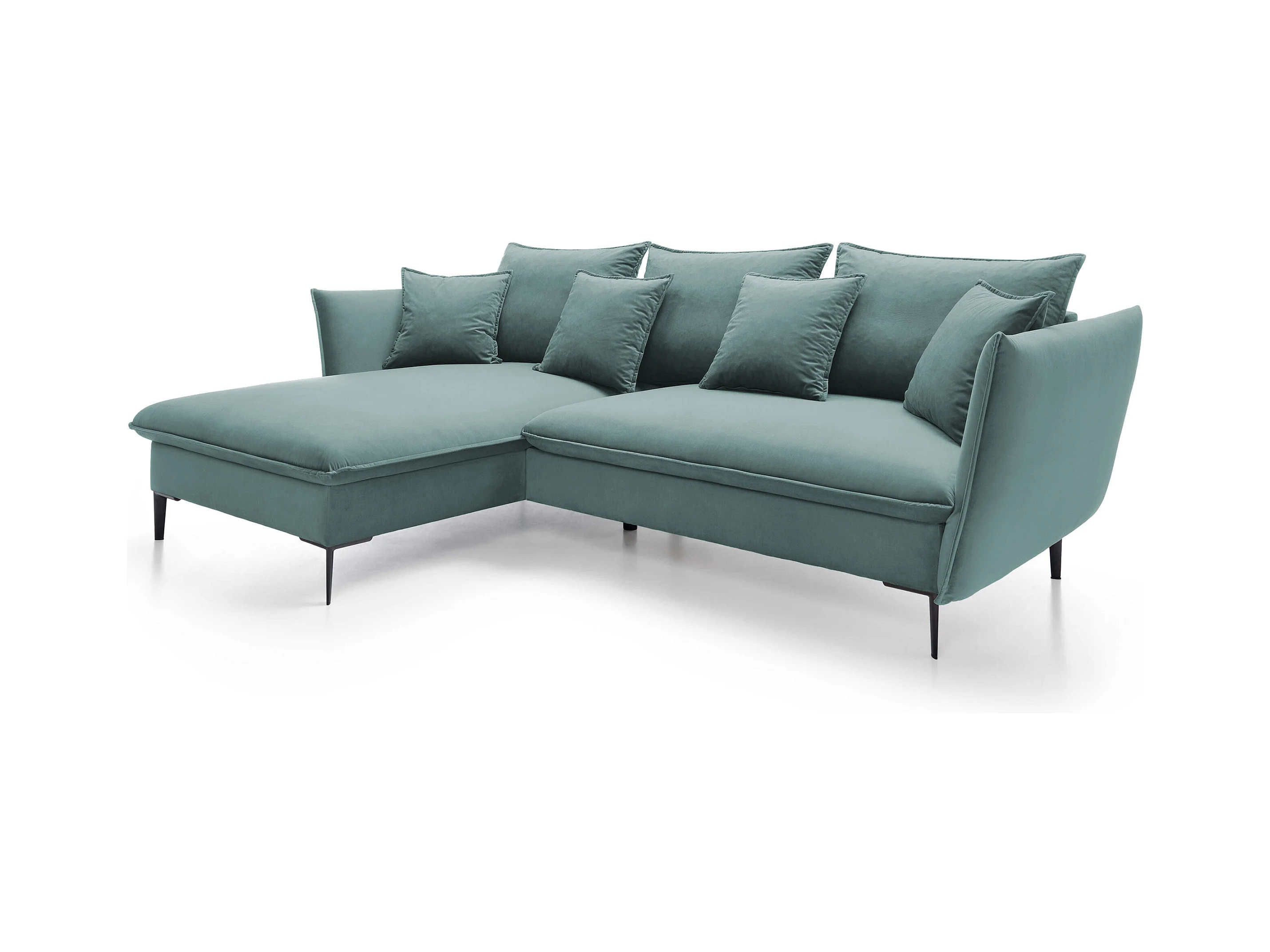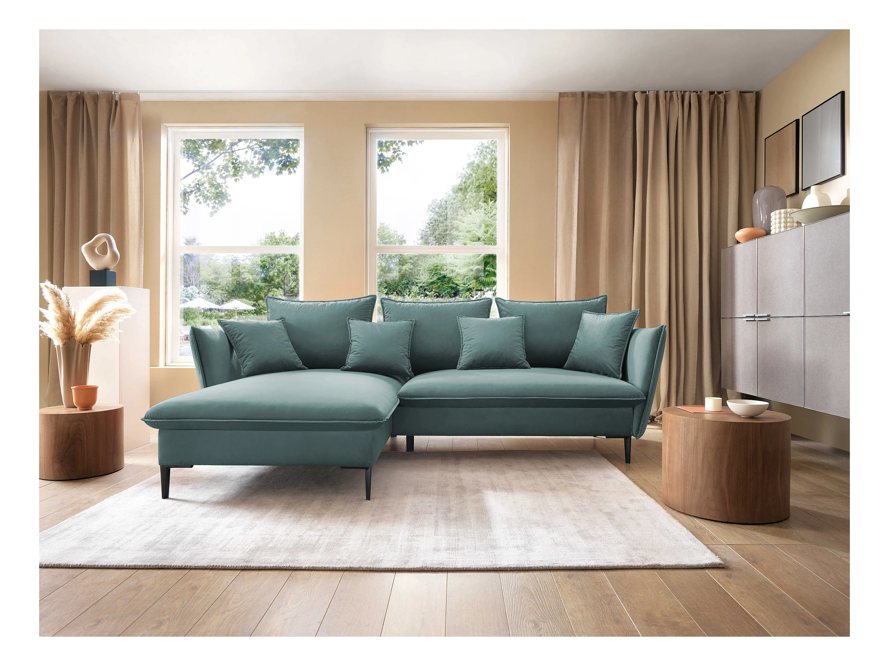 Canapé d'angle GLOSS convertible, ottomane & pieds dorés – canapé en velours style GLOSSour avec coussins déco, 258x167x91 cm, côté gauche BLEU