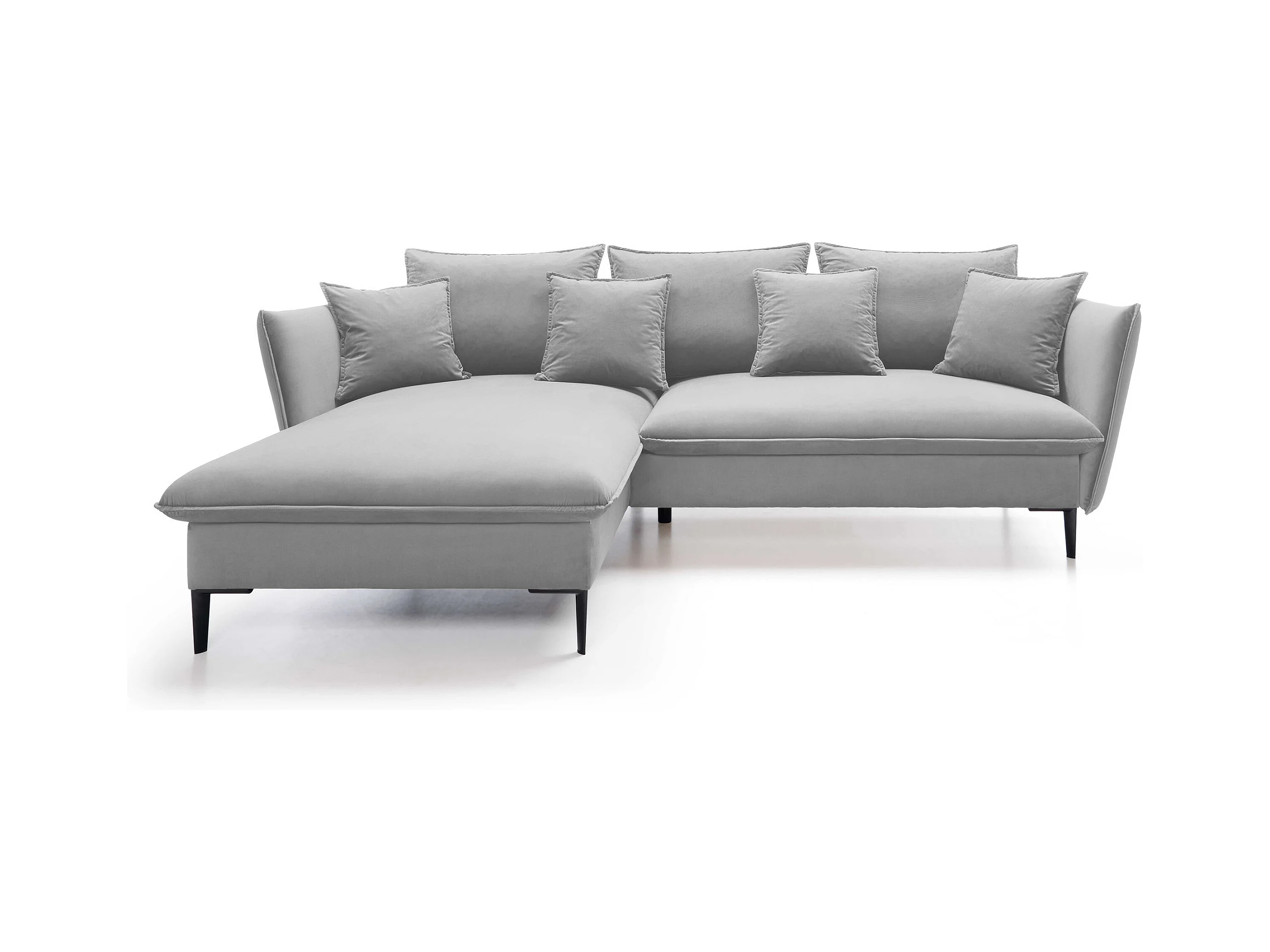 Canapé d'angle GLOSS convertible, ottomane & pieds dorés – canapé en velours style GLOSSour avec coussins déco, 258x167x91 cm, côté gauche GRIS