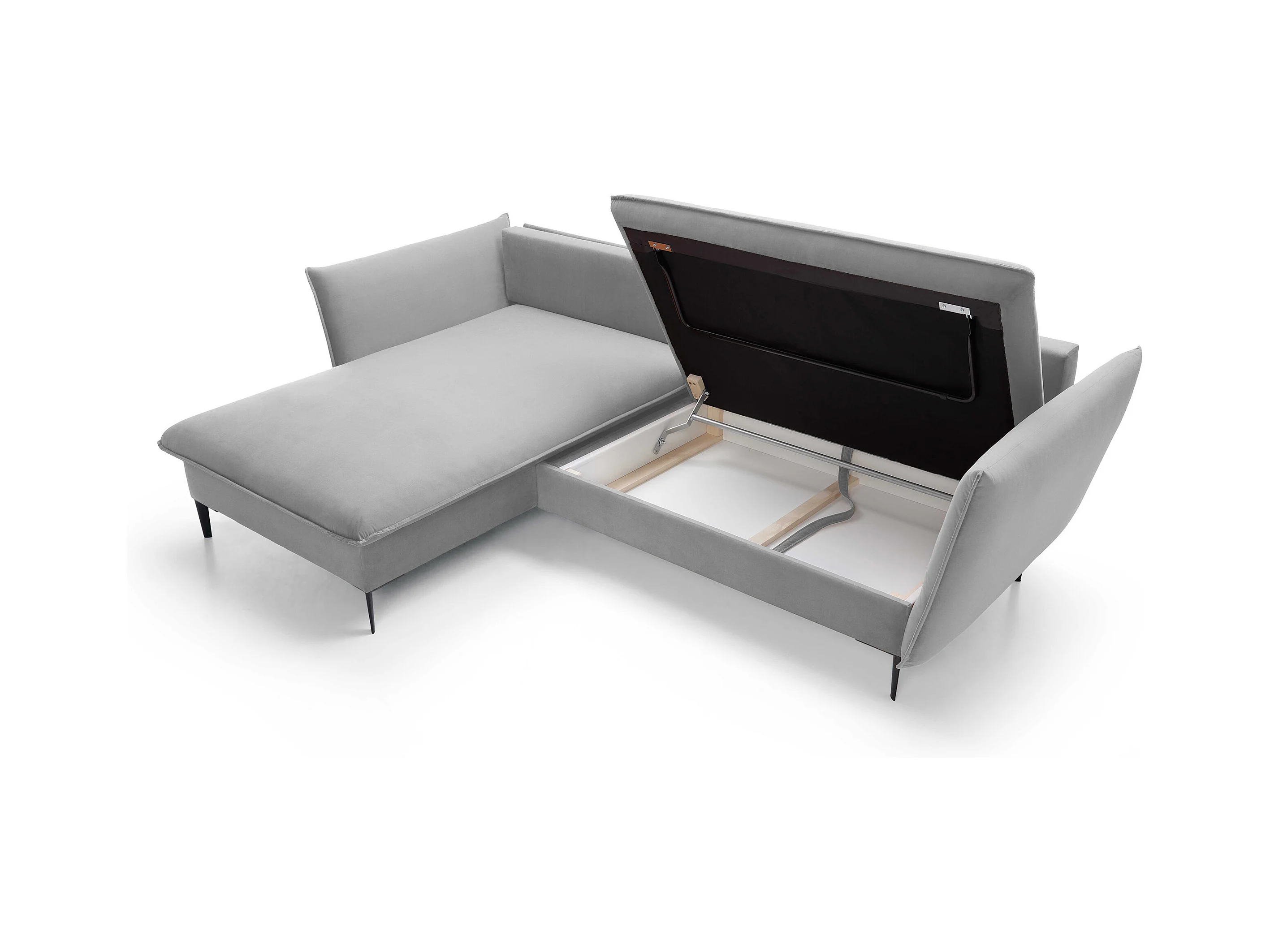 Canapé RAVEN L avec fonction de couchage, compartiment à literie, indépendant, rembourré avec têtières réglables 257x198x96 cm Côté gauche Bleu
