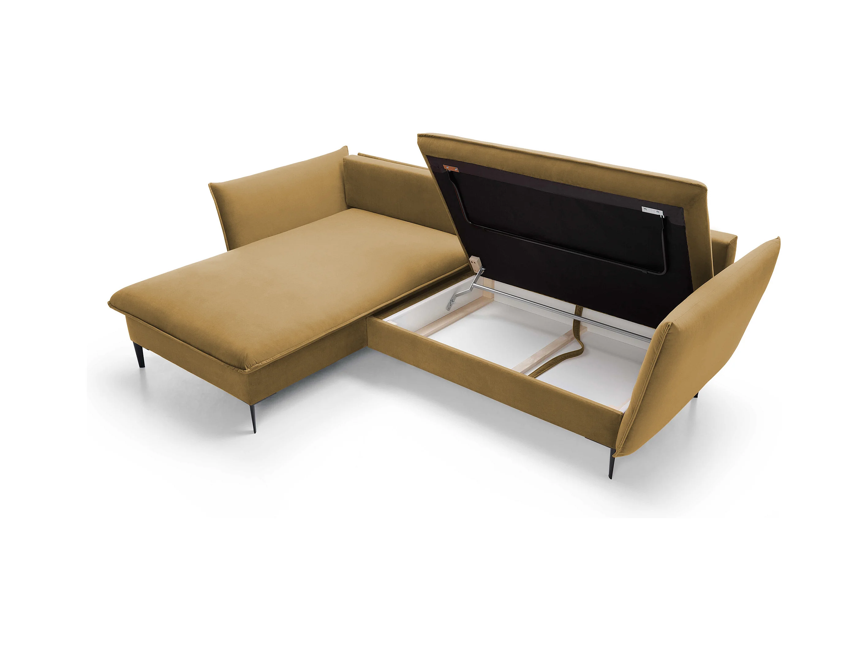 Canapé RAVEN L avec fonction de couchage, compartiment à literie, indépendant, rembourré avec têtières réglables 257x198x96 cm Côté gauche Vert foncé